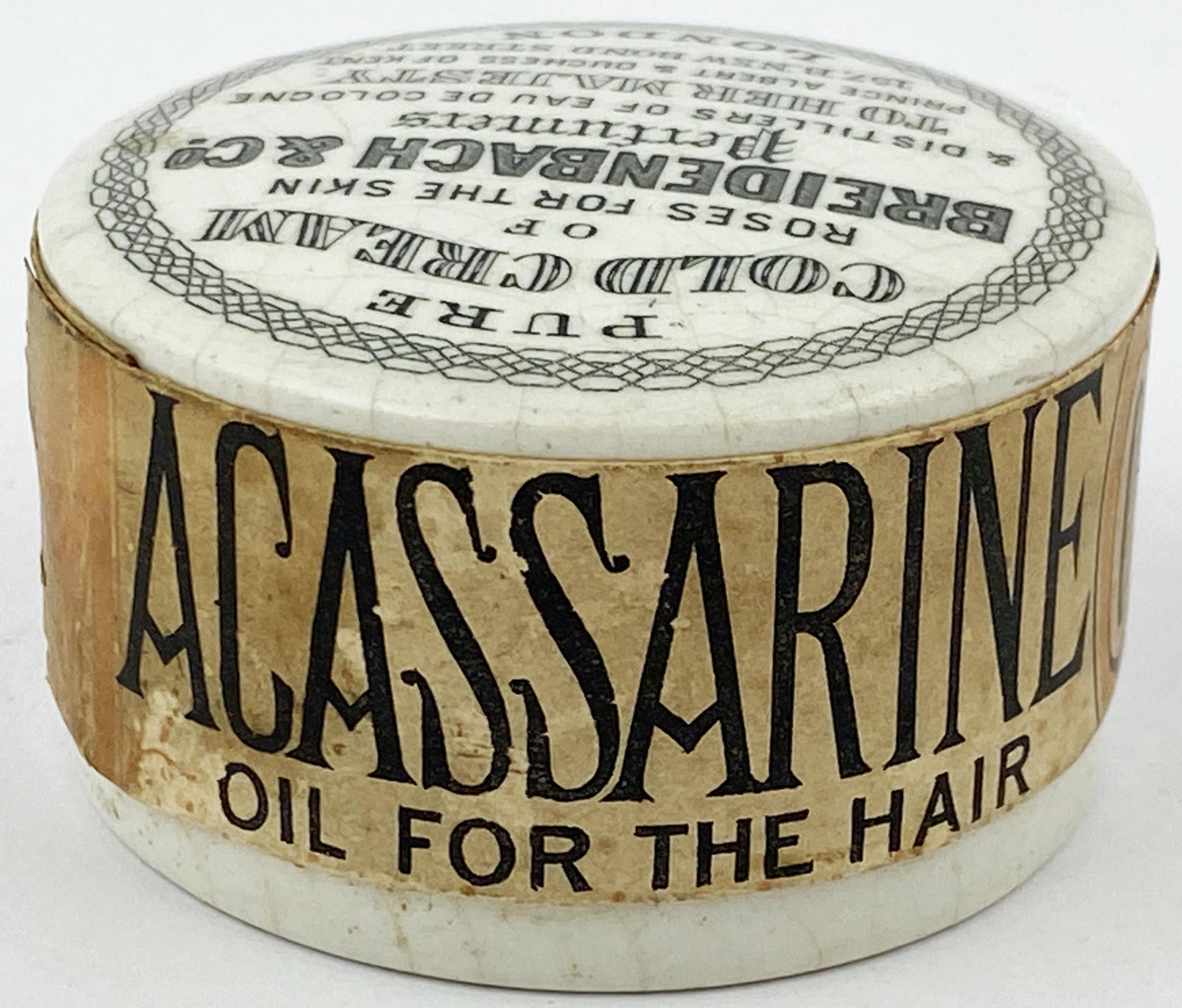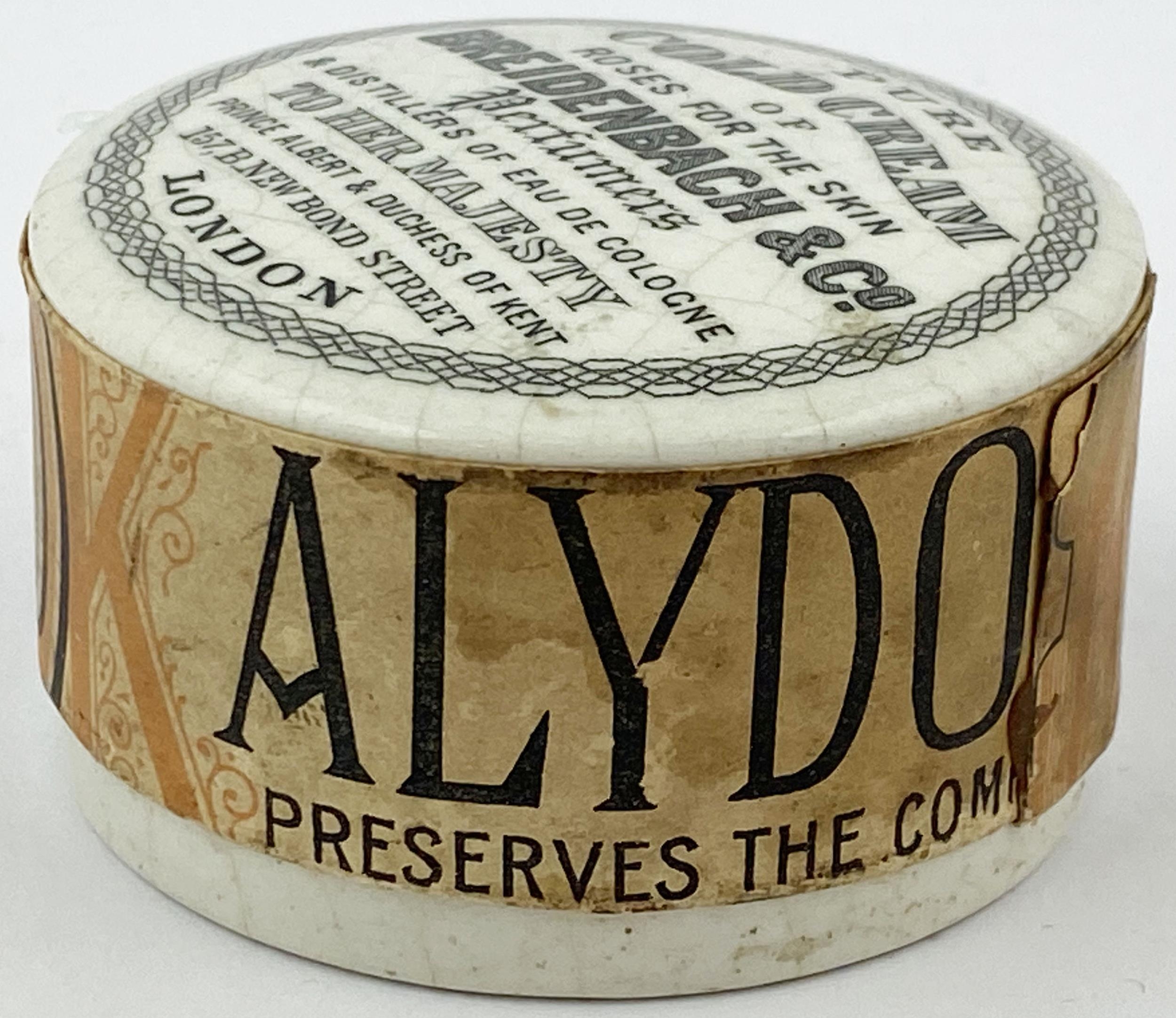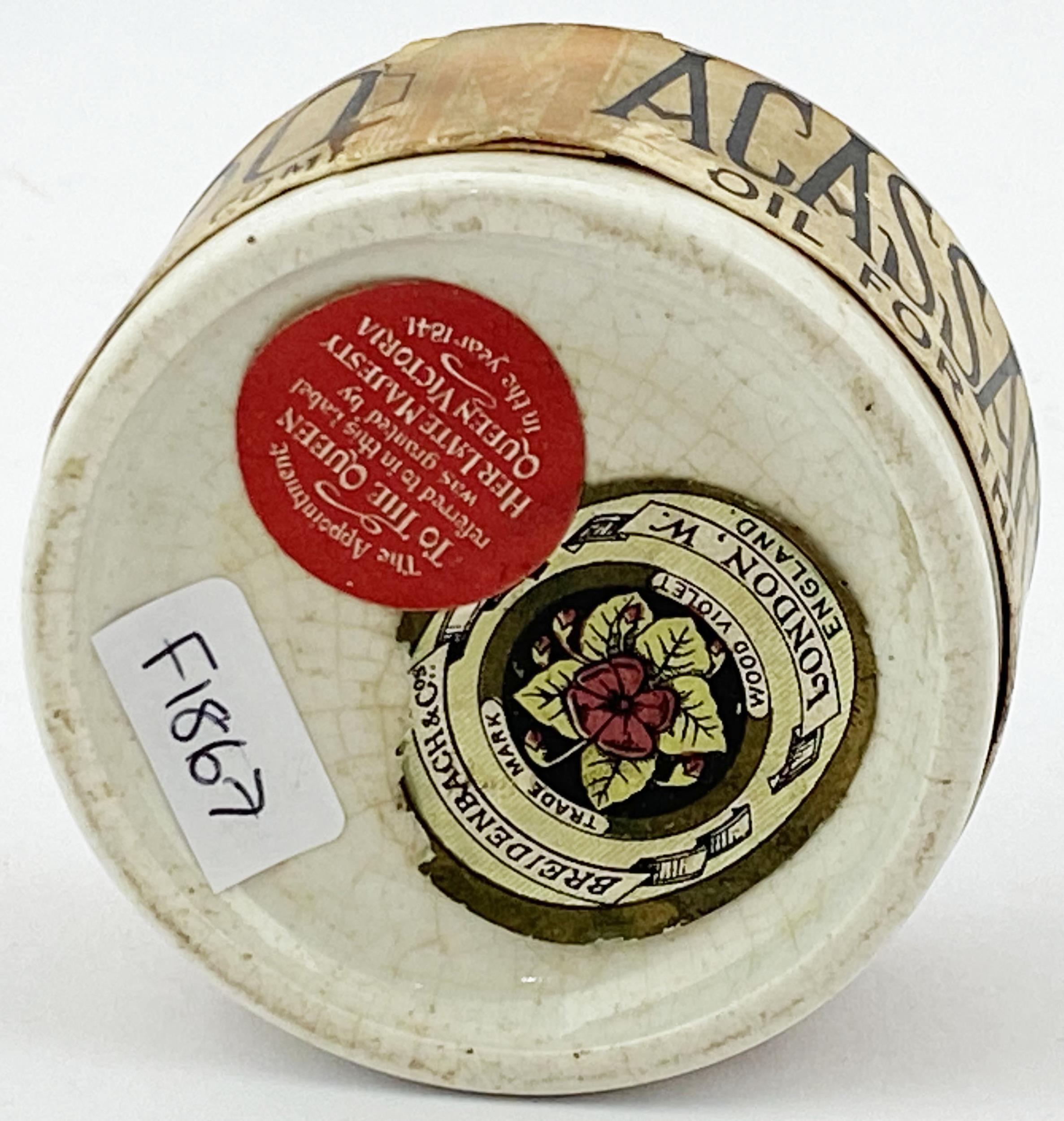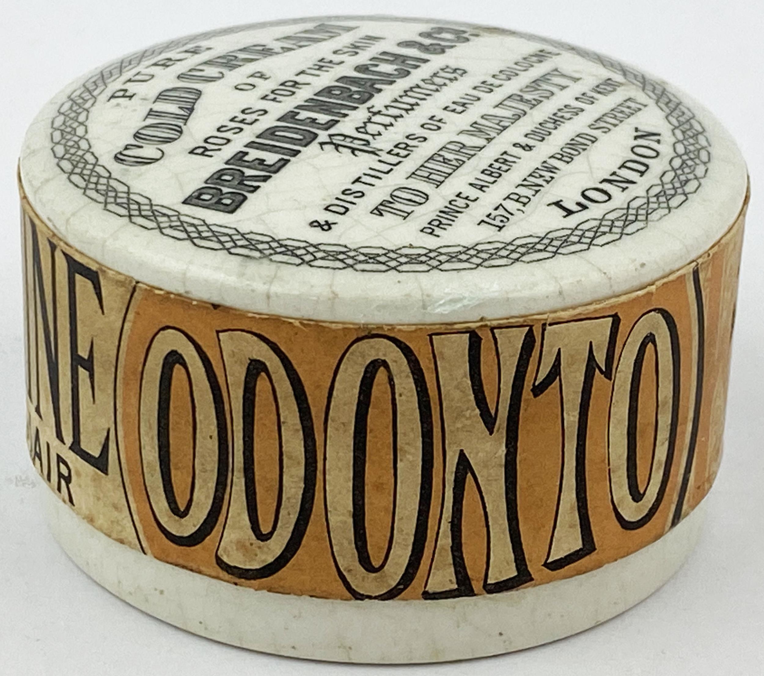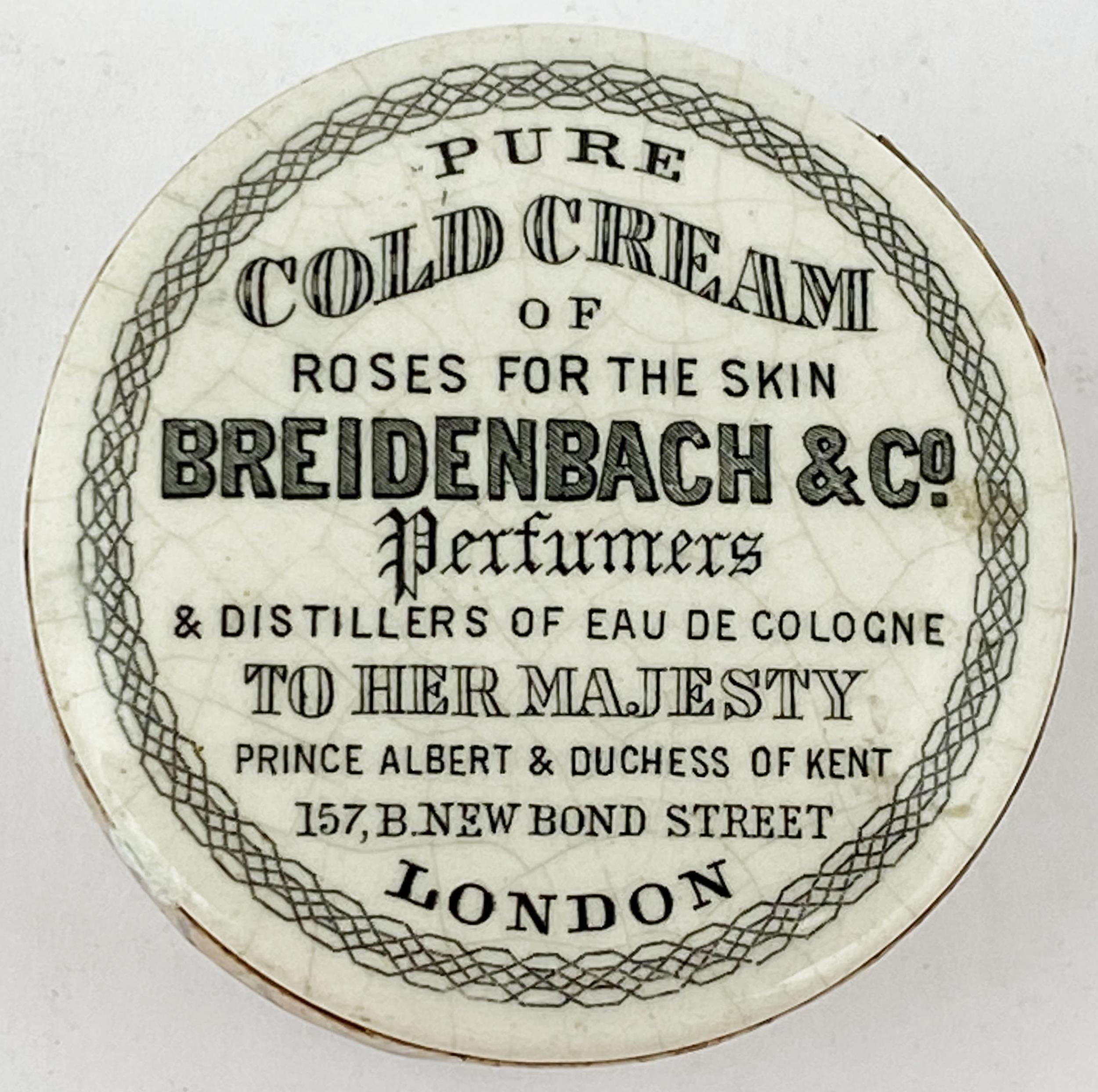 BREIDENBACH & CO POT LID & BASE. 2.7ins diam. Black transfer with paper label to outer & base. PURE/ COLD CREAM. Lovley piece
