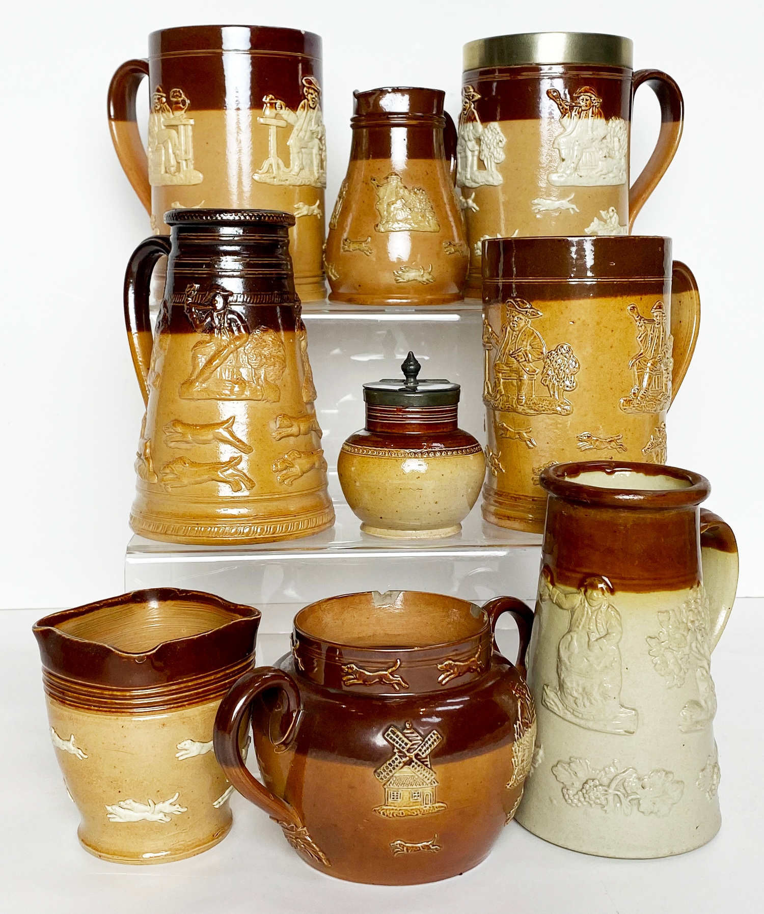 DOULTON LAMBETH GROUP. Handled mugs, jars, jugs. Damages. (9)