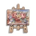 A Victorian silver and enamel artist's easel brooch, painted with roses, 38mm h, PODR mark for 11 September 1880