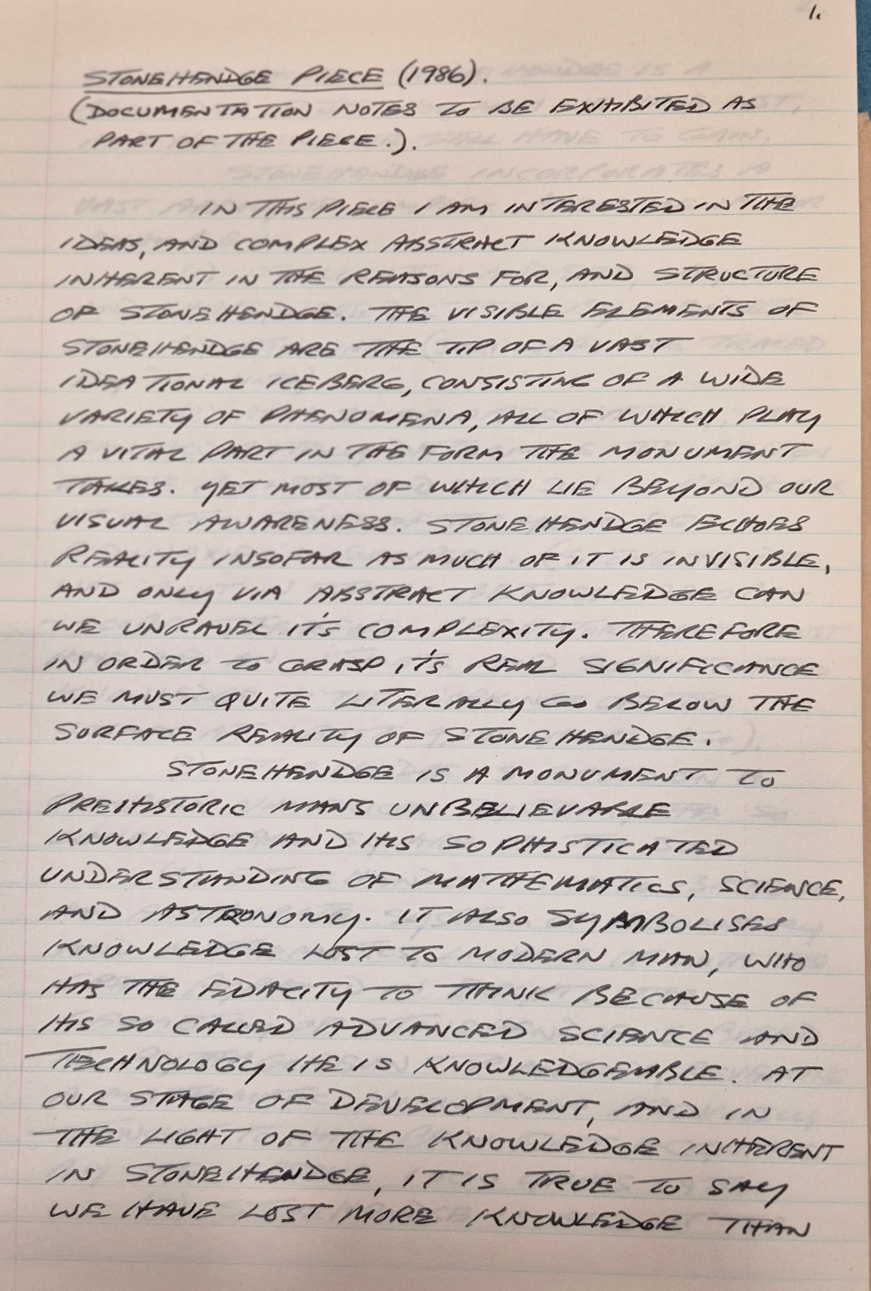 Large & Small Photographs of Stonehenge, Photographic Documentation for the Stone Henge Piece 1986. Includes notes and negatives.
