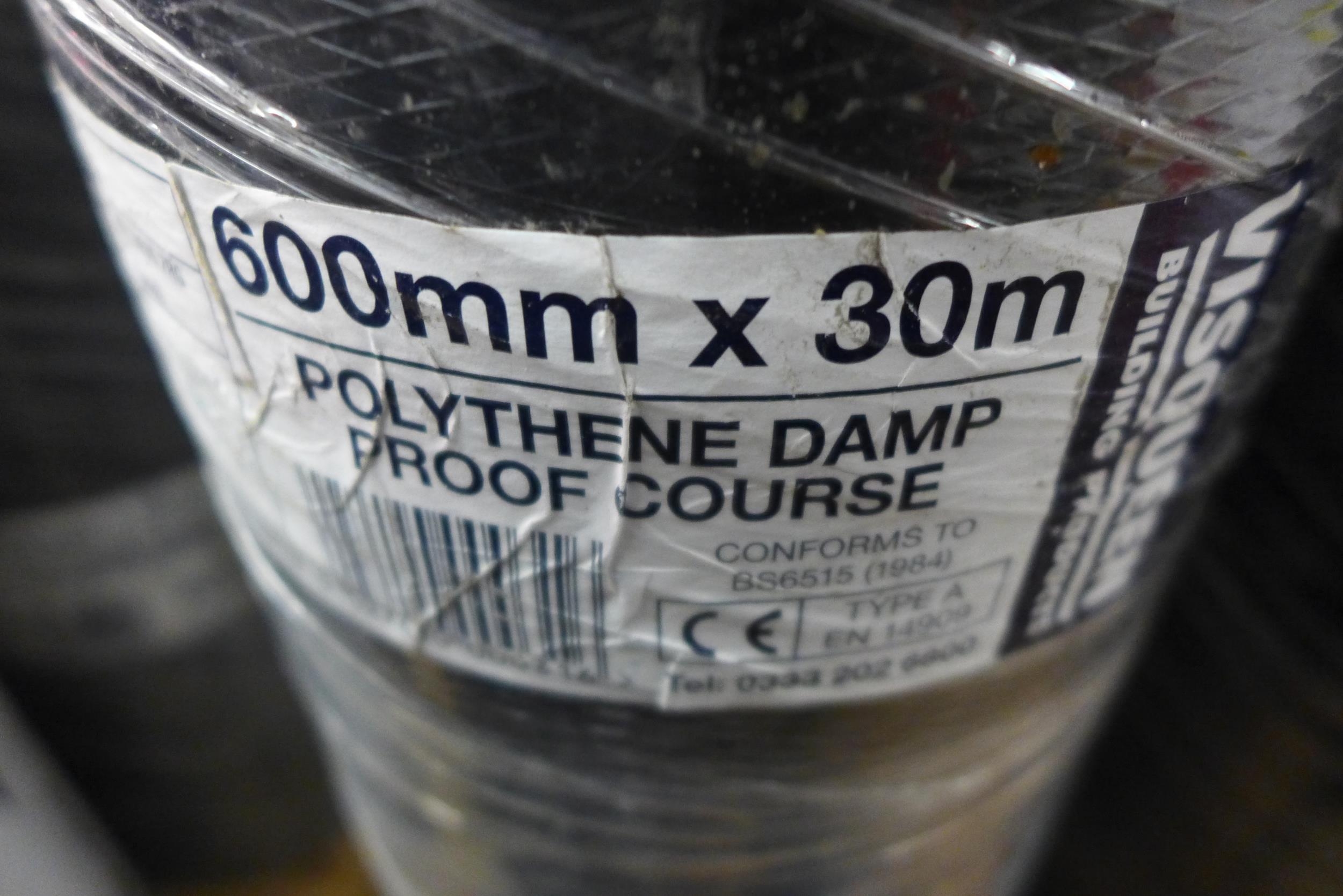 2 Rolls of 600mm x 30M Visqueen polythene damp proof course - unused, wrapped