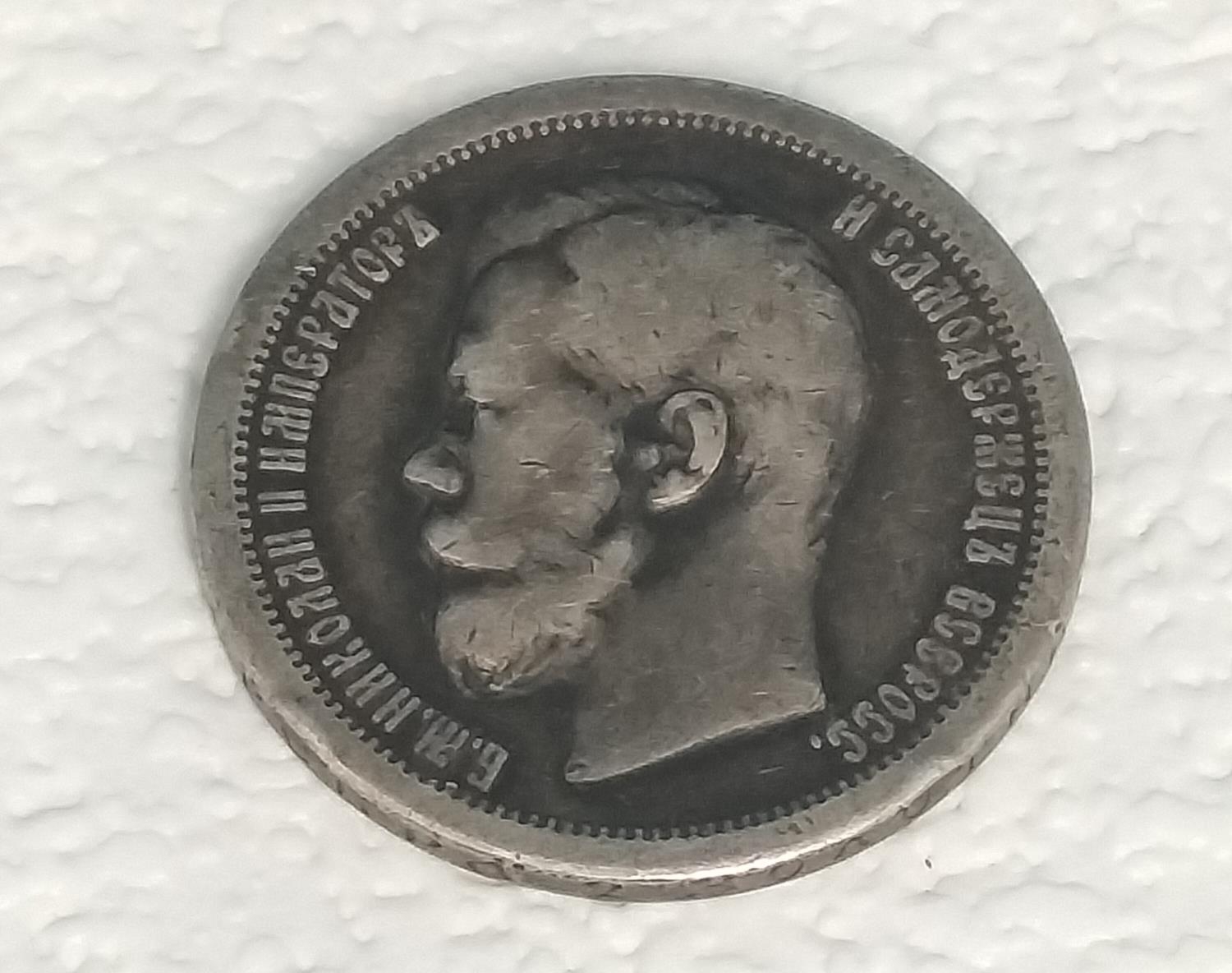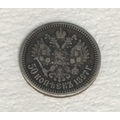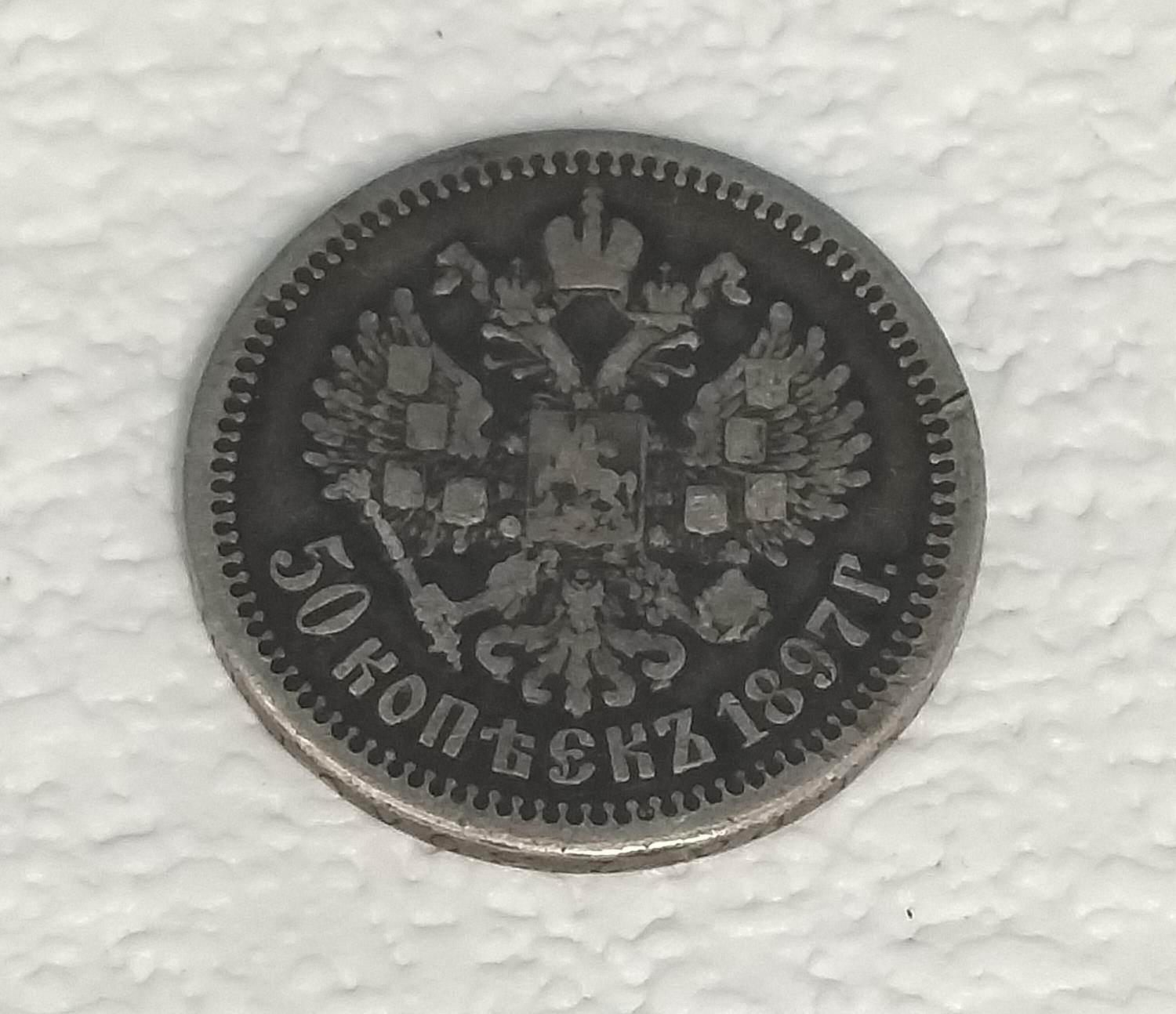 1897 Nicholas II Russian Silver 50 Kopecks Coin.