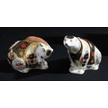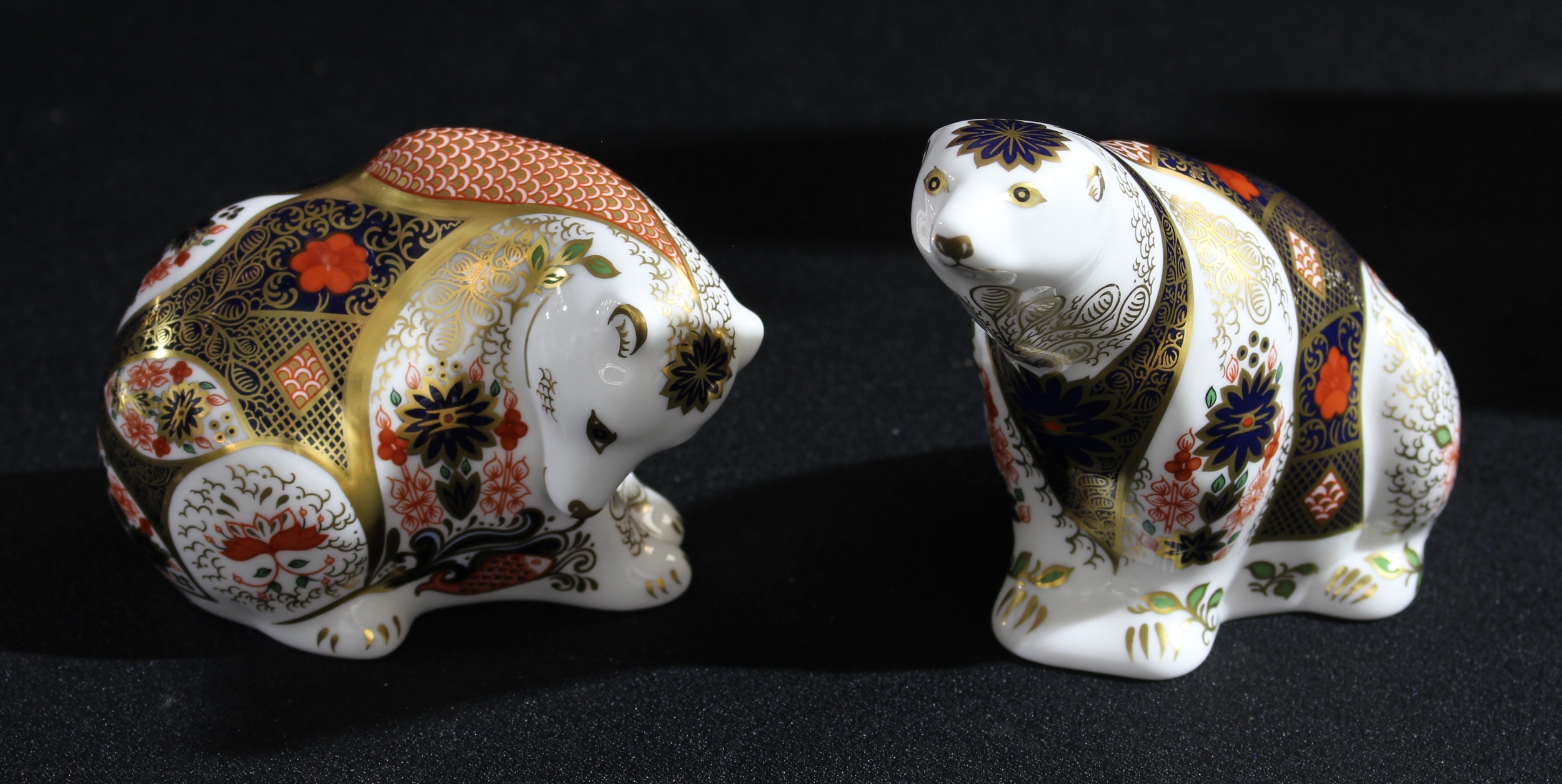 A pair of Royal Crown Derby paperweights, Imari Bears, Russian Bear and Polar Bear, 1128 pattern, gold stoppers, signed in gold