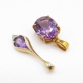 Pair of 9ct gold pendants inc amethyst and diamond (2.6g)
