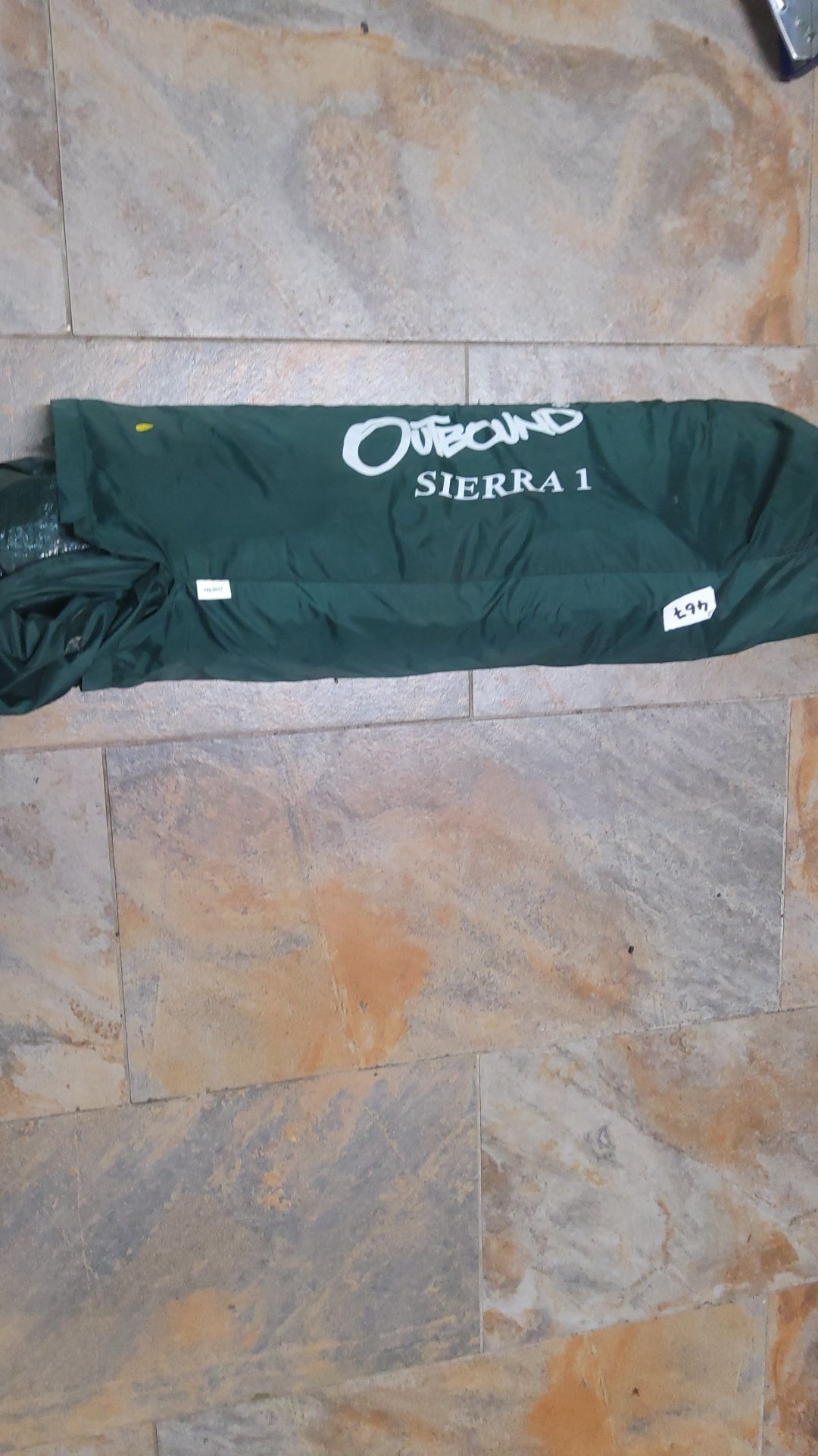 Outbound Sierra 1 camping tent in green carrying case.