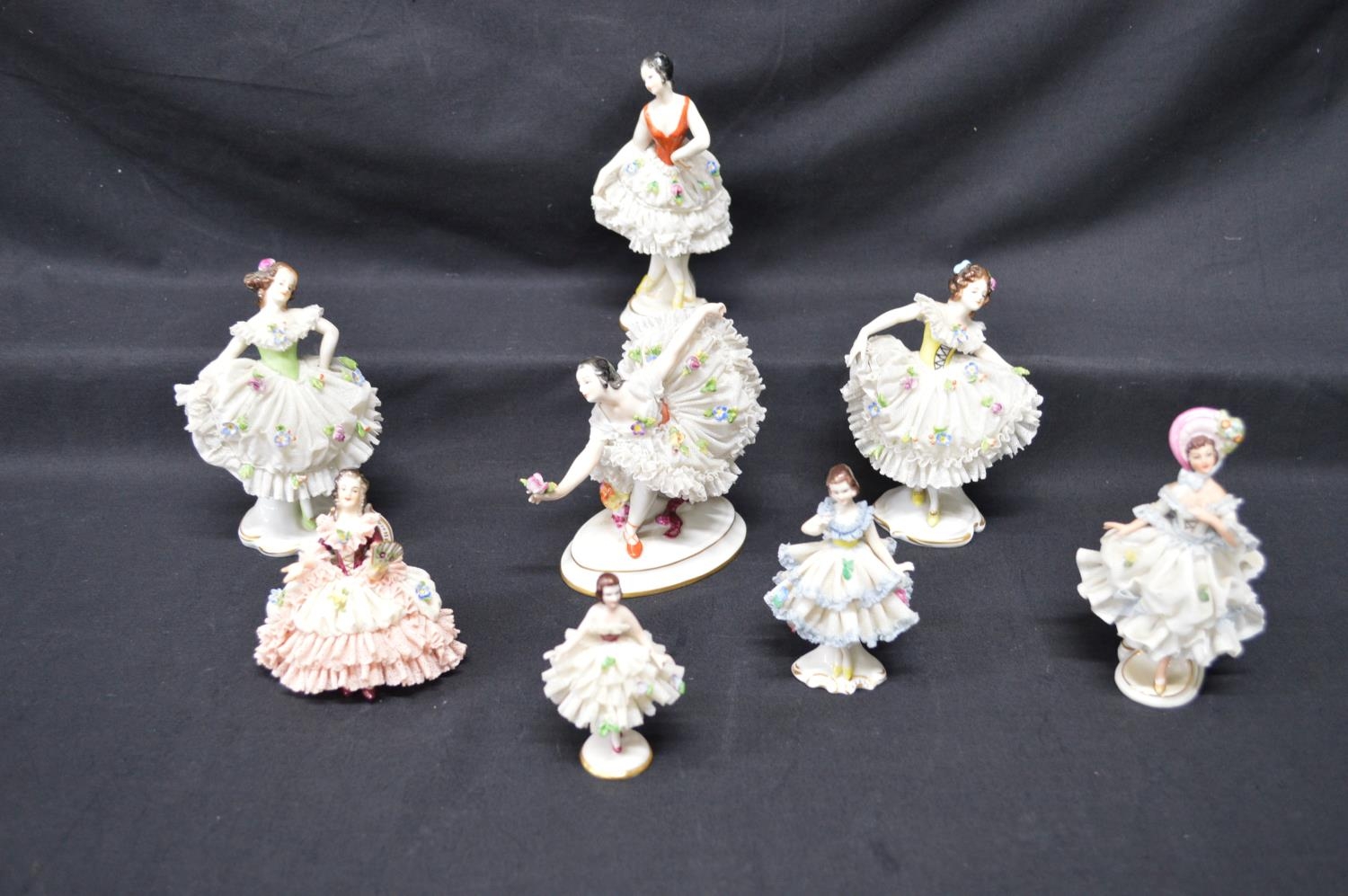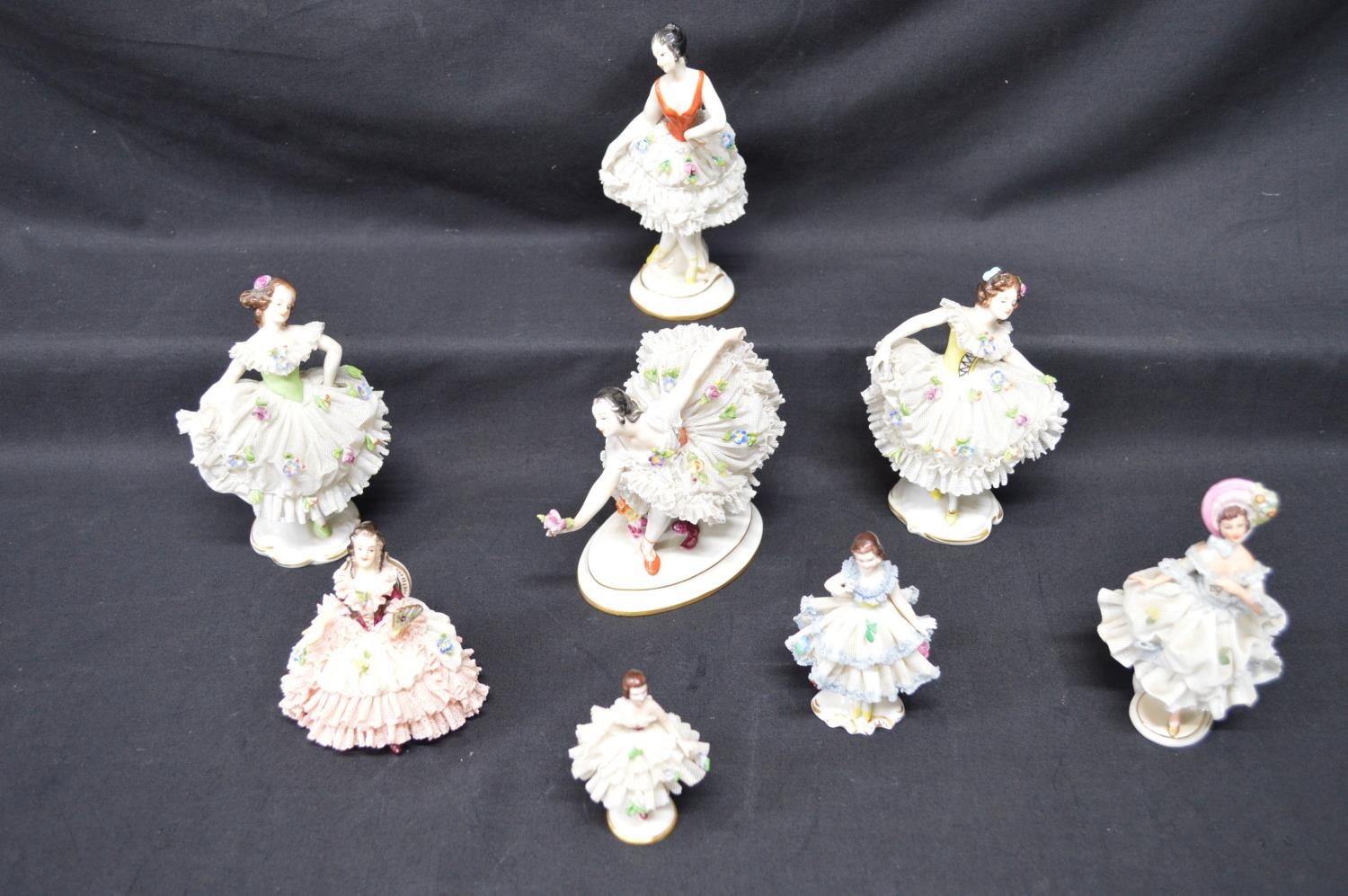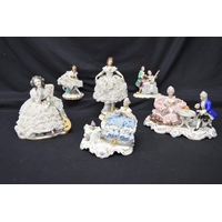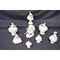 Group of eight Naples, Dresden and Aelteste Volkstedter figures
