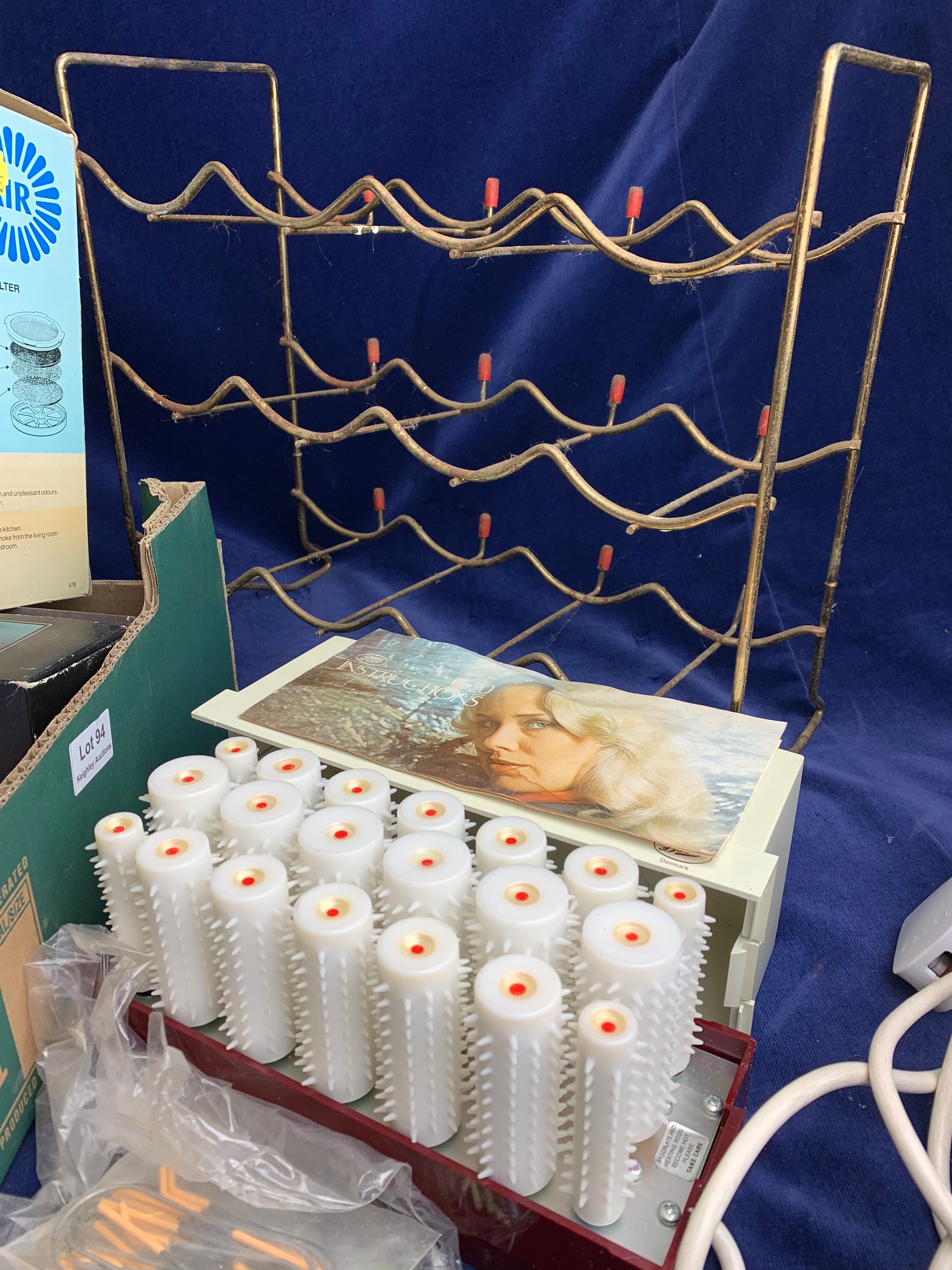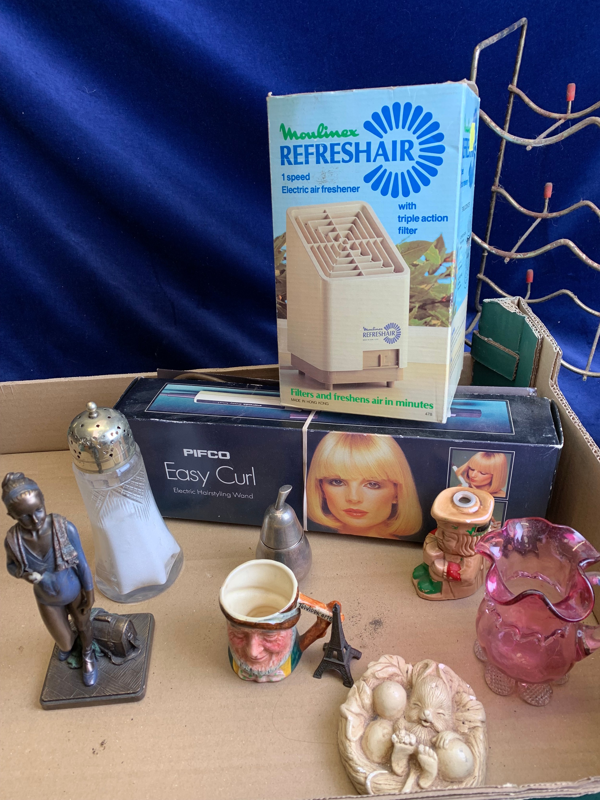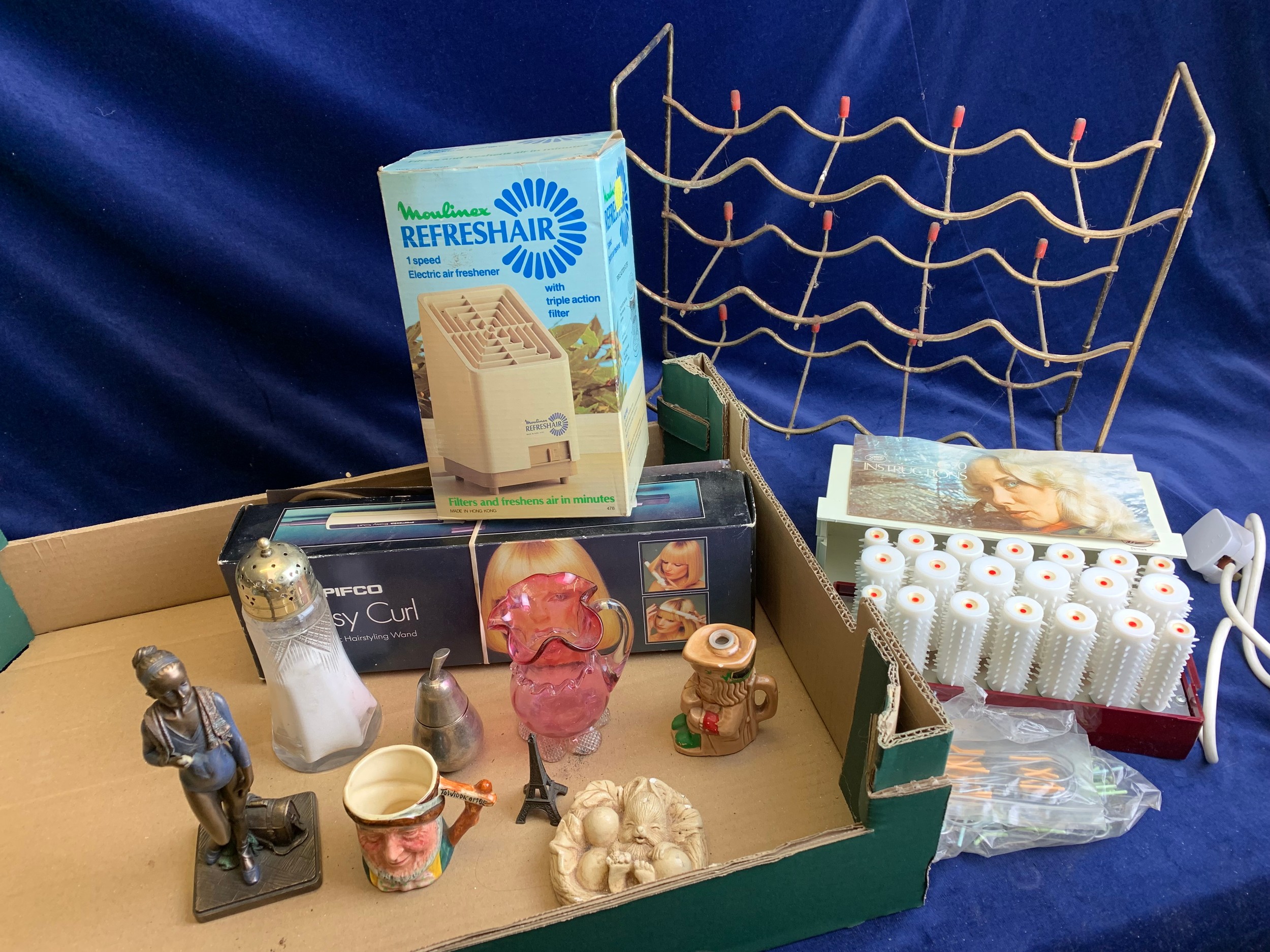 Mixed Collectables inc. Vintage Wine Rack, As New Boots Vintage Curlers, Pifco EasyCurl, Moulinex Refreshair, John Wu Figurine
