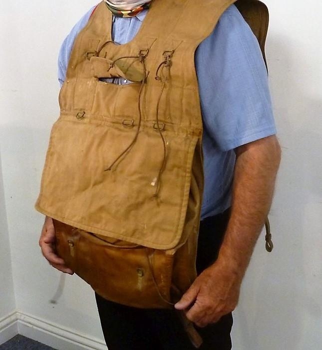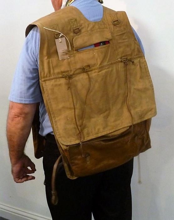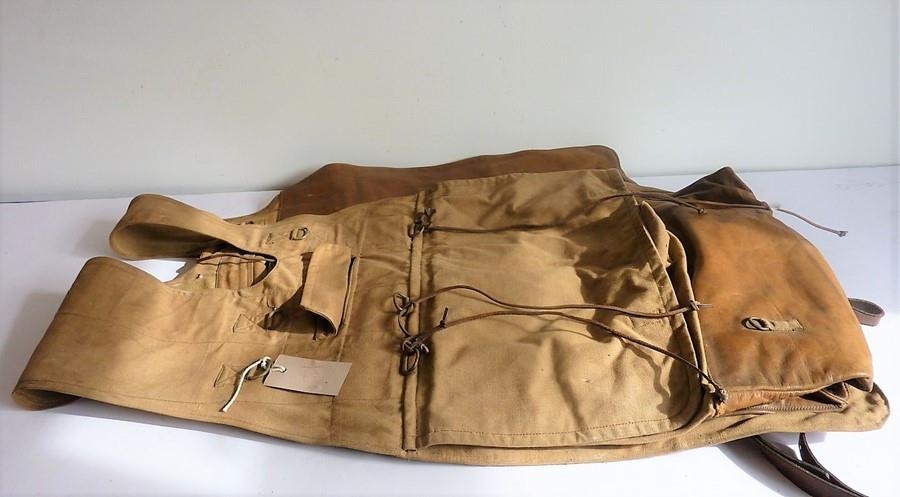 A hand-stitched canvas and leather-lined pannier (possibly WWI)