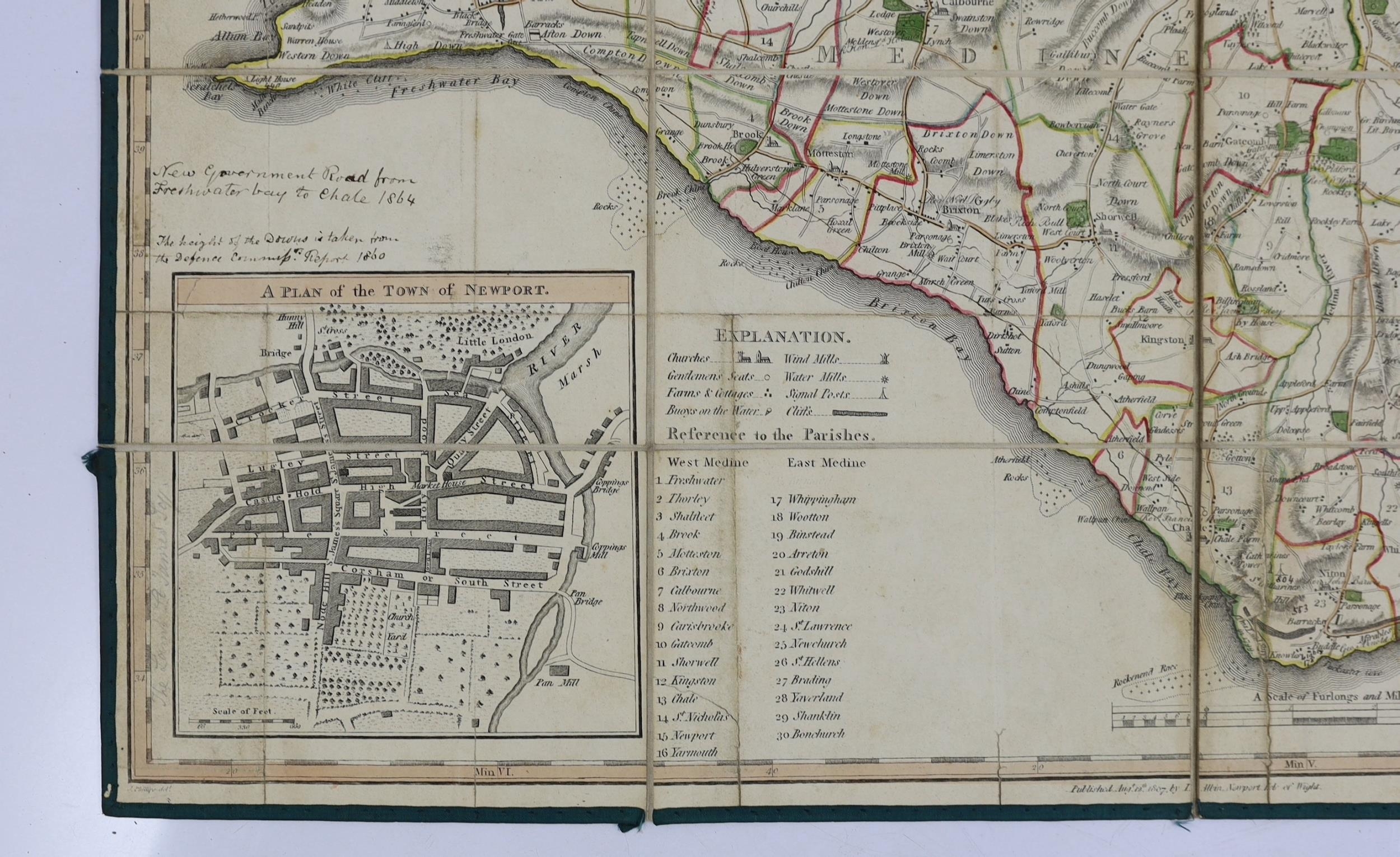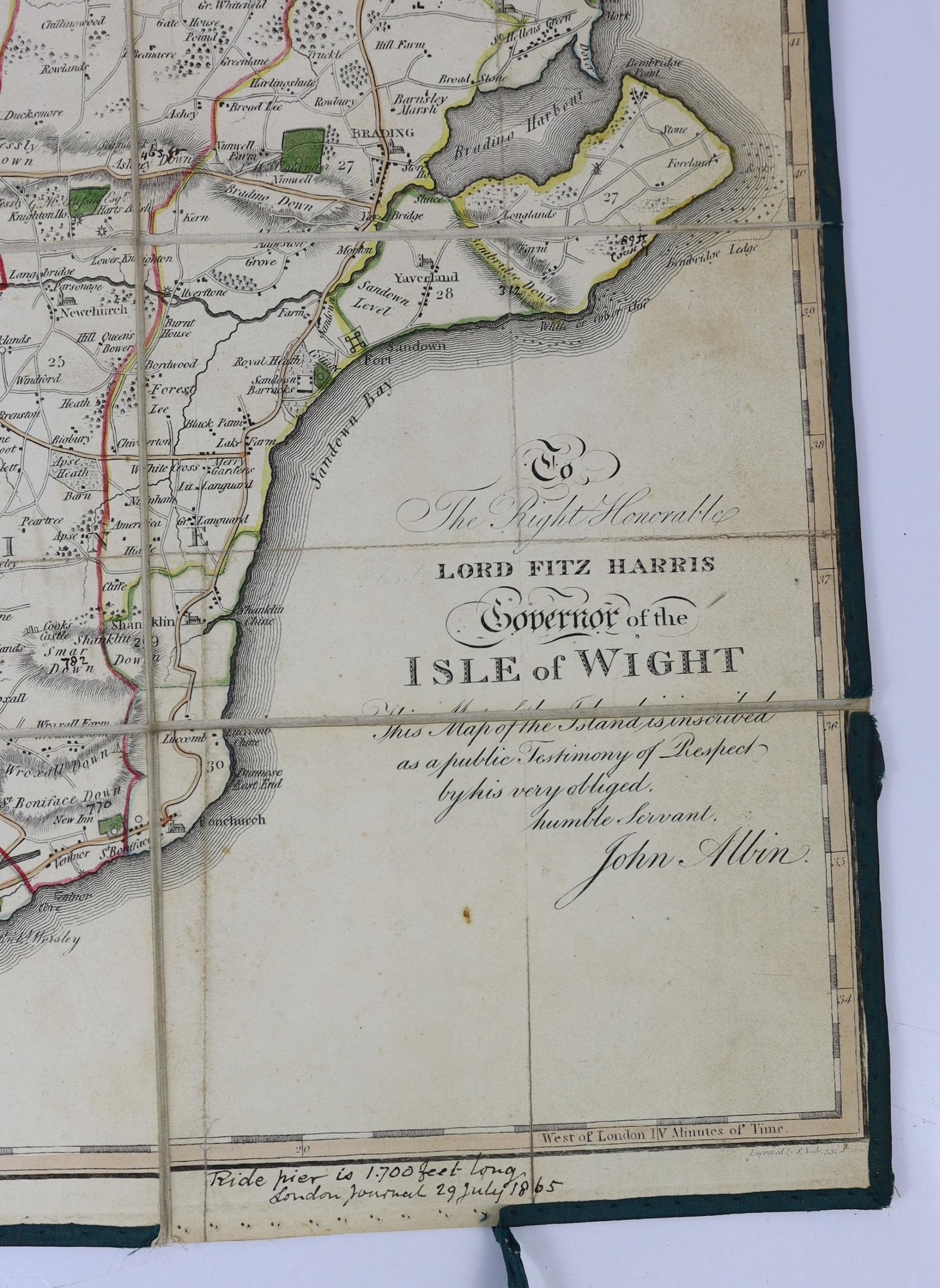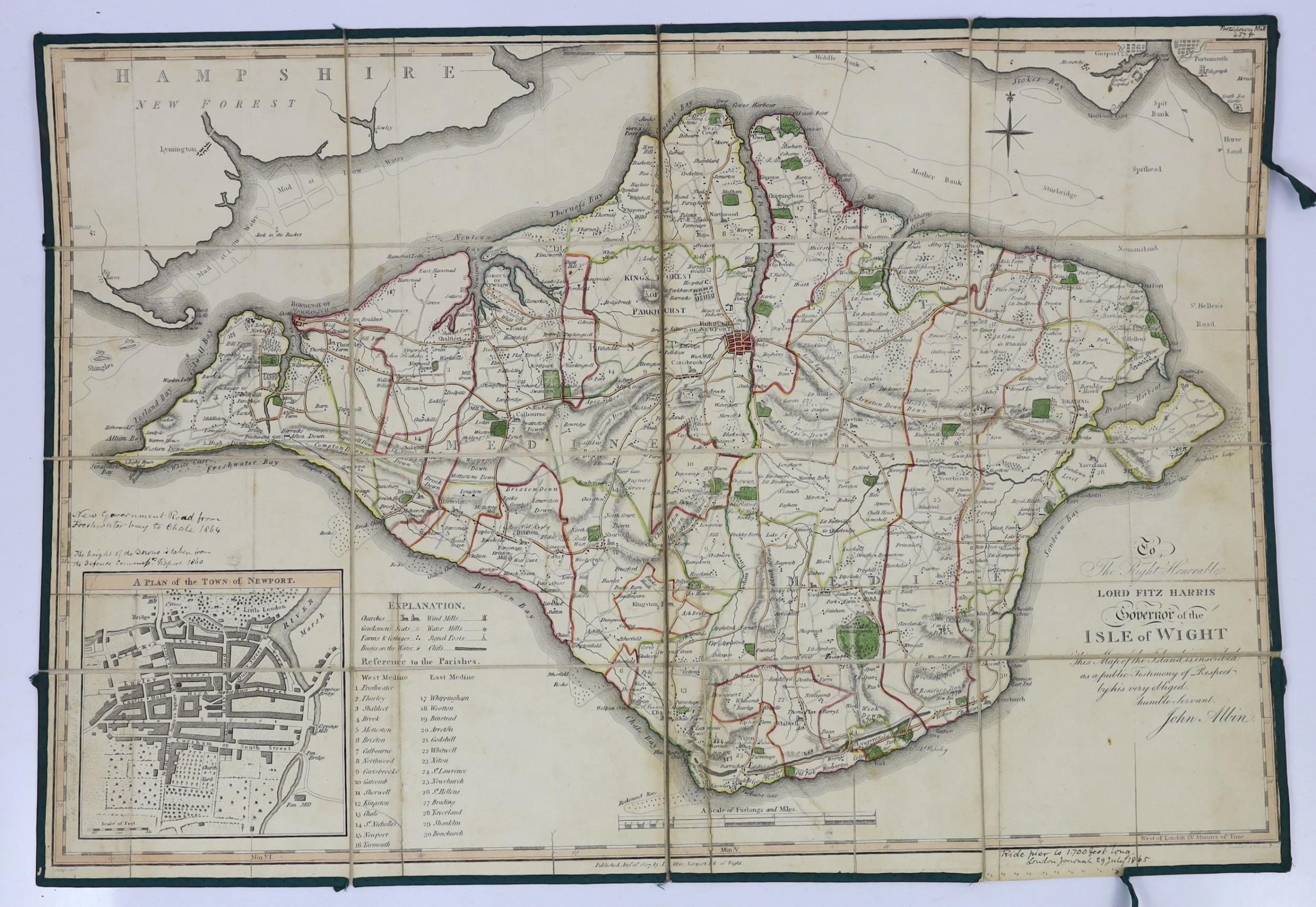 ° ° ISLE OF WIGHT: Brannon George - The Pleasure - Visitor's Companion in Surveying the Isle of Wight. Pointing out the best plan for seeing every remarkable object ... within the shortest time. folded map and 3 plates; original pictorial printed wrappers, 12mo. Wootton (I.O.W.), 1833: Albin, John - A Companion to the Isle of Wight ... 9th edition, with considerable additions. large hand-coloured and folded map, engraved plate and folded table; original paper boards with printed labels, uncut, 12mo. Newport: printed for the Author ... 1823; Albin, John - (Isle of Wight Map). hand-coloured and folded on linen, engraved dedication, inset plan of Newport, 39 x 59cms. (approx), in original marbled slipcase. Newport, 1807 (3)