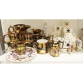 Collection of Staffordshire pottery including a group of copper lustre jugs, a two-handled loving cup and a group of spaniels, in the Victorian style, including Beswick examples, two Victorian-style spaniel head money boxes, three late 19th/early 20th century continental porcelain figures and other items