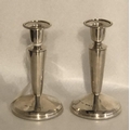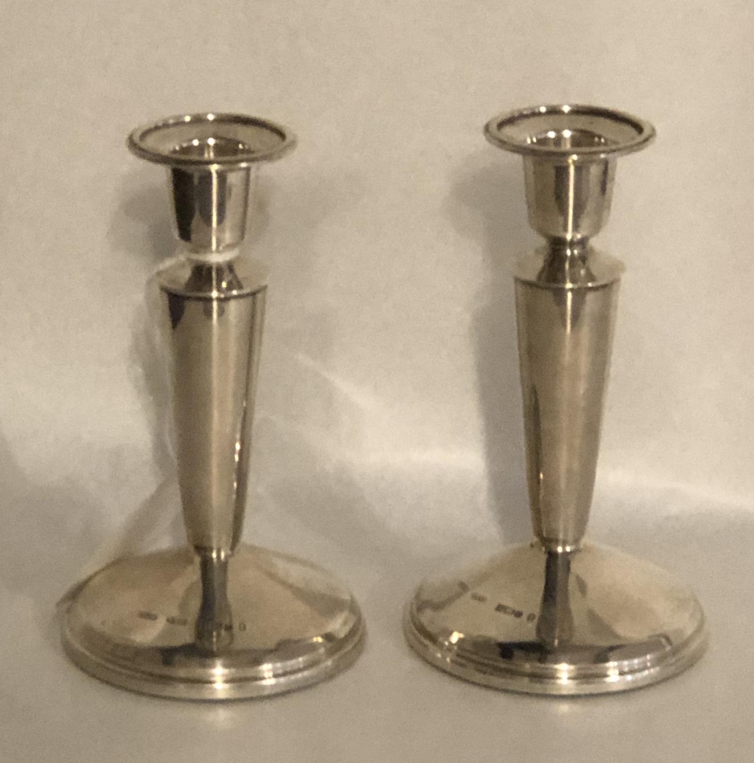 A PAIR OF ELIZABETHAN II STERLING SILVER BALUSTER FORM CANDLESTICKS