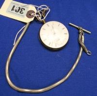 White Metal Marked .935 Cased Open Face Pocket Watch with lever movement, white dial with Roman numerals, gilt hands, secondary seconds dial