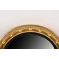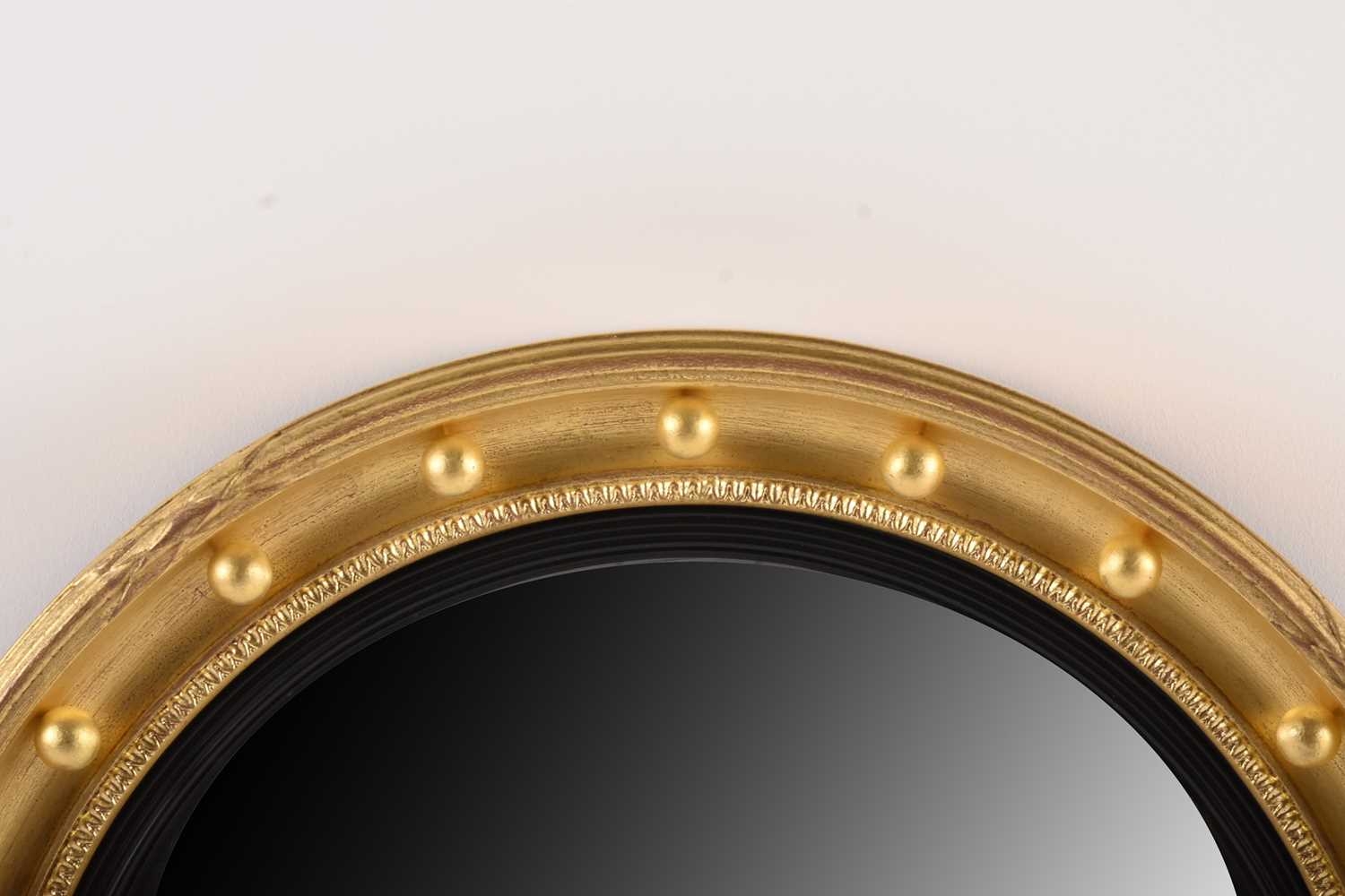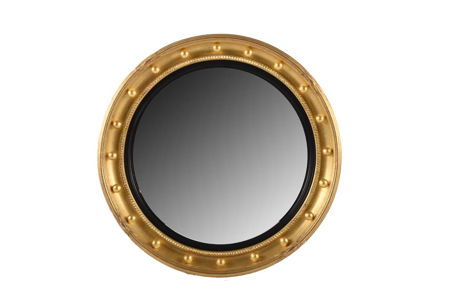 A 19th century giltwood convex wall mirror With reeded ebonised slip and ball-applied moulded frame. 53cm dia. (plate 39cm)
