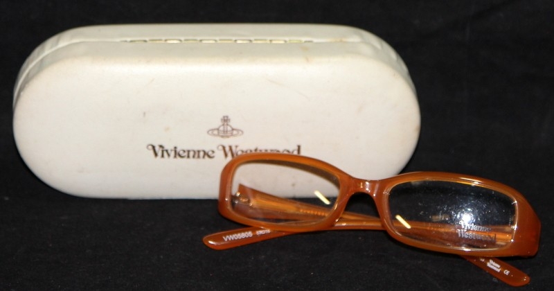 Genuine Vivienne Westwood clear lens orange framed spectacles glasses in original shell case (wear to case). From a single owner collection