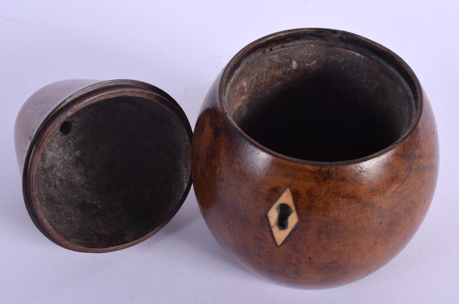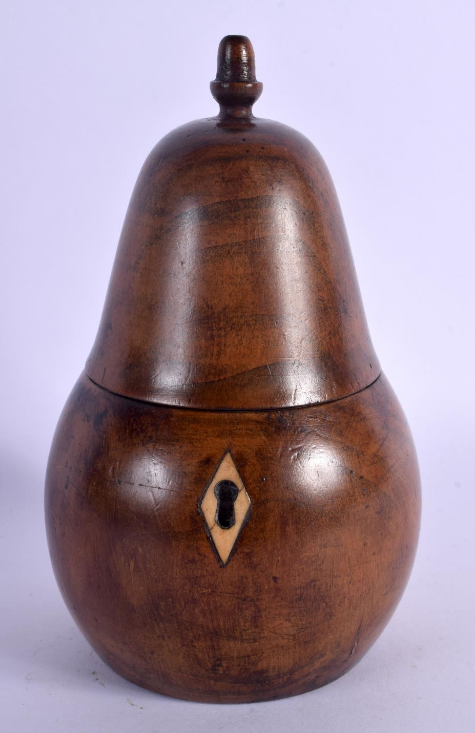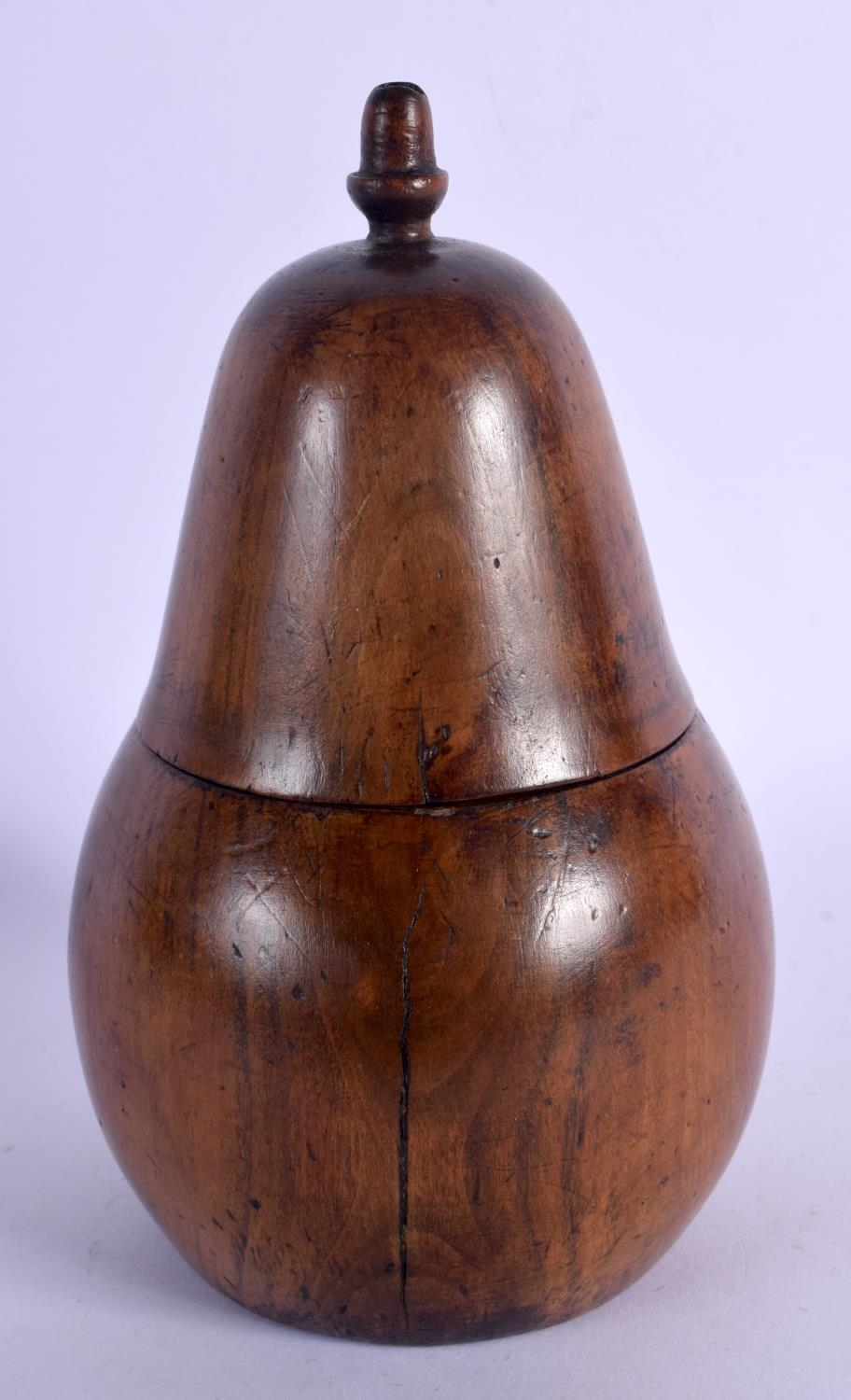 A GEORGE III FRUITWOOD TEA CADDY AND COVER in the form of a fruit. 16 cm x 9 cm.