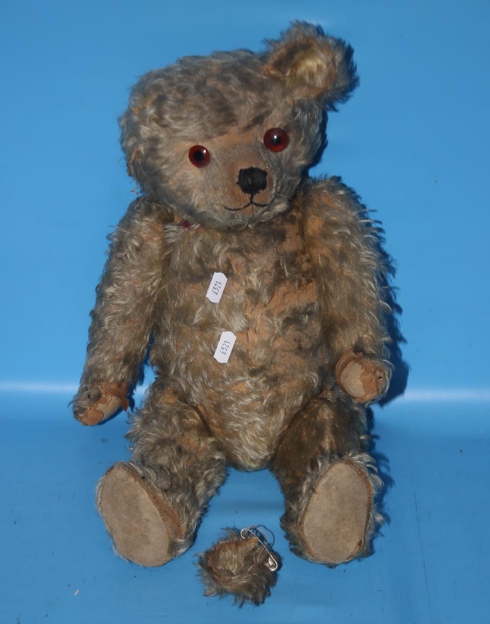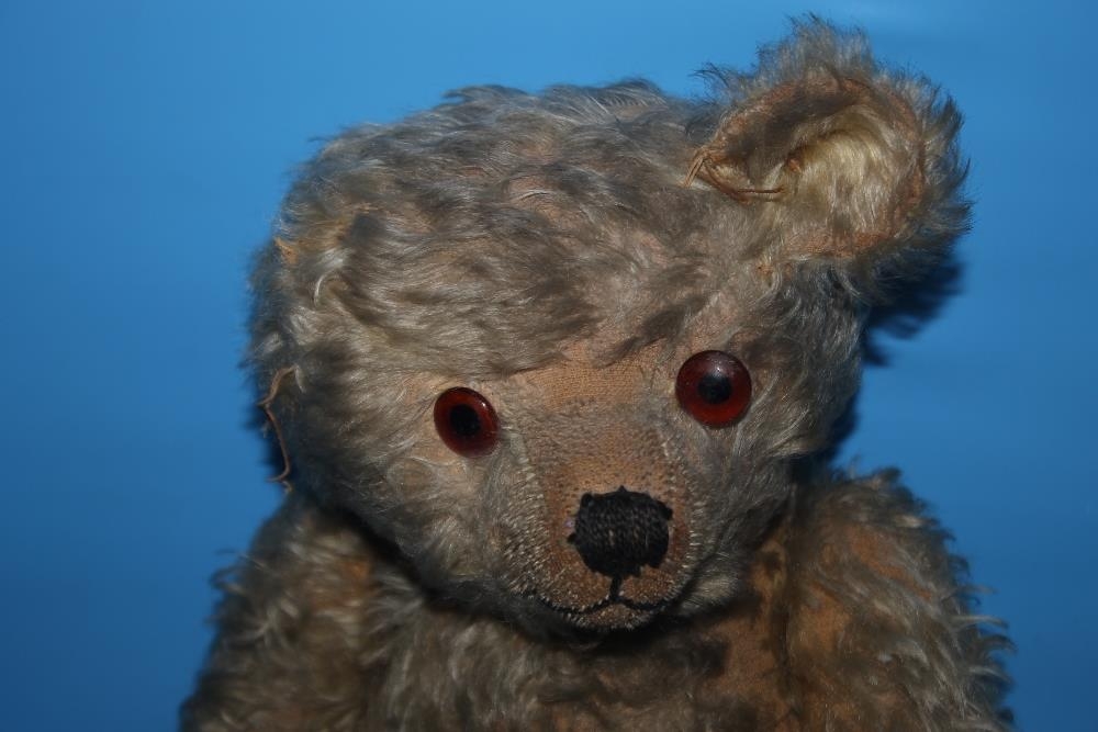 A VINTAGE PLAYWORN TEDDY BEAR