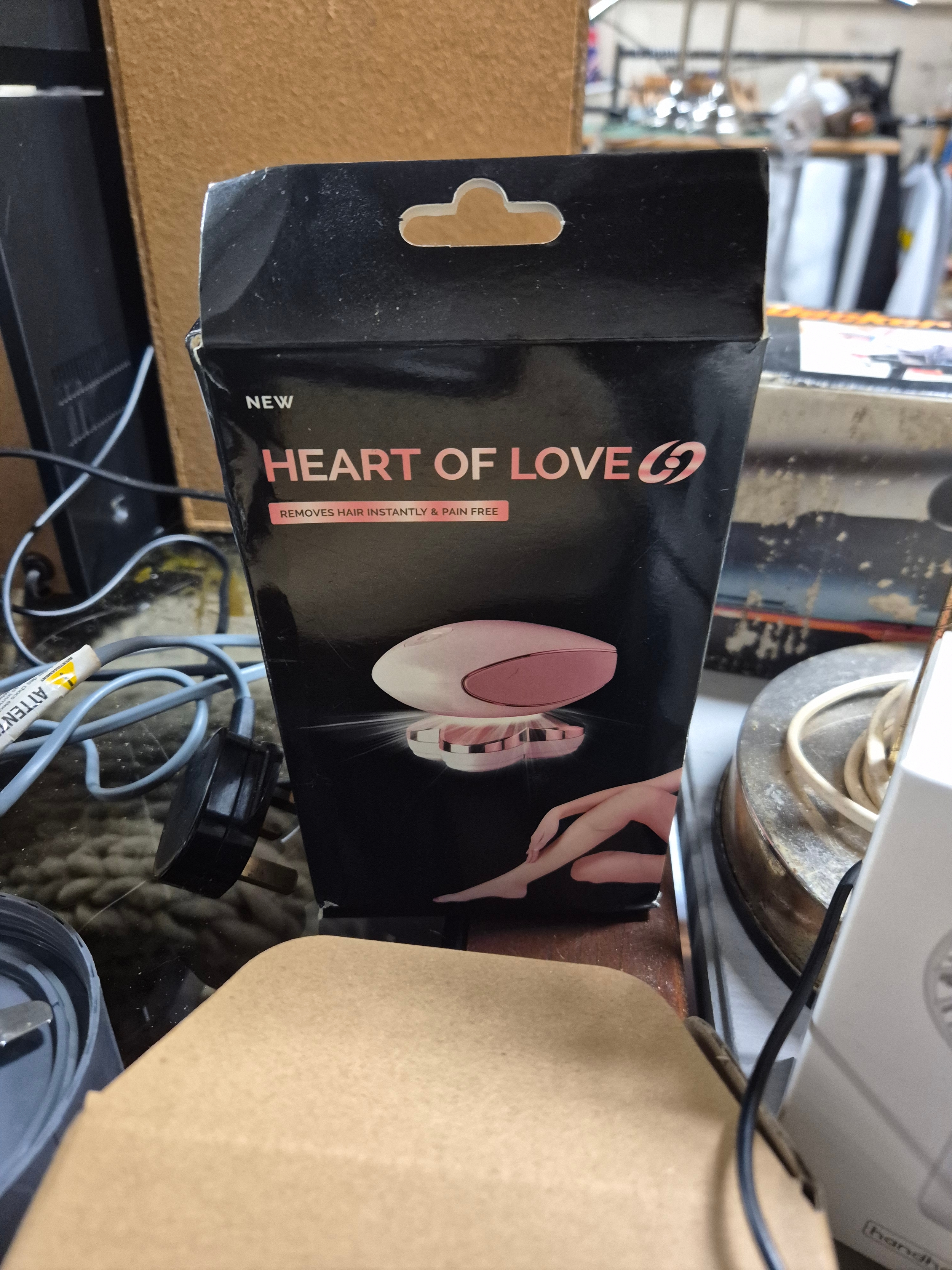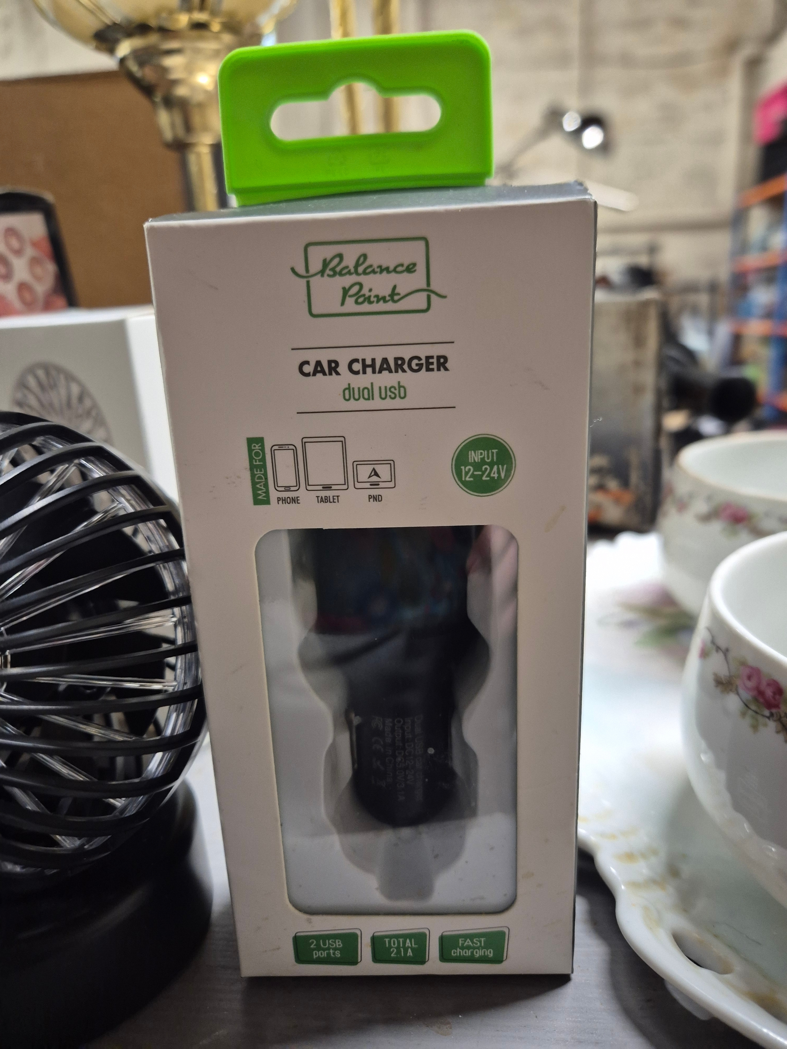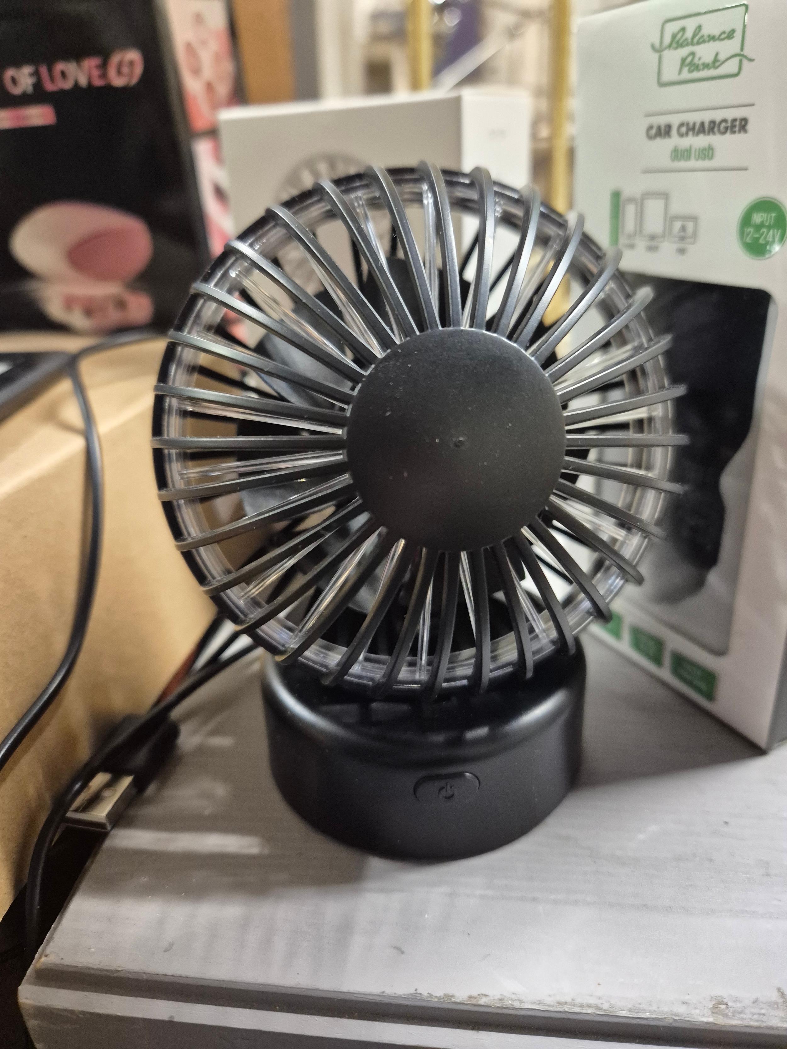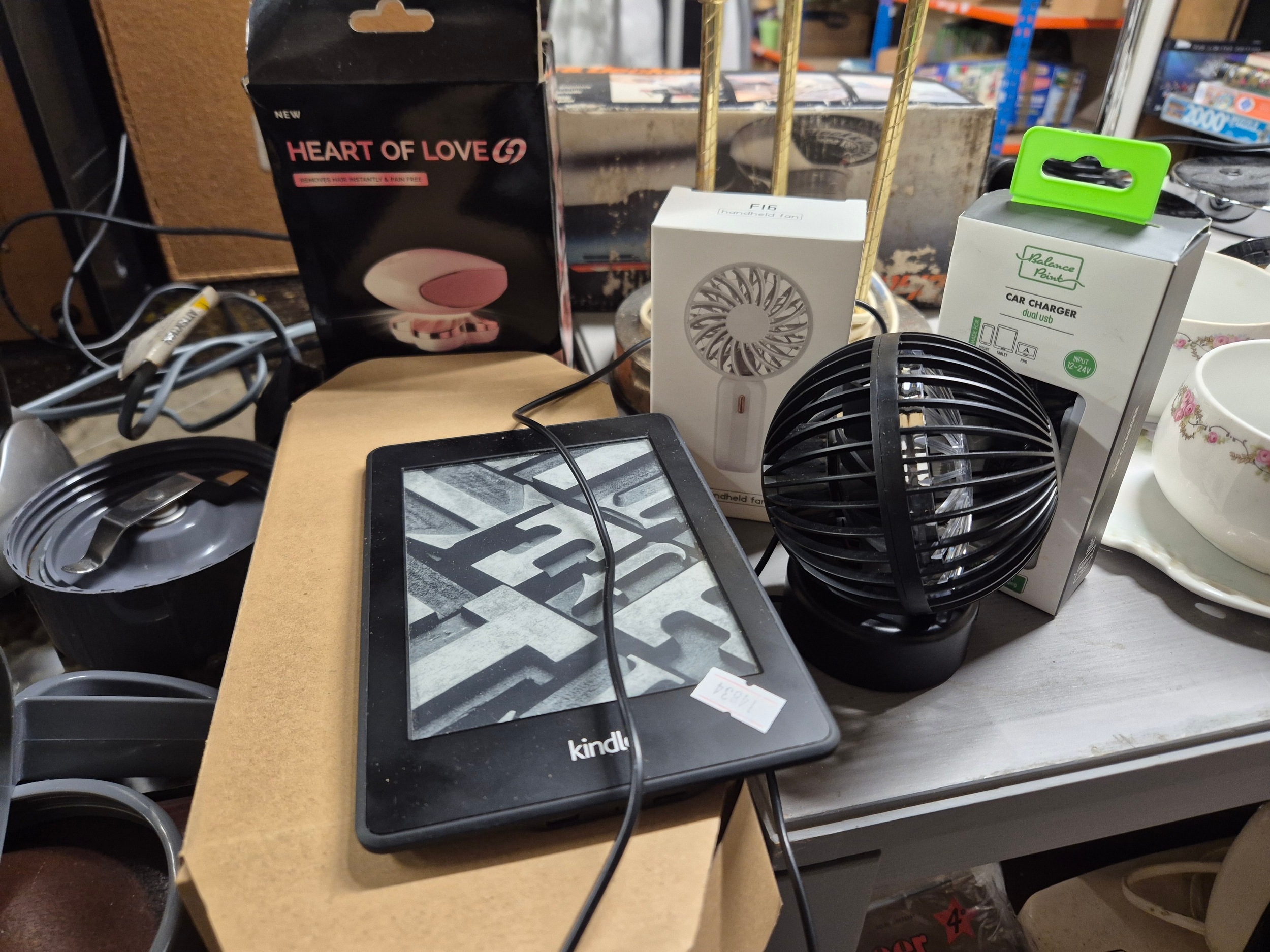 Amazon Kindle, handheld fan, small usb desk fan, car charger and a Heart of Love hair remover