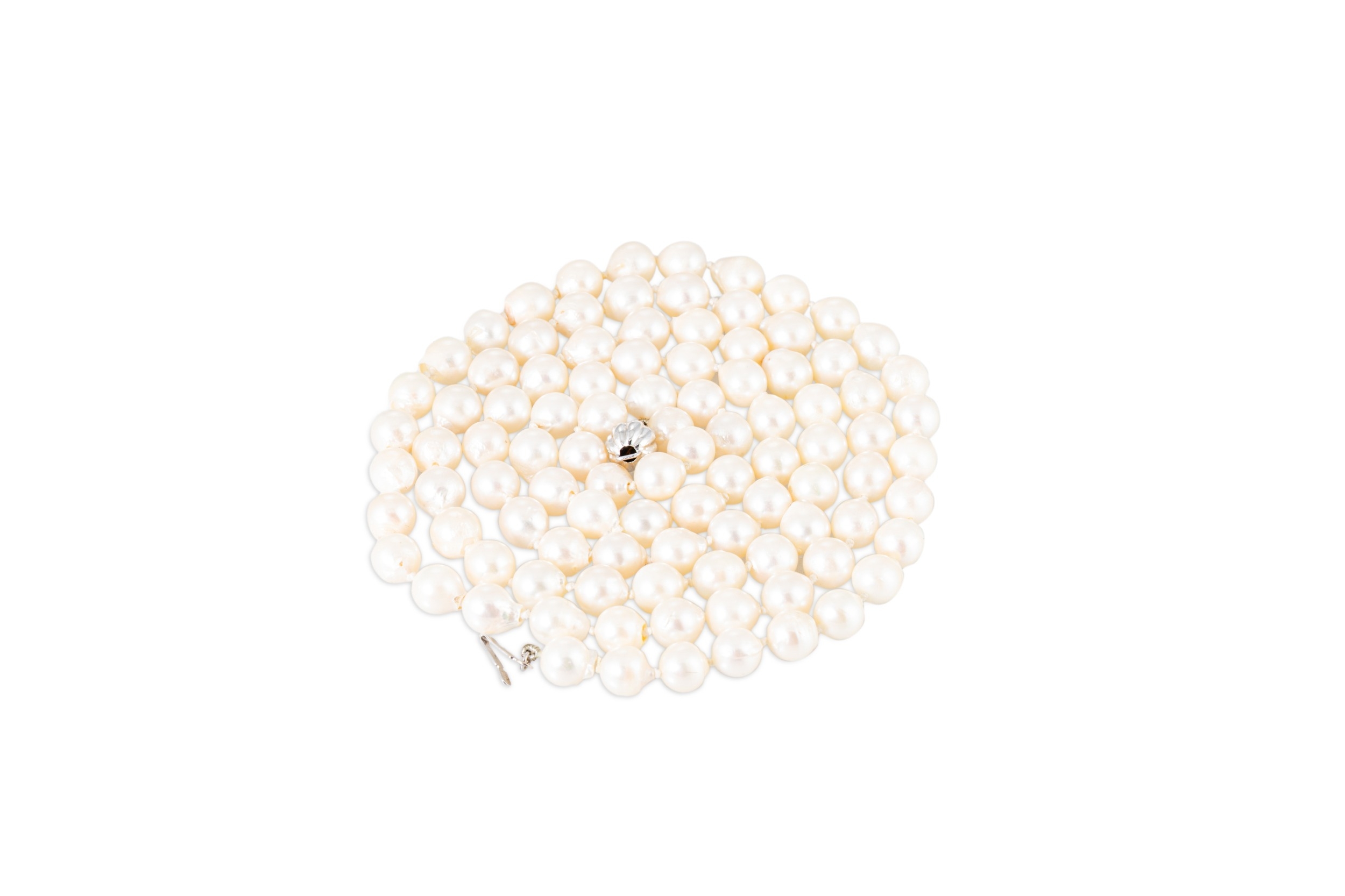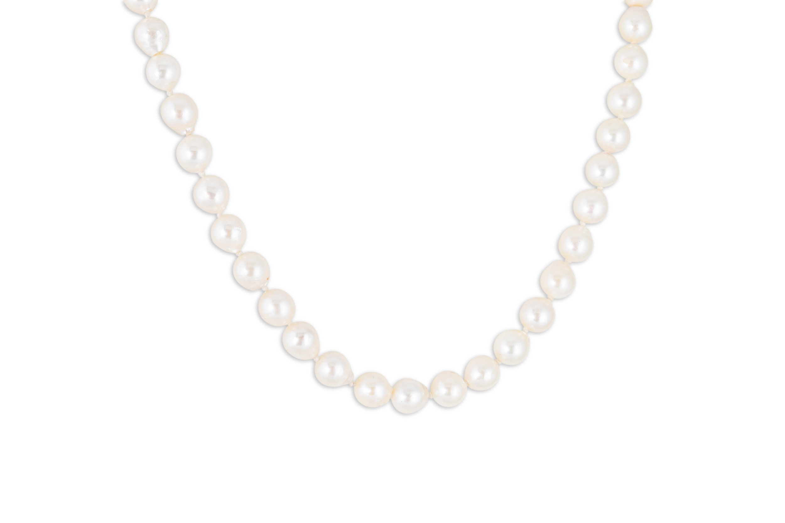 A STRING OF CULTURED PEARLS, to a 14ct white gold ball clasp