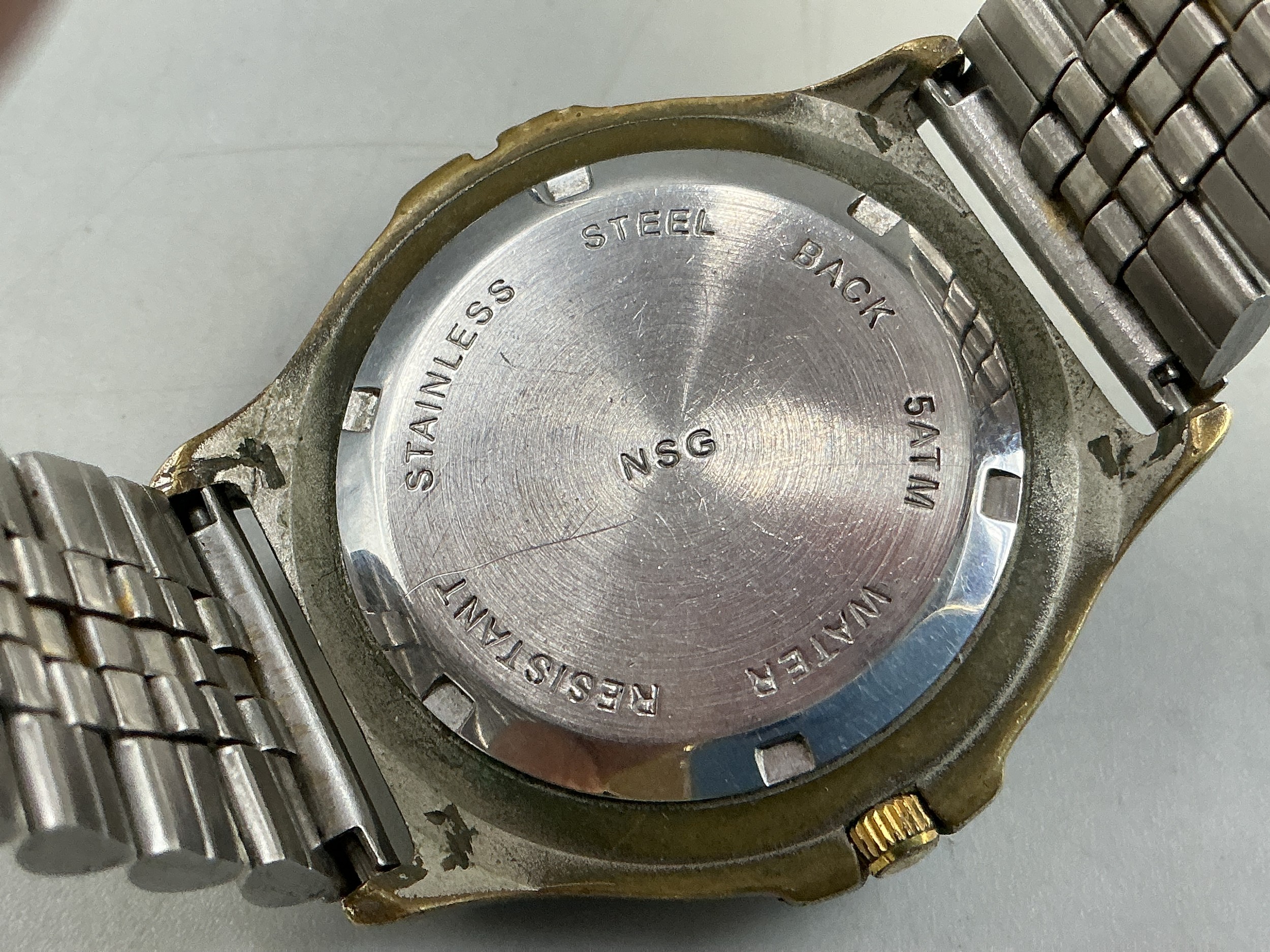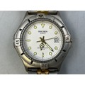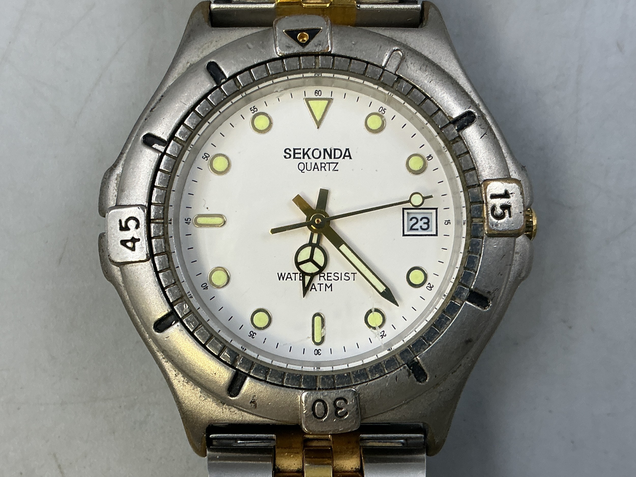 A Sekonda Gents Quartz Day/Time Watch - White Dial and Luminous Numbers, Stainless Steel Case, And Silver/Gold Tone Strap. Working