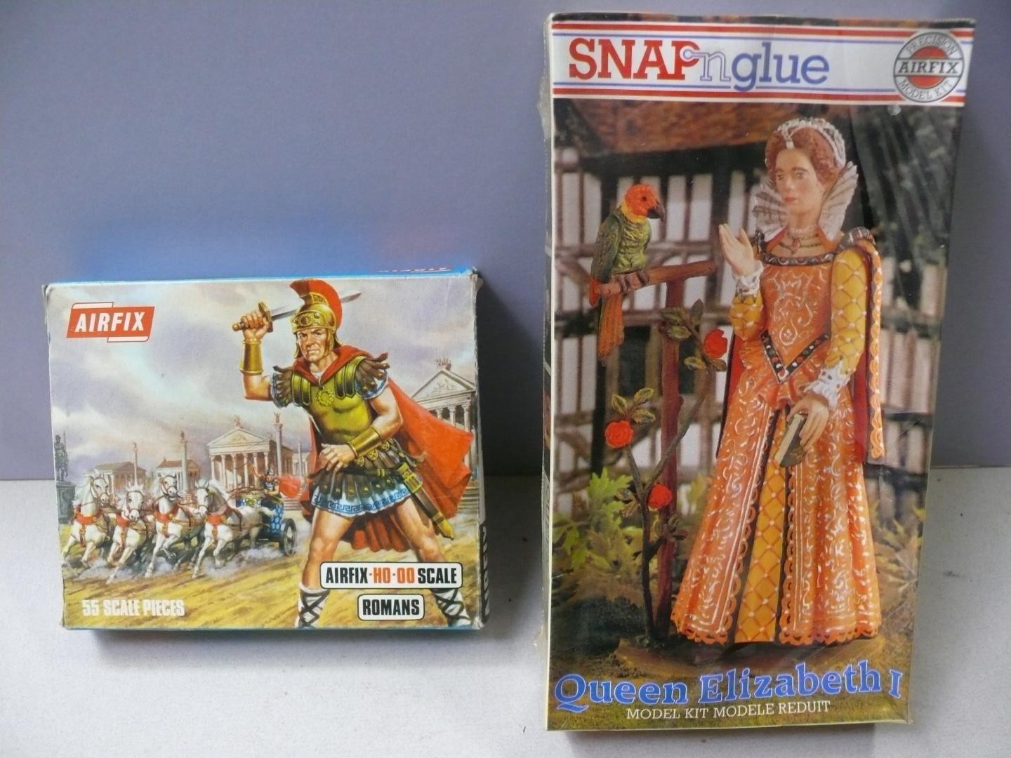 Two vintage Airfix scale model kits of historical figures in boxes, including: