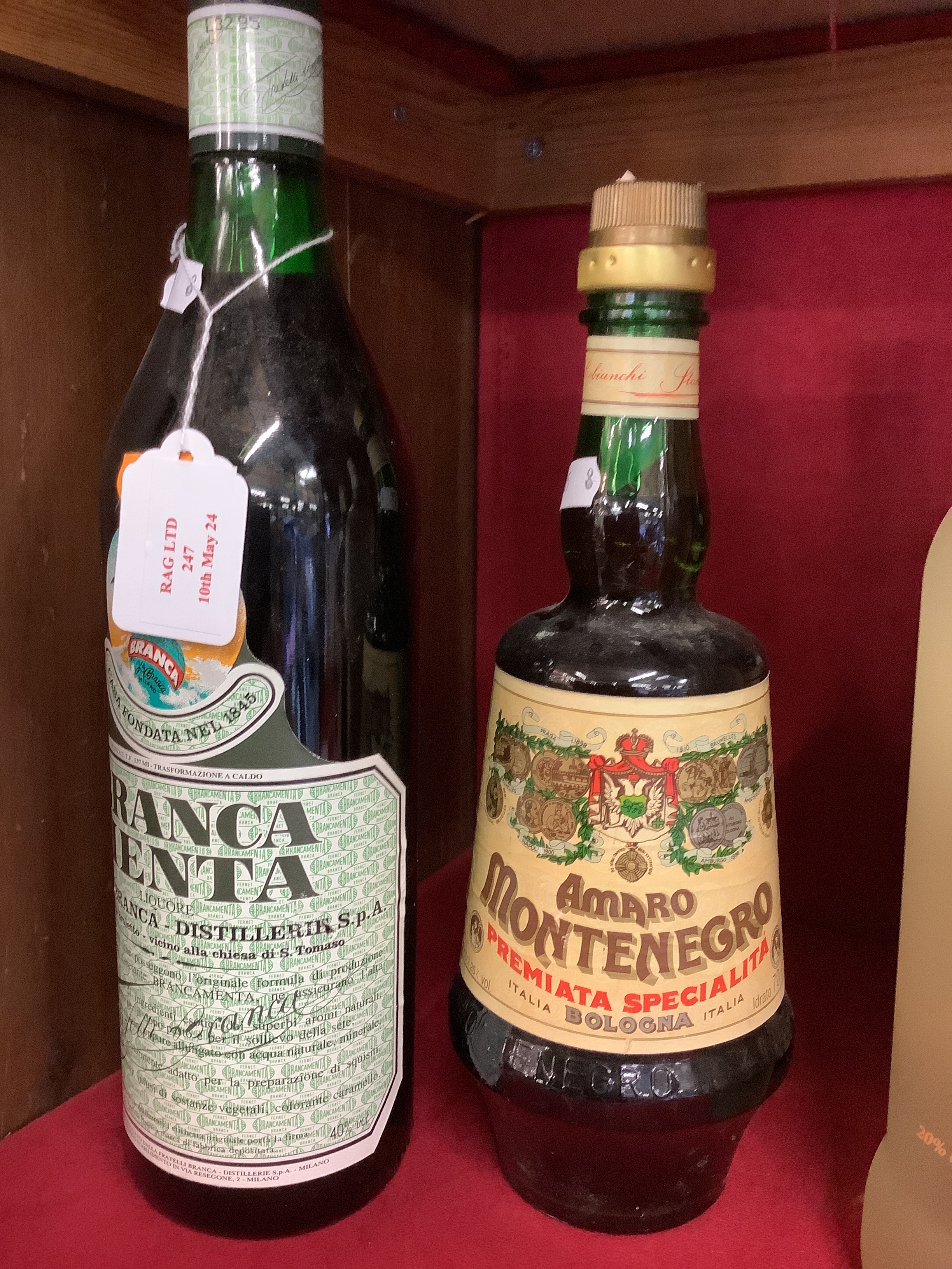 A bottle of Branca Menta liqueur together with a bottle of Amaro Montenego