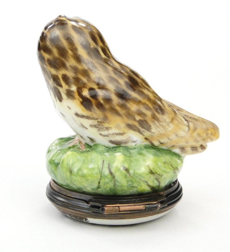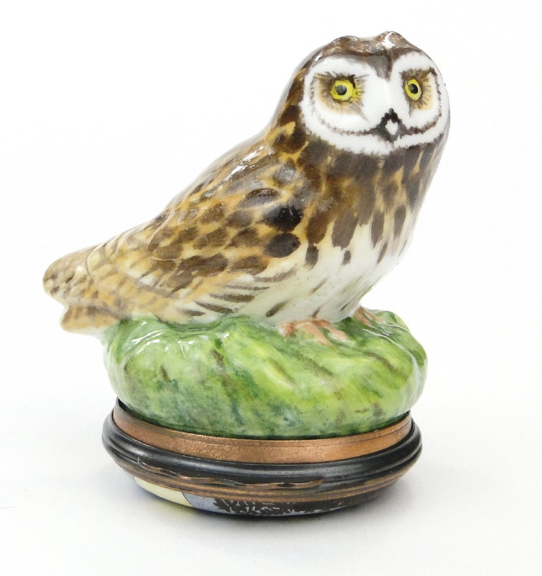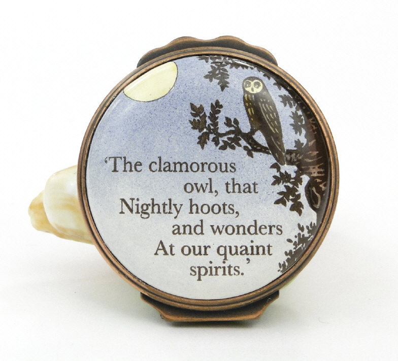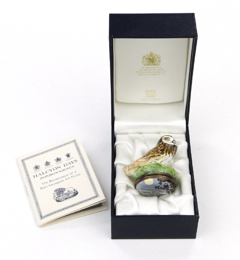 Boxed Halcyon Days owl bonbonnière, 4cm high