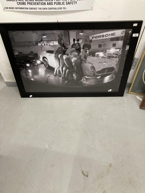Automobilia: Signed black and white poster of Bunny Girls alongside an Aston Martin Volante at the 1965 Motor Show. 35ins. x 24ins