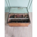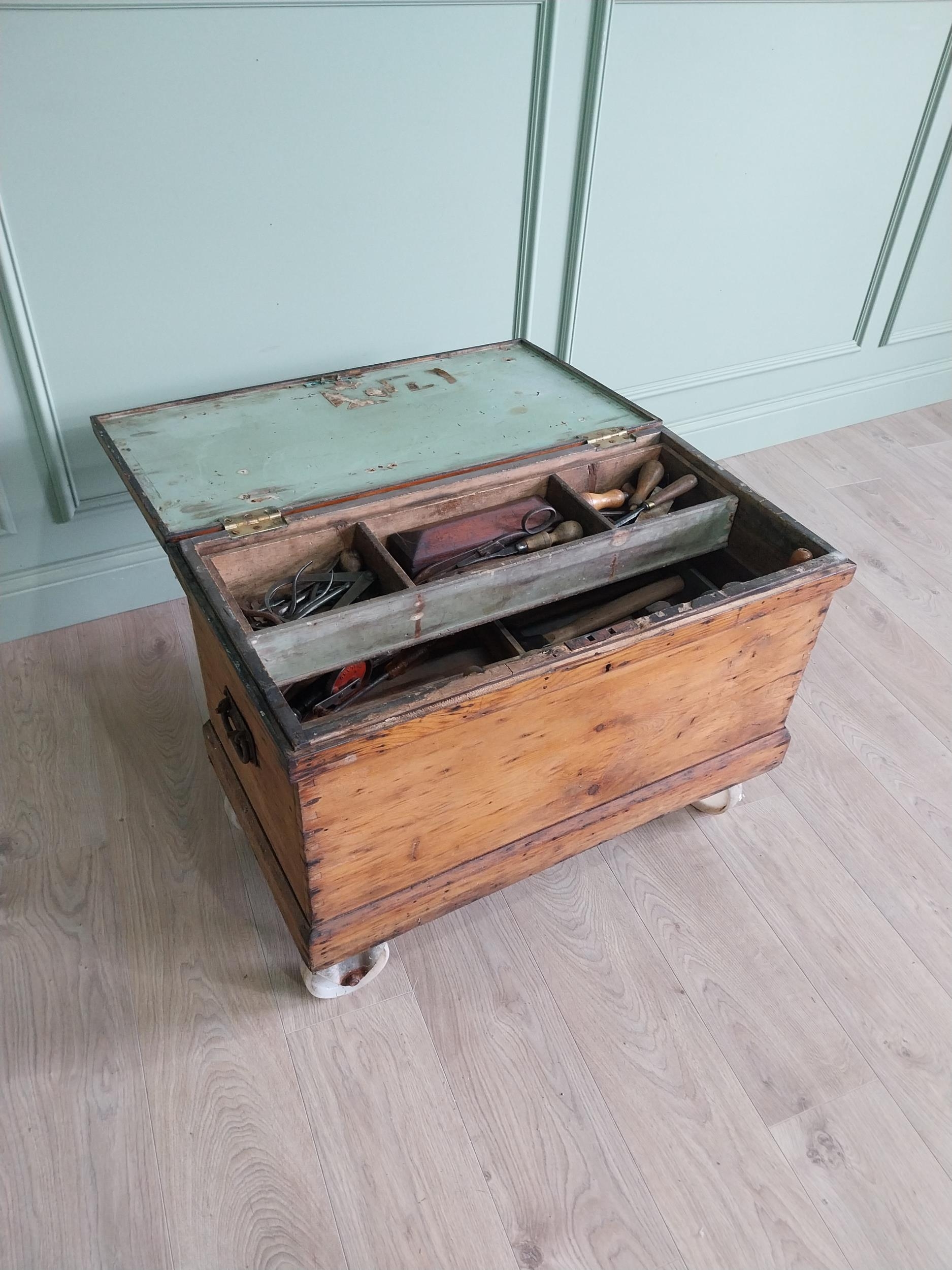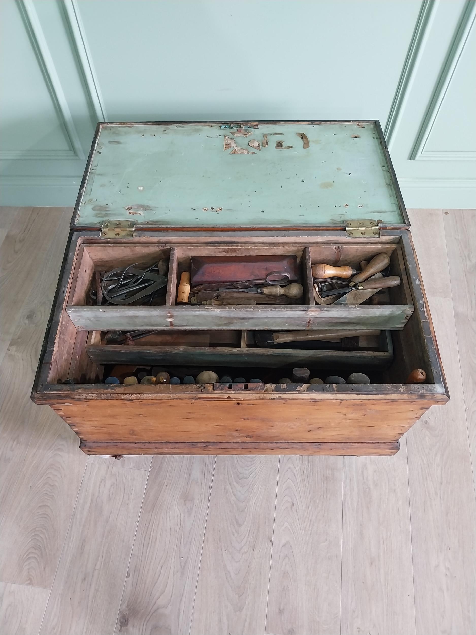 Early 20th C. pine carpenters tool box complete with contents of tools {60 cm H x 82 cm W x 44 cm D}.