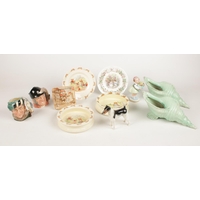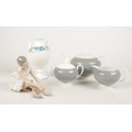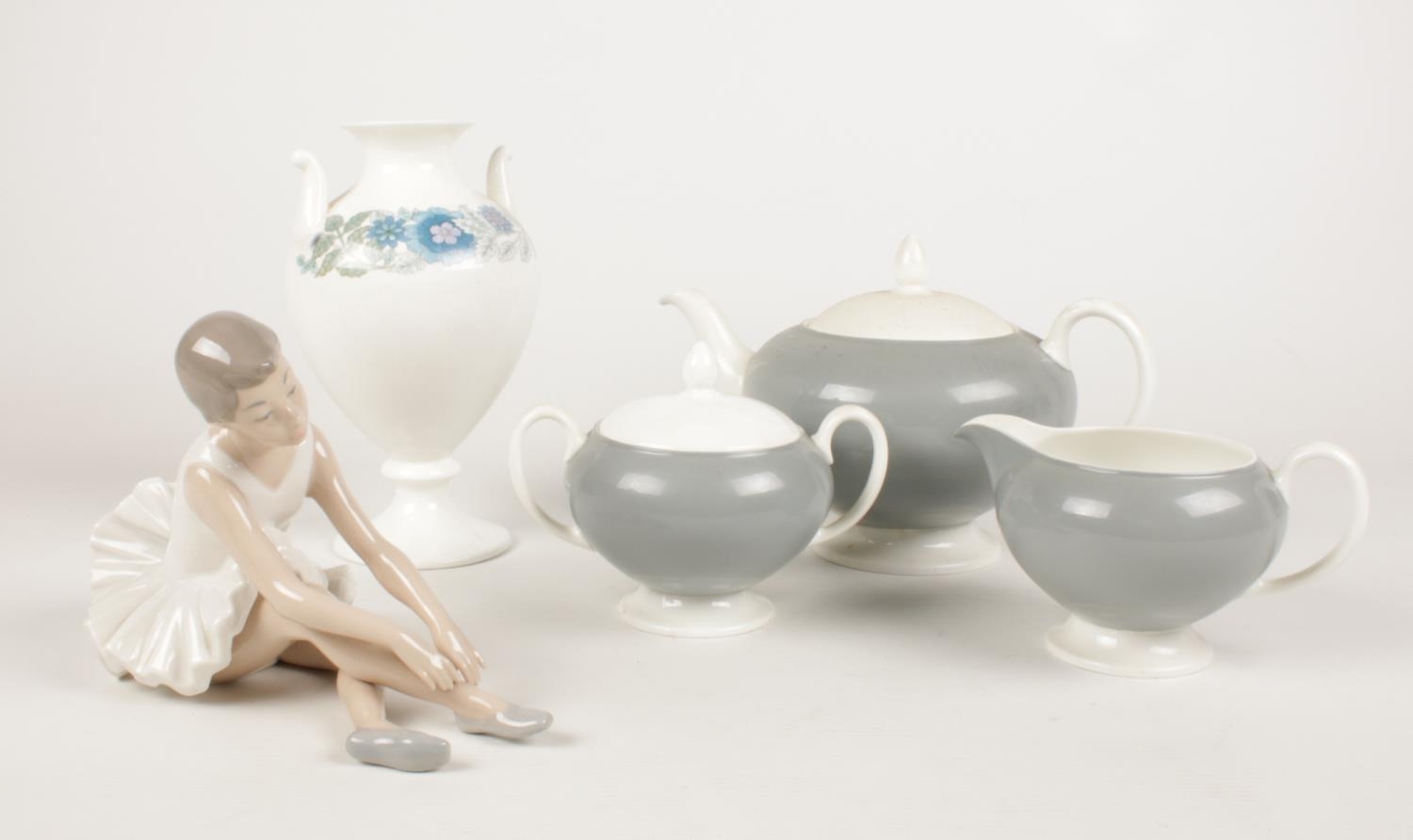 A group of ceramic's. Wedgwood teapot, milk jug, lidded sugar bowl & a Nao ballerina figurine.