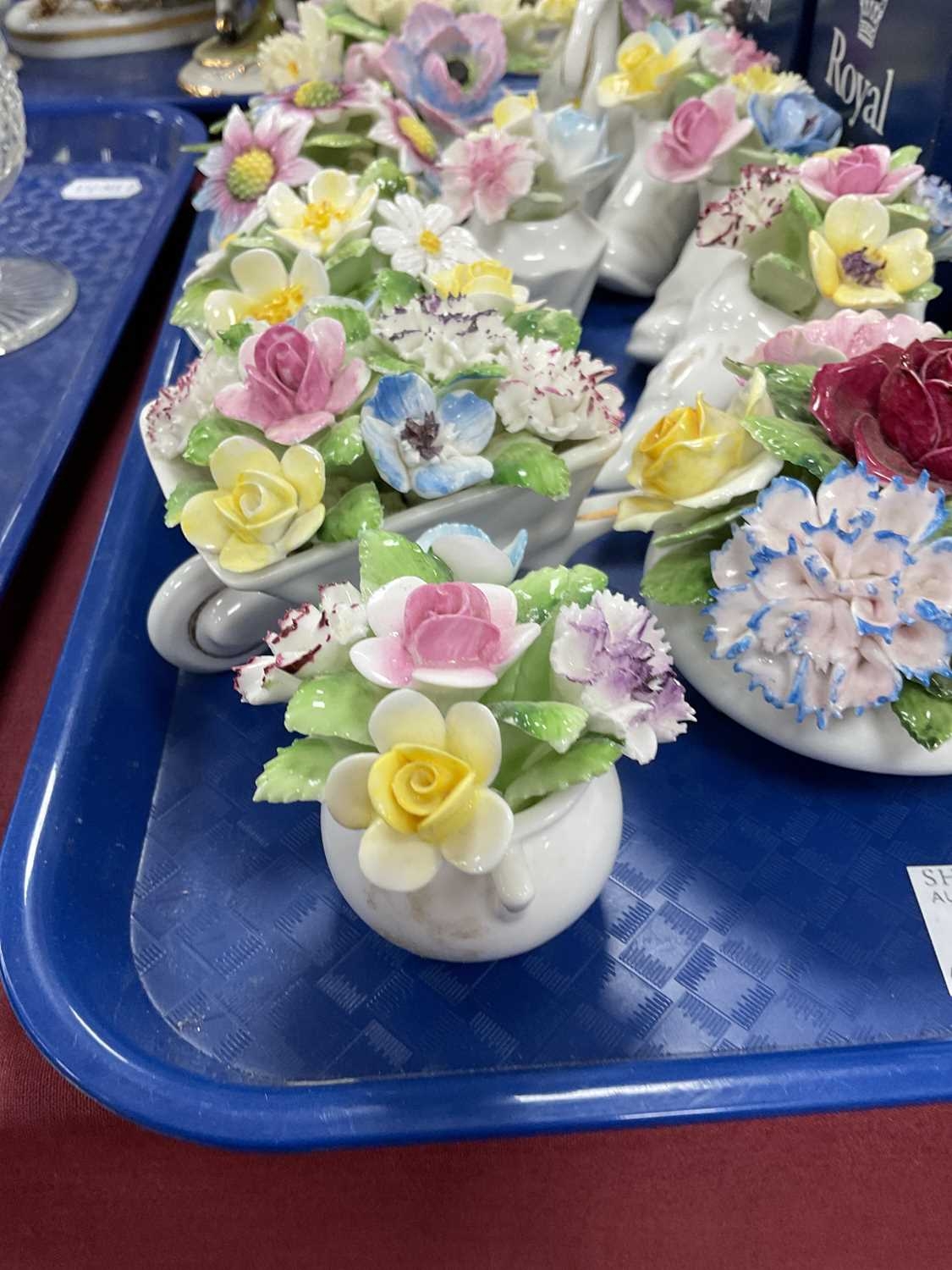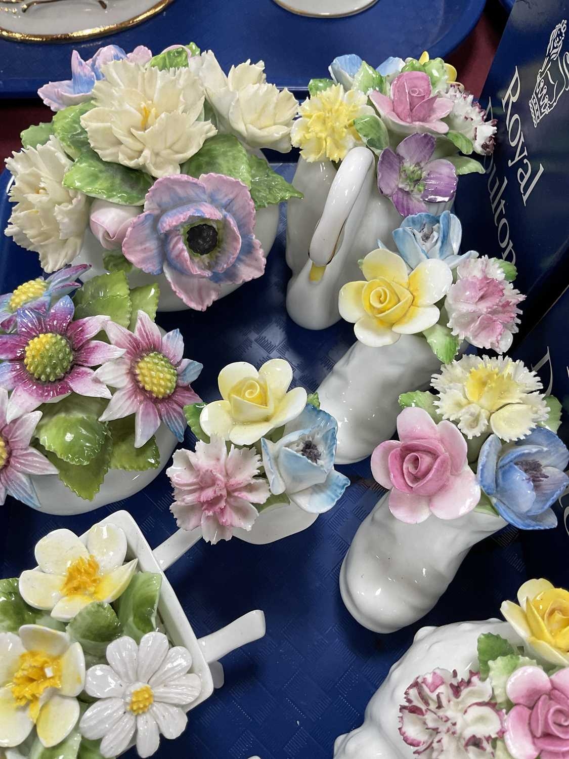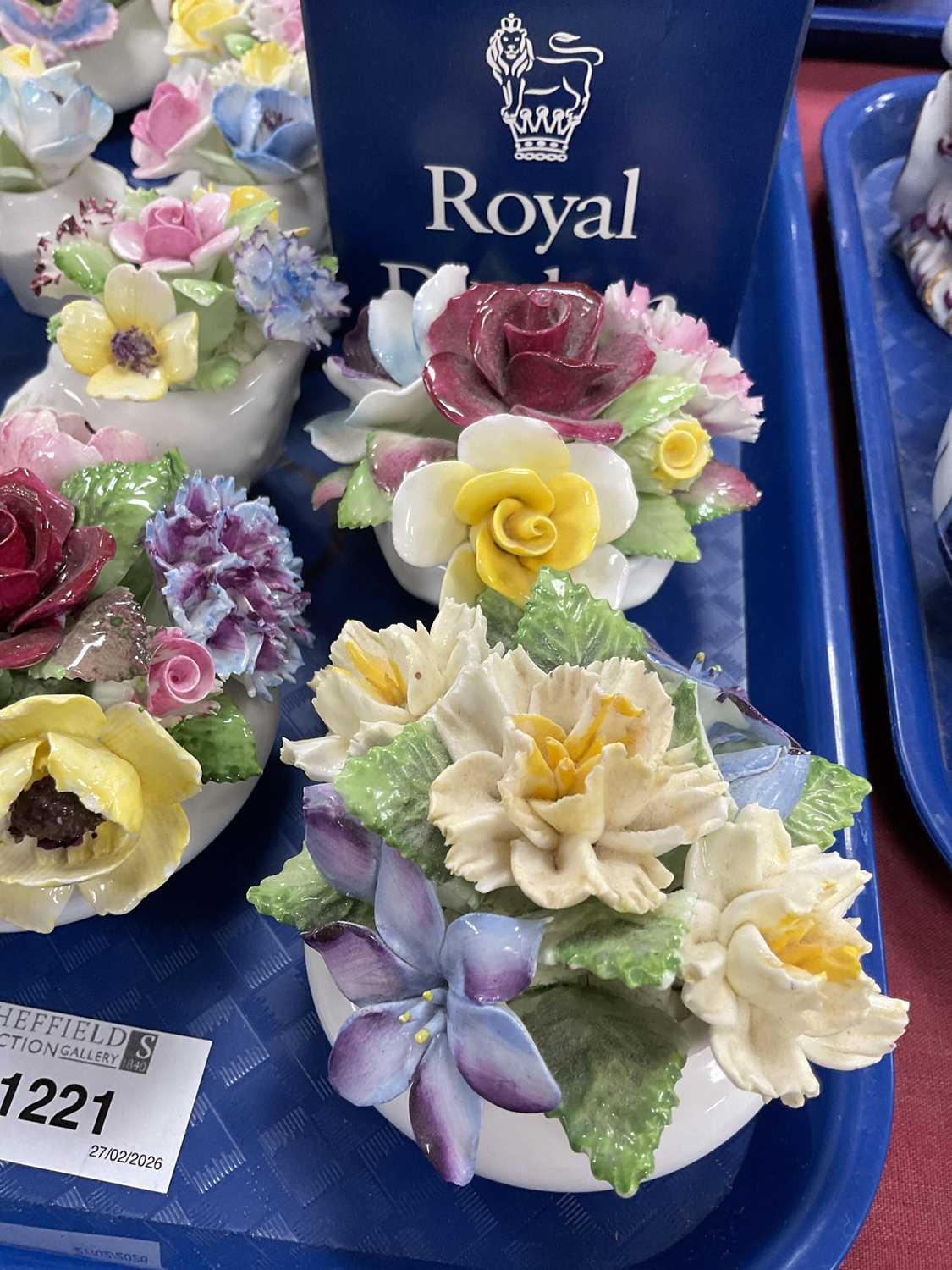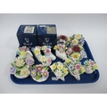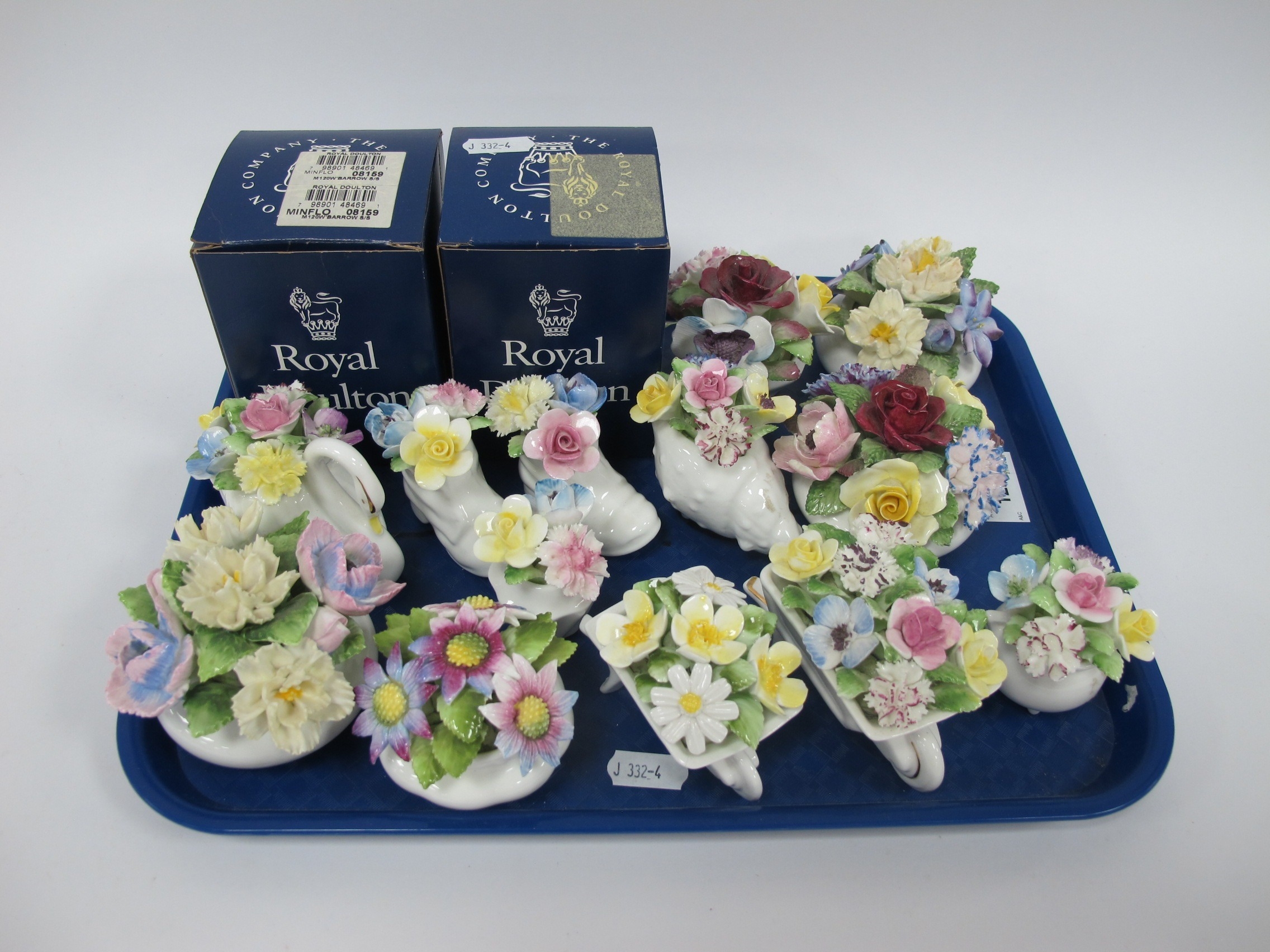 Fifteen Royal Doulton porcelain posy ornaments, two boxed, with different shapes and designs. One tray.