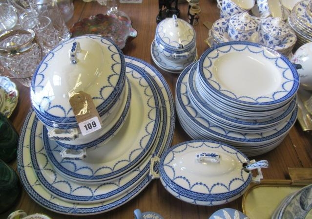 QUANTITY OF COPELAND BLUE AND WHITE DINNERWARE