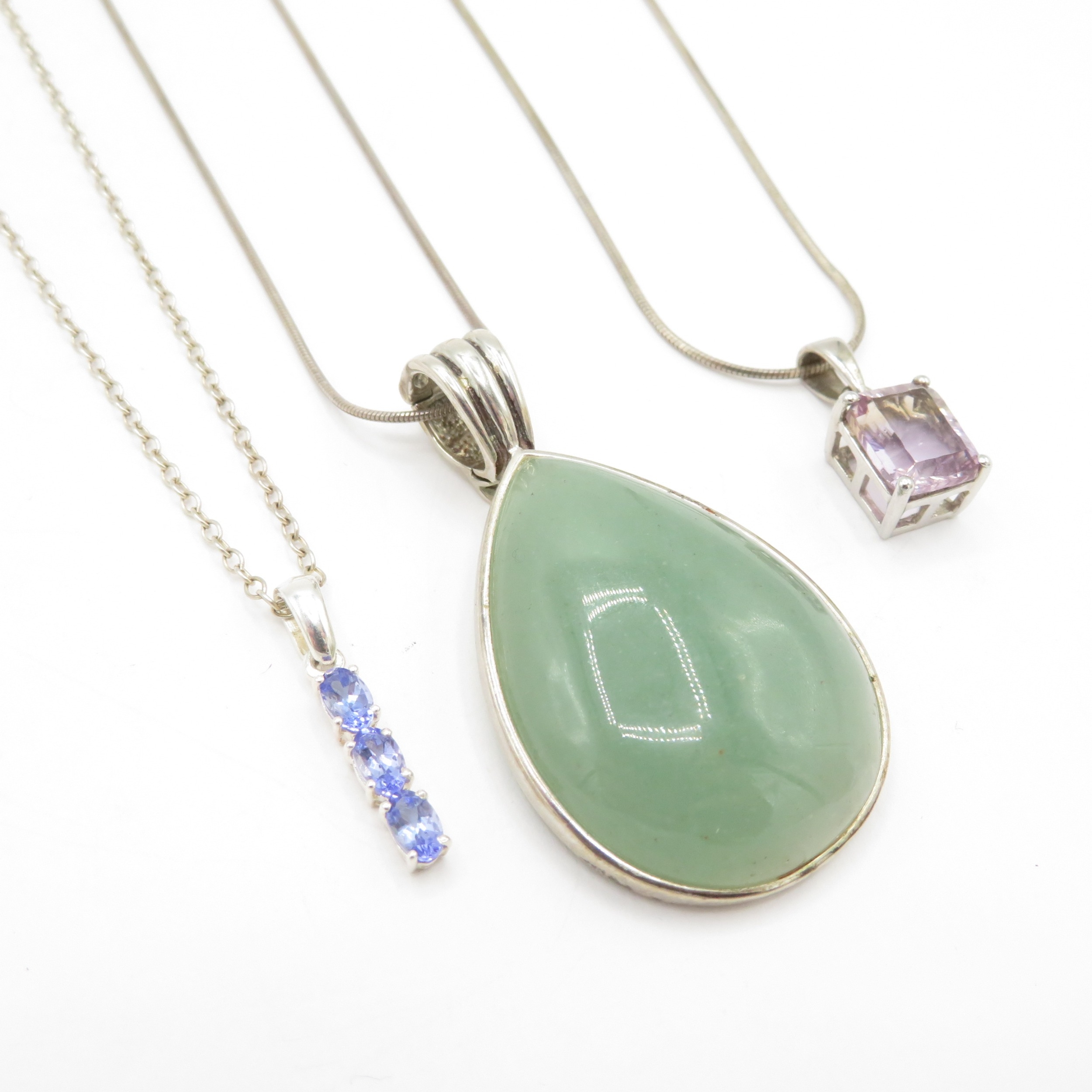Collection of Sterling Silver Necklaces inc Gemstone - 14.3g