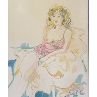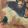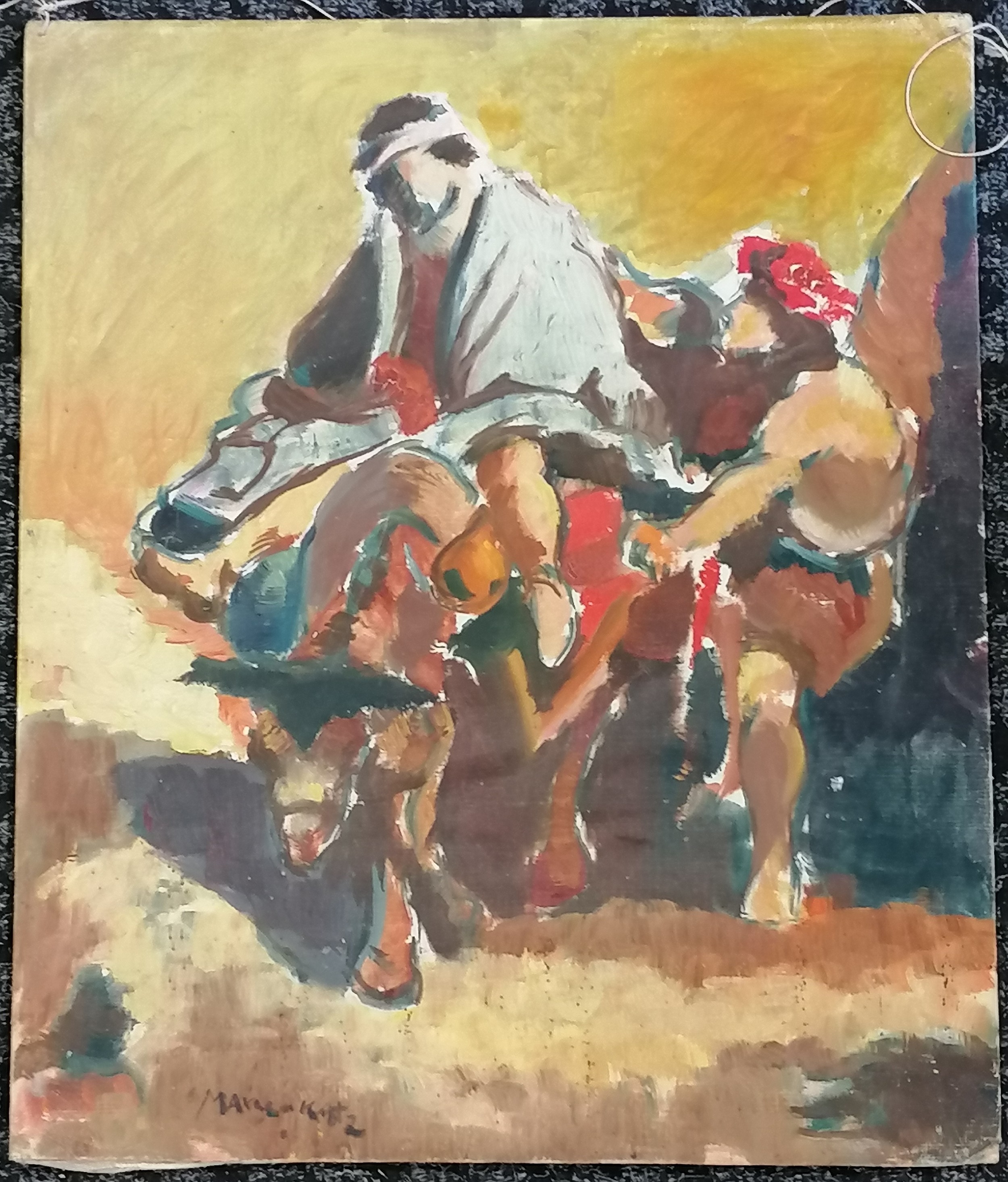 Oil painting on mounted canvas of 2 figures with a bull (beast of burden) signed Marie Katz? - 54.5cm x 46cm