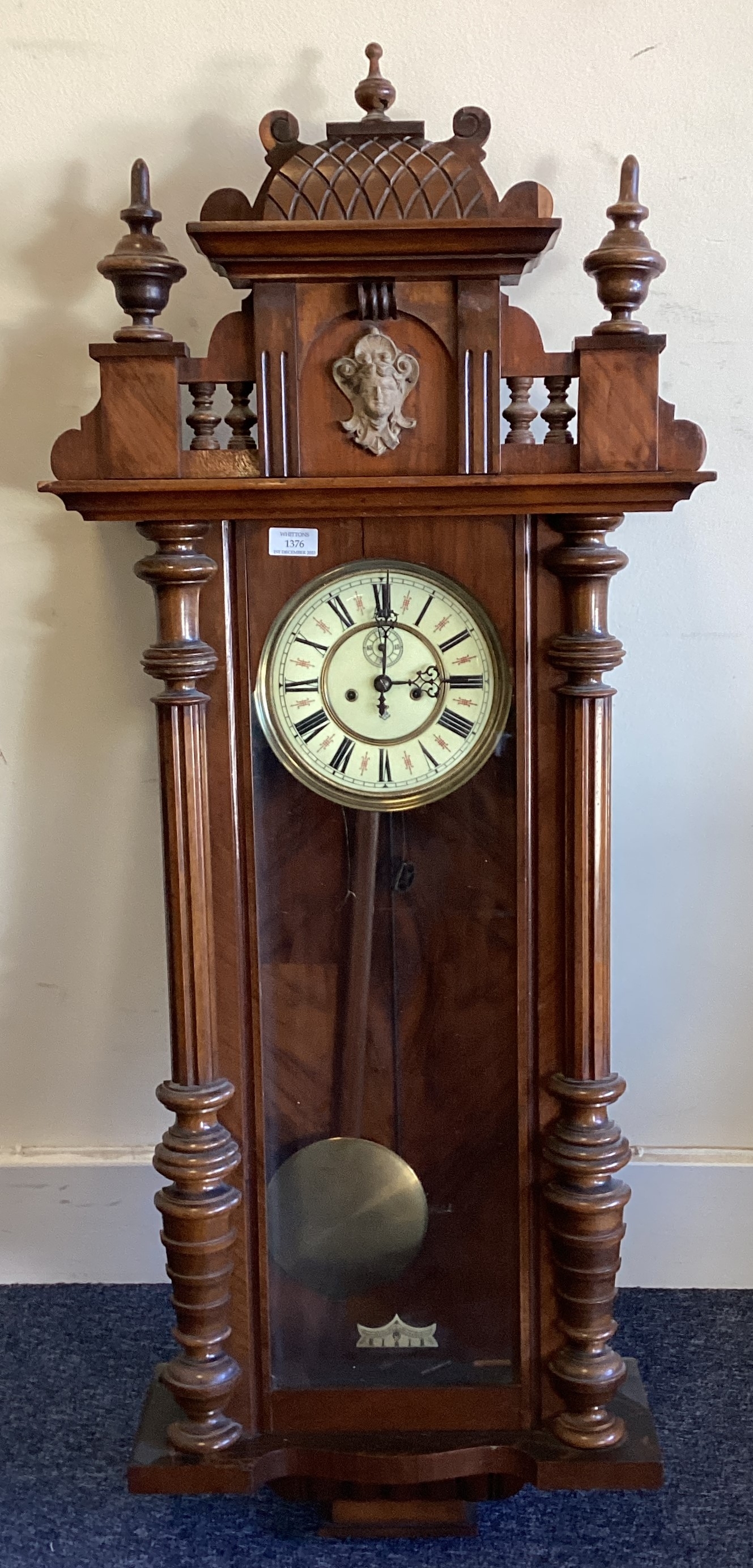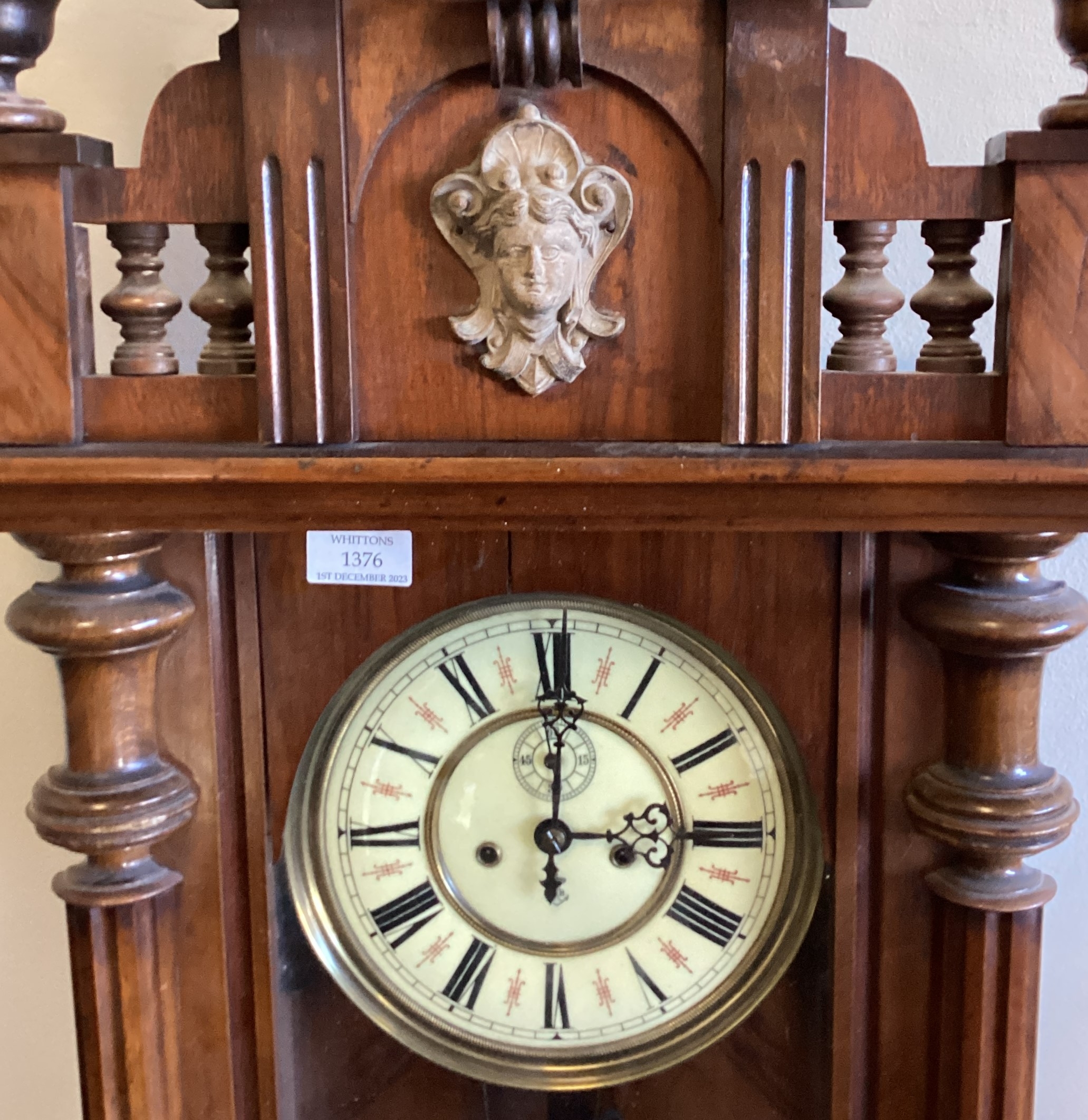 A good mahogany wall clock with enamelled dial. Est. £50 - £80.