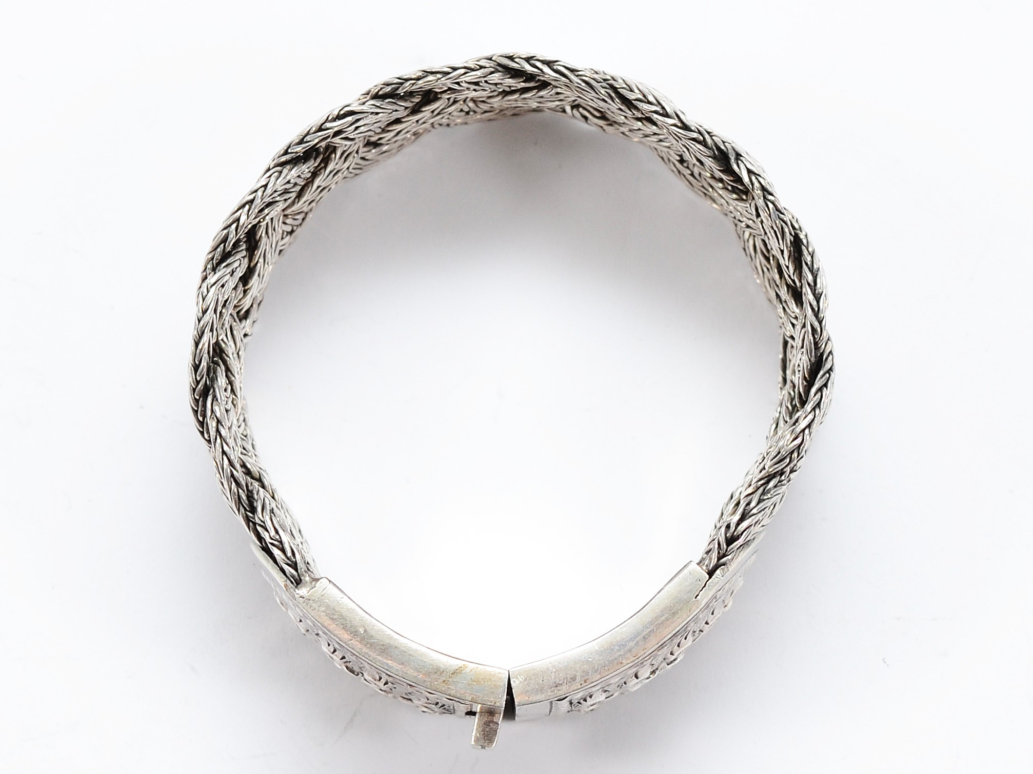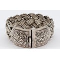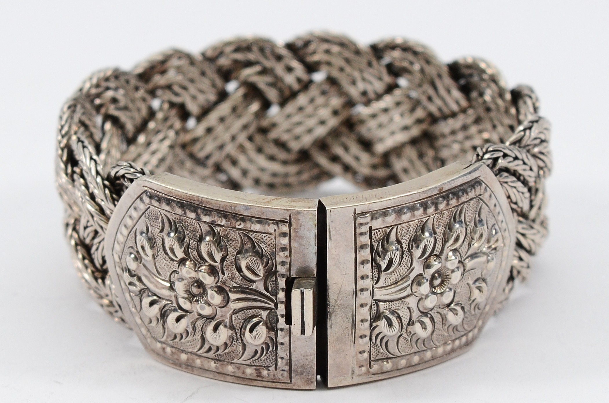 A 925 silver plaited bracelet with floral clasp, 18.5cm, 76g