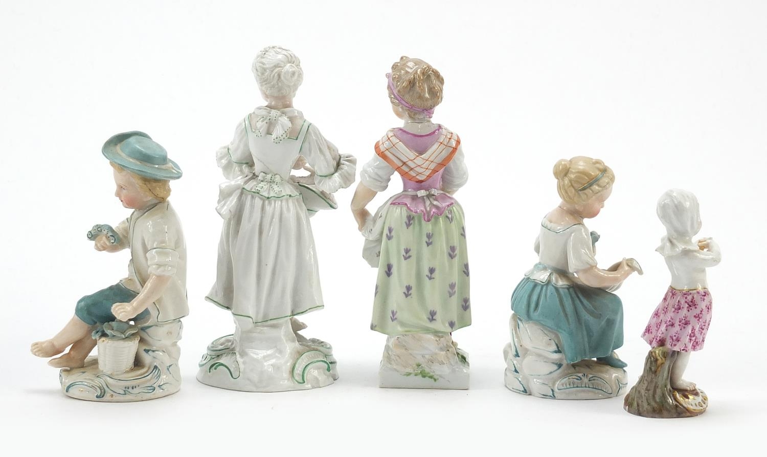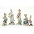 19th century continental porcelain figures comprising a pair by Dresden, Meissen, Berlin and Marcolini, the largest 15cm high