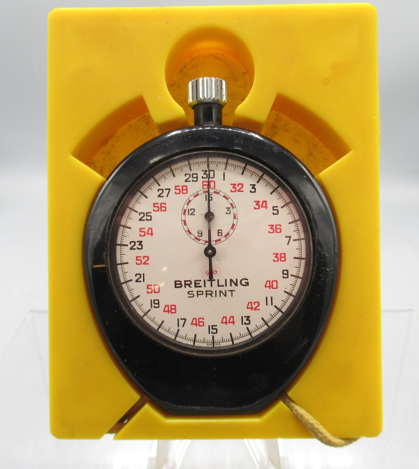 Breitling Sprint 1/10 stopwatch, signed white dial with 15 minute subsidiary dial, signed snap on case back no. P1 3669, Breitling/Baumgartner 1 jewel unadjusted movement, D62.7mm