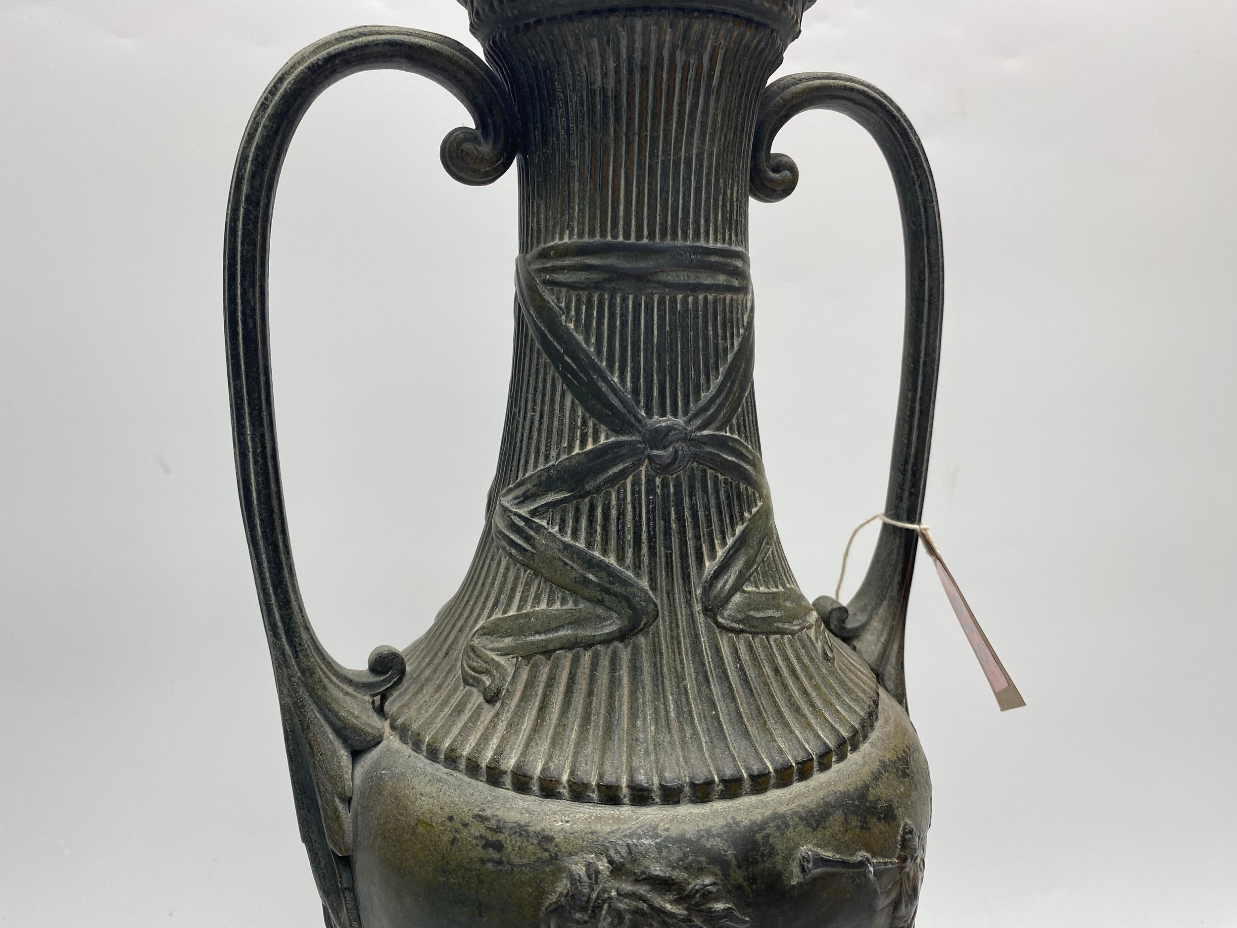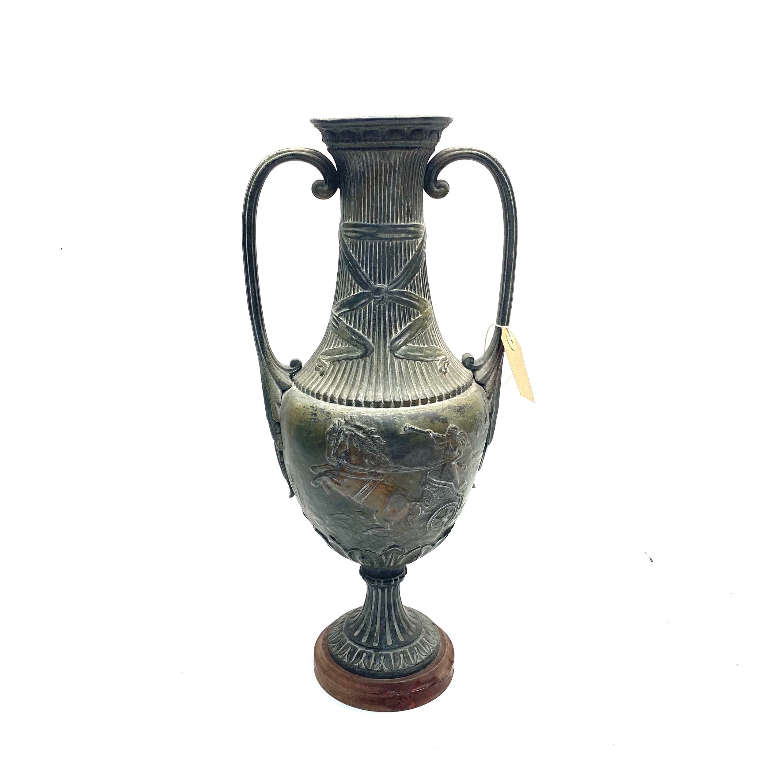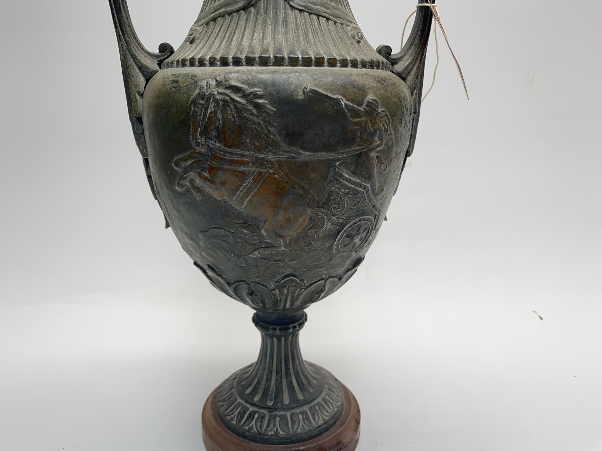 Antique Roman Greek Spelter Bronze Urn Vase Depicting Romam/Greek Chariot Racing.