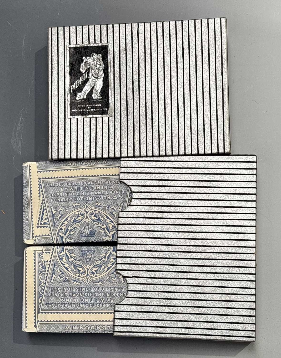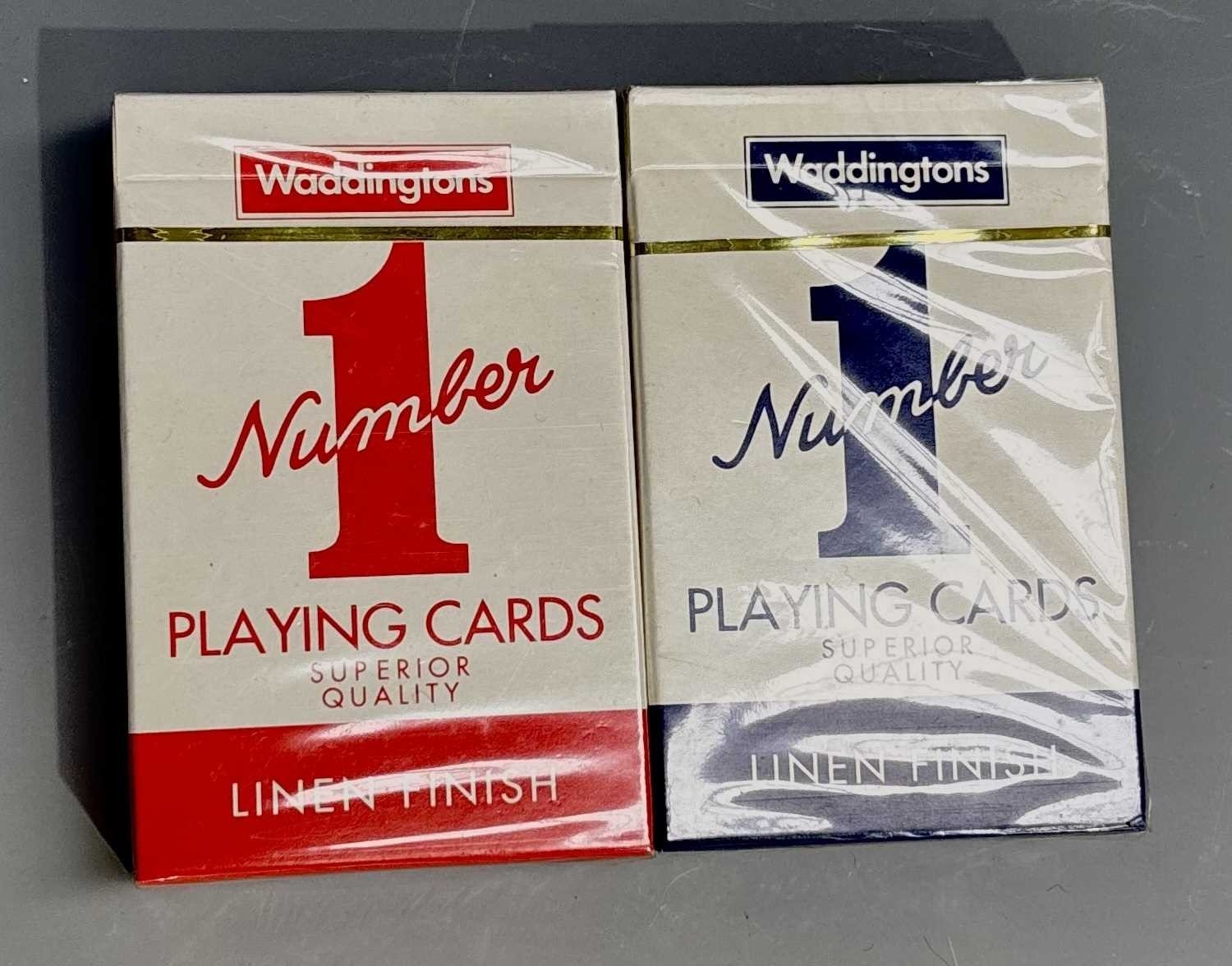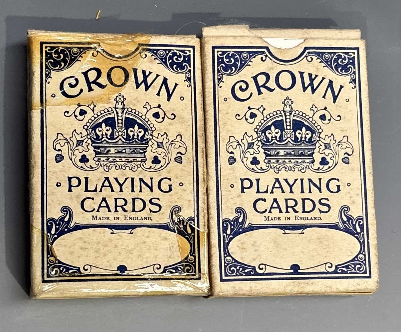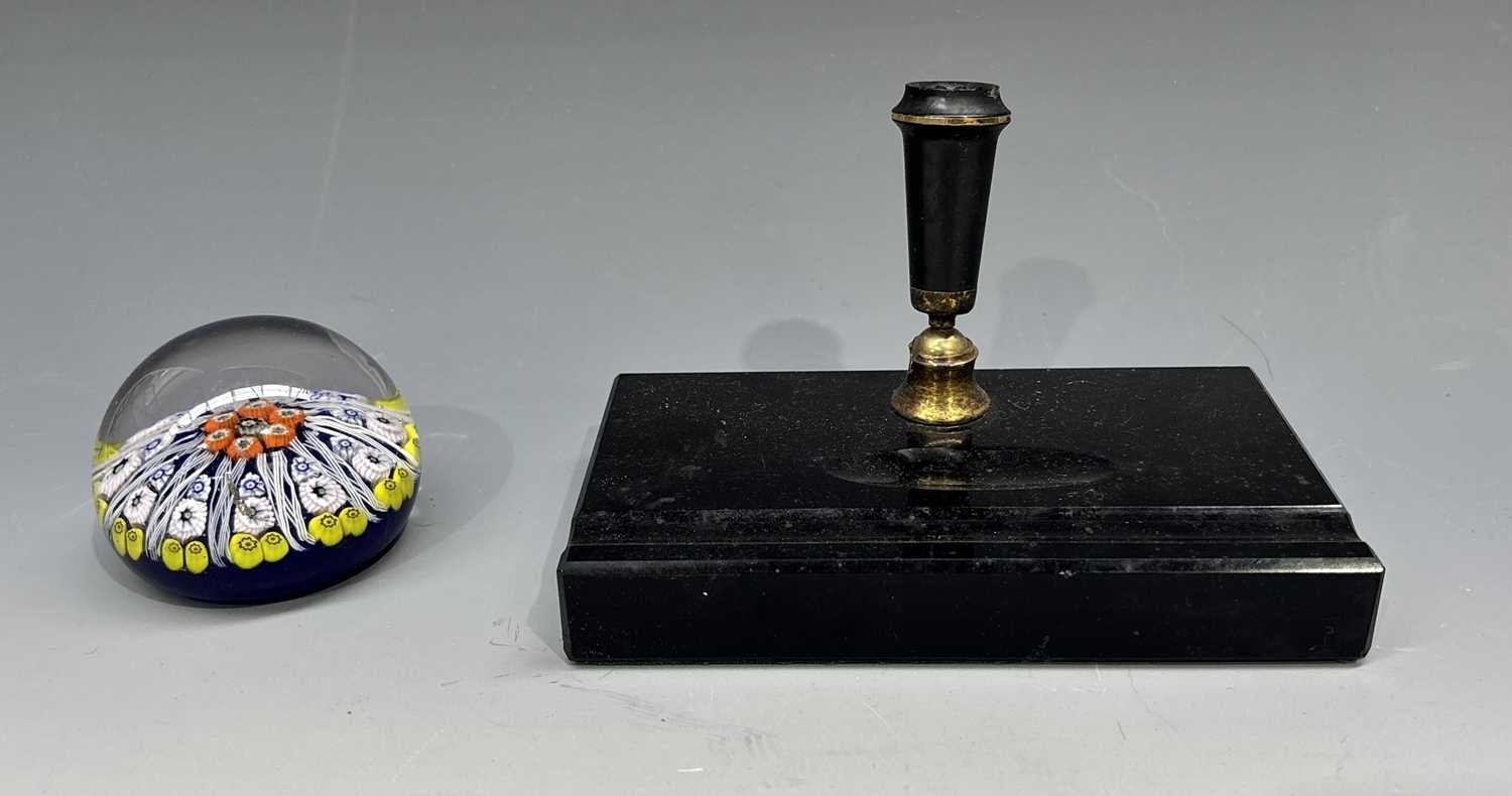 A collection of playing cards, most unused, Thomas de la Rue 'Pierrot' cased set with sample card, backed with Venetian scenes, a set in a green shagreen-effect case retailed by Harrods, also a Parker black hardstone pen holder and rest, w: 15cm, d: 9cm, h: 2cm, Mauchline ware, a Ysart-type millefiore paperweight etc. (1 tray) Provenance: from the collections of two prominent Anglo-Irish and British aristocratic families, directly descended from Lord Patrick James Stuart (1794- 1859), brother of John 2nd Marquess of Bute and great grandson of John Stuart, 3rd Earl of Bute (1713 -1792), Prime Minister to George III, resident at Cardiff Castle, Wales; Dumfries House, Scotland and Wilton Crescent, Belgravia, London