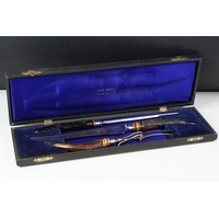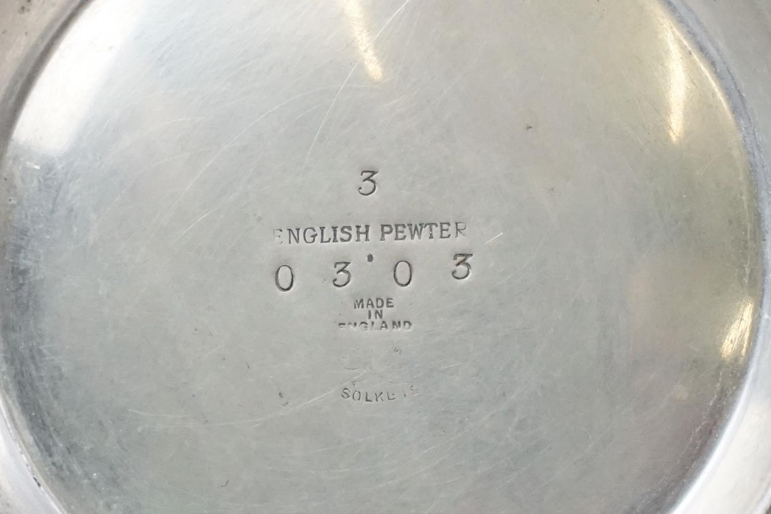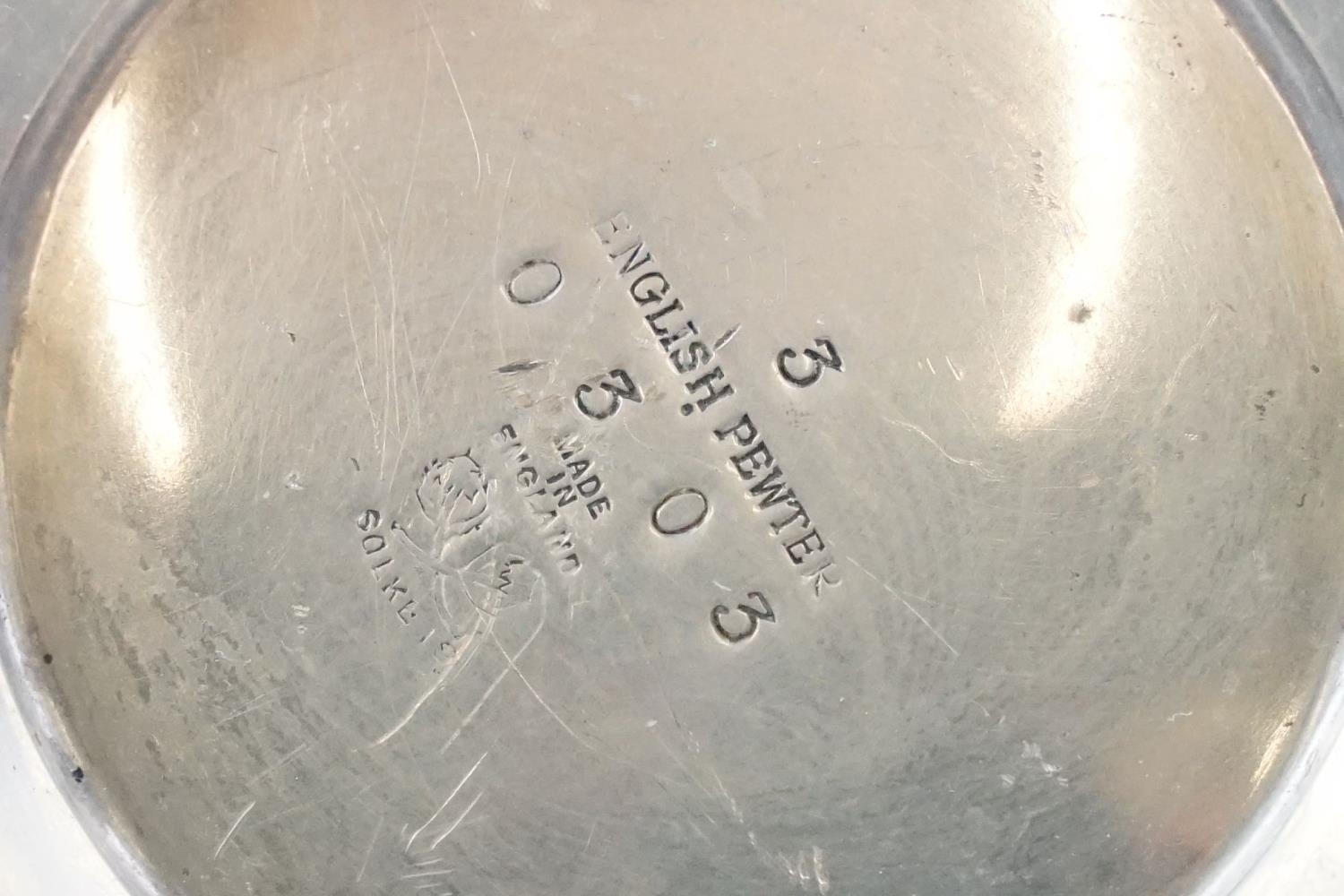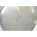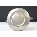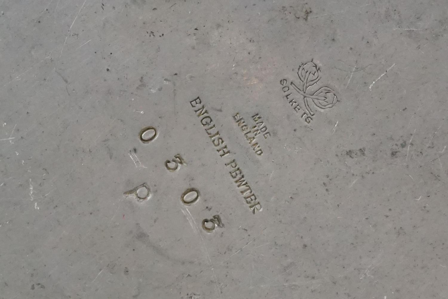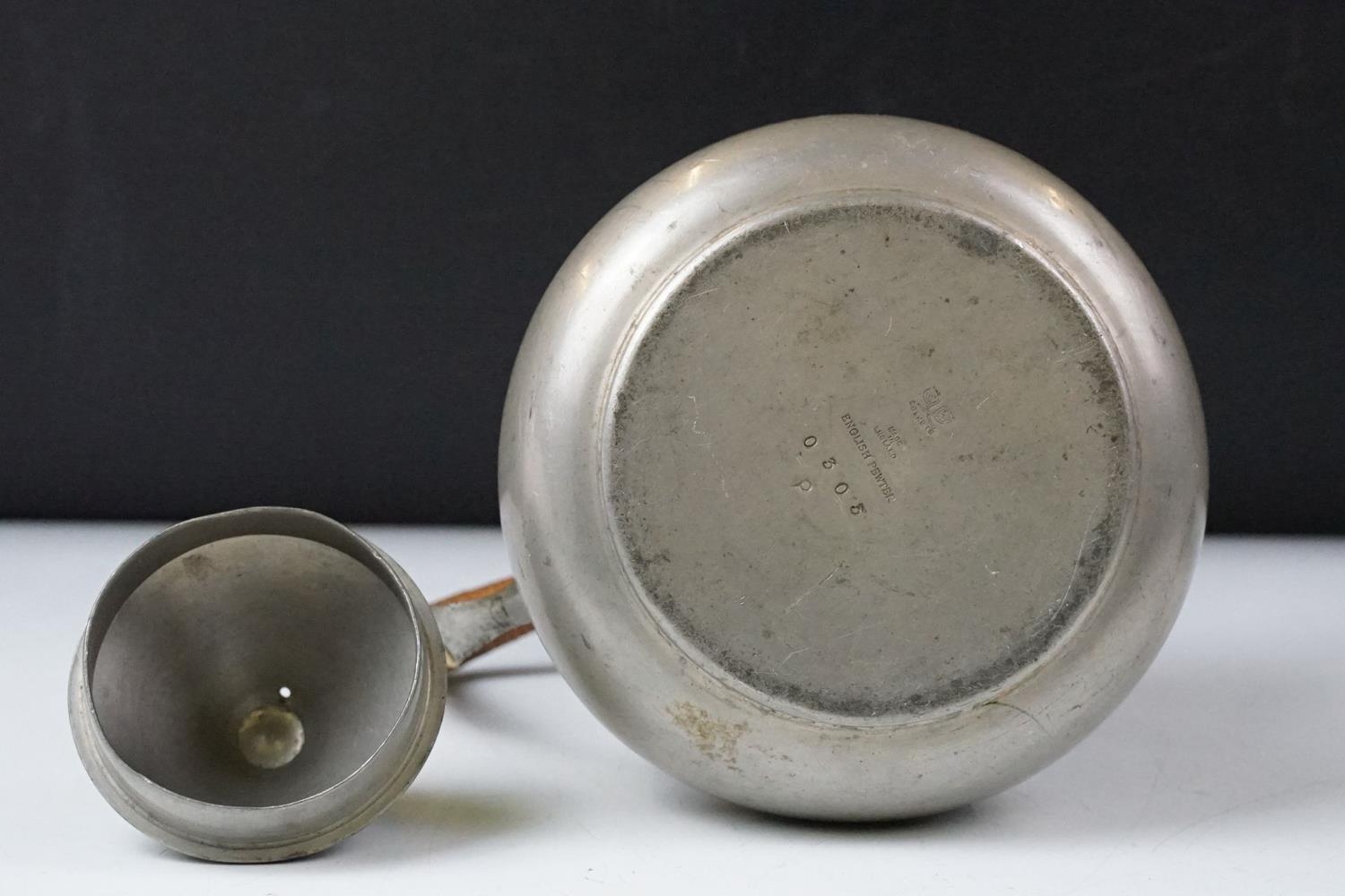 An early twentieth century pewter tea set with peacock enamel decoration in the style of archibald knox.