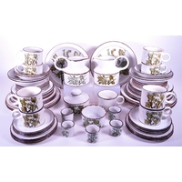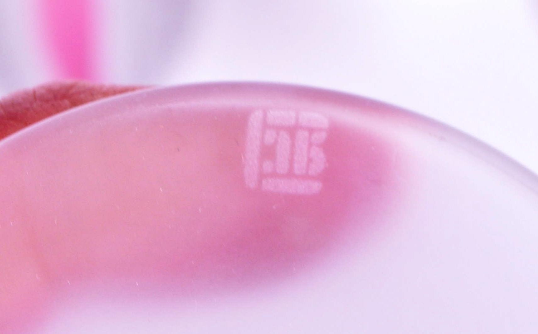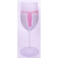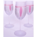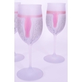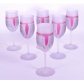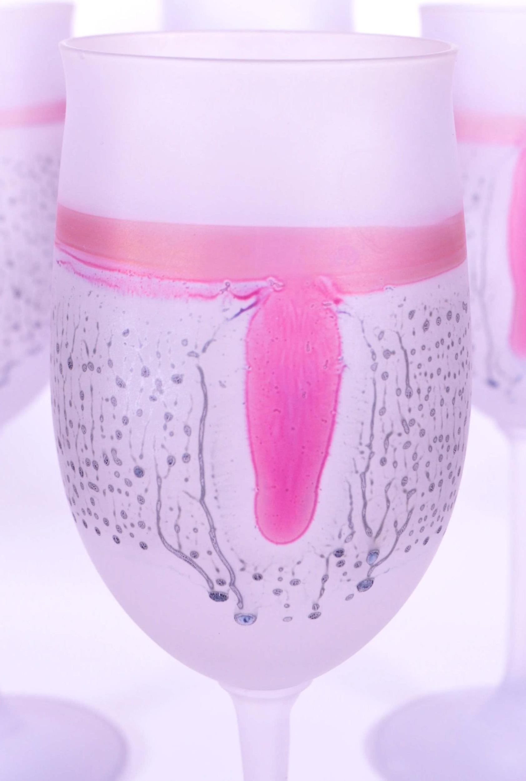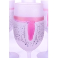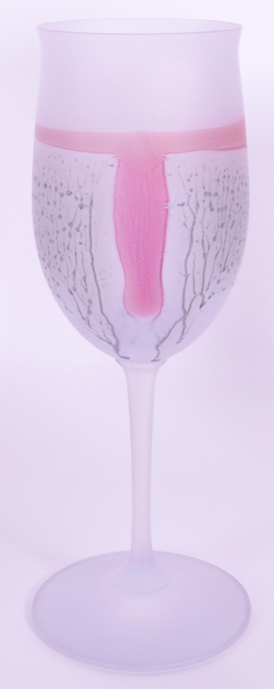 A collection of six vintage mid 20th century tutti frutti wine glass flutes. Each raised on rounded base, with frosted finish and polychrome abstract decoration.