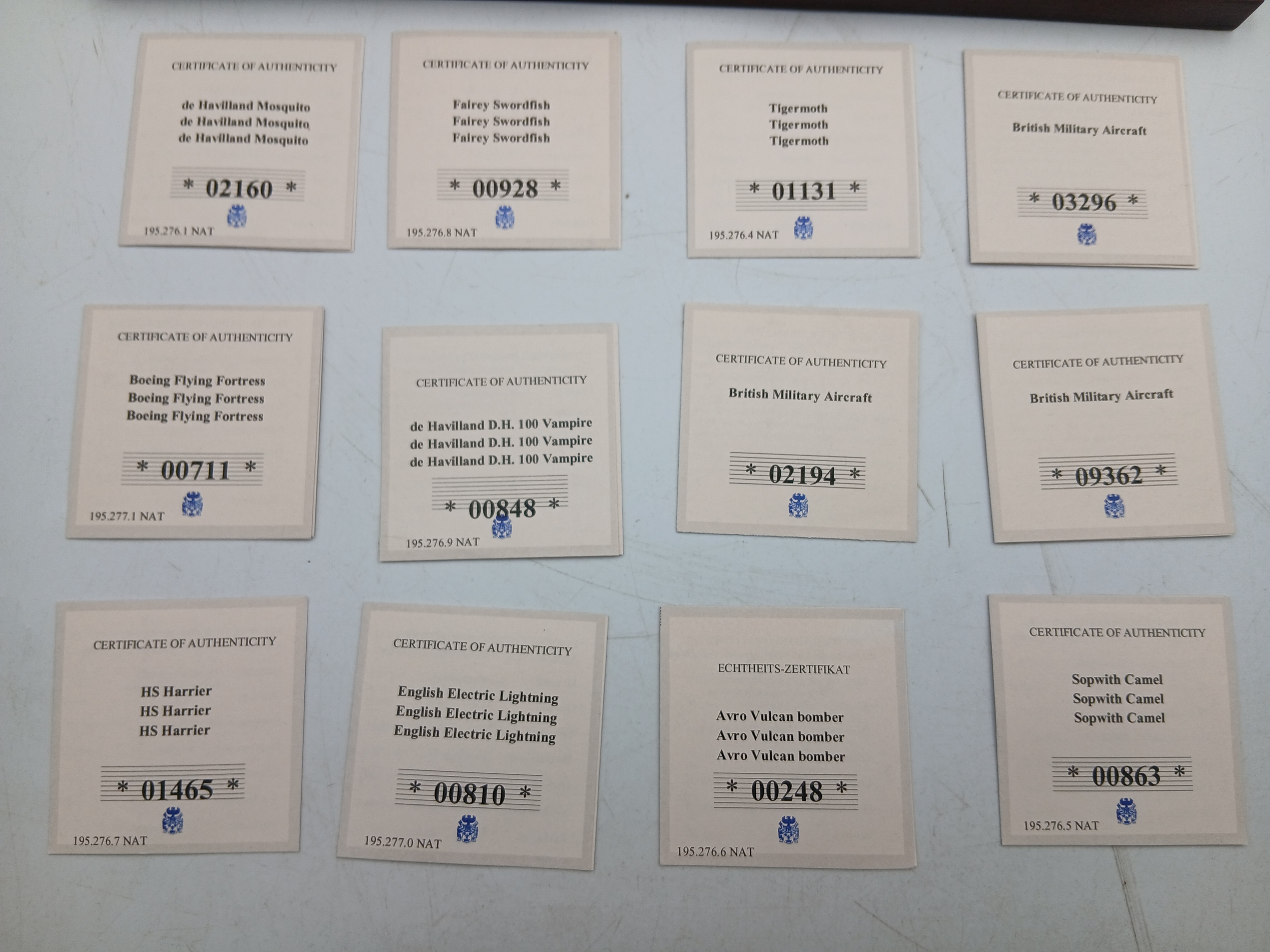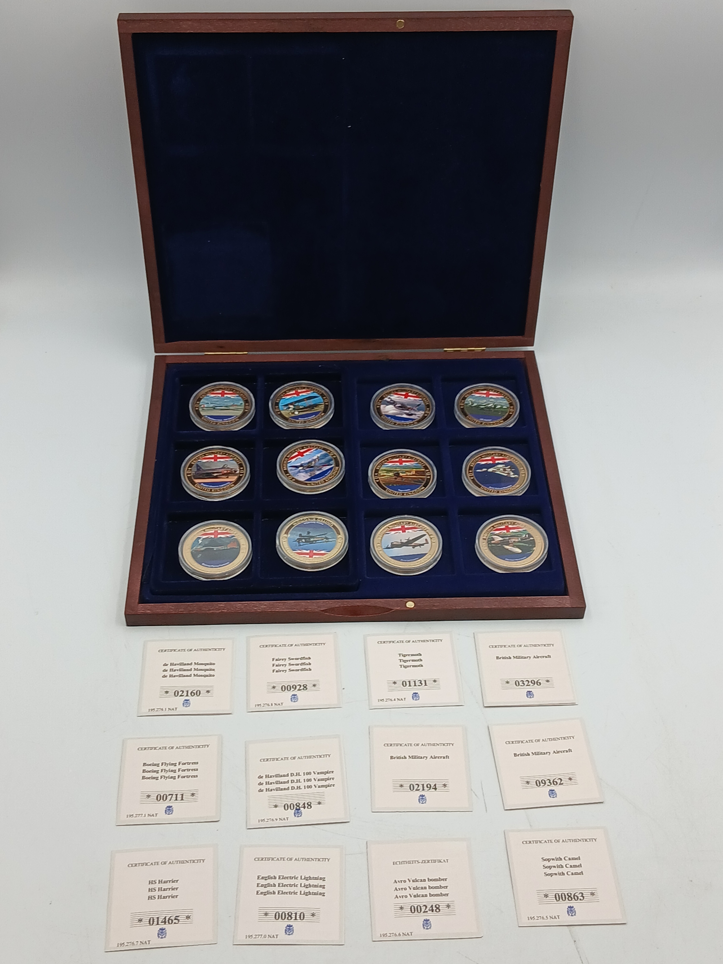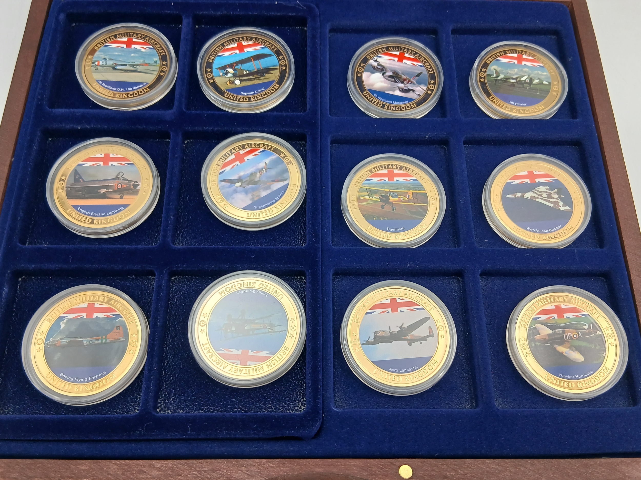 A 2016 gold plated proof british military aircraft coin set with certificates of authenticity.