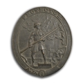 Protector Fire Insurance Company. An oval cast brass fire mark, the design of a firefighter in action, by Robert Smirke, the reverse with six lugs for fastening, 16 x 14cm