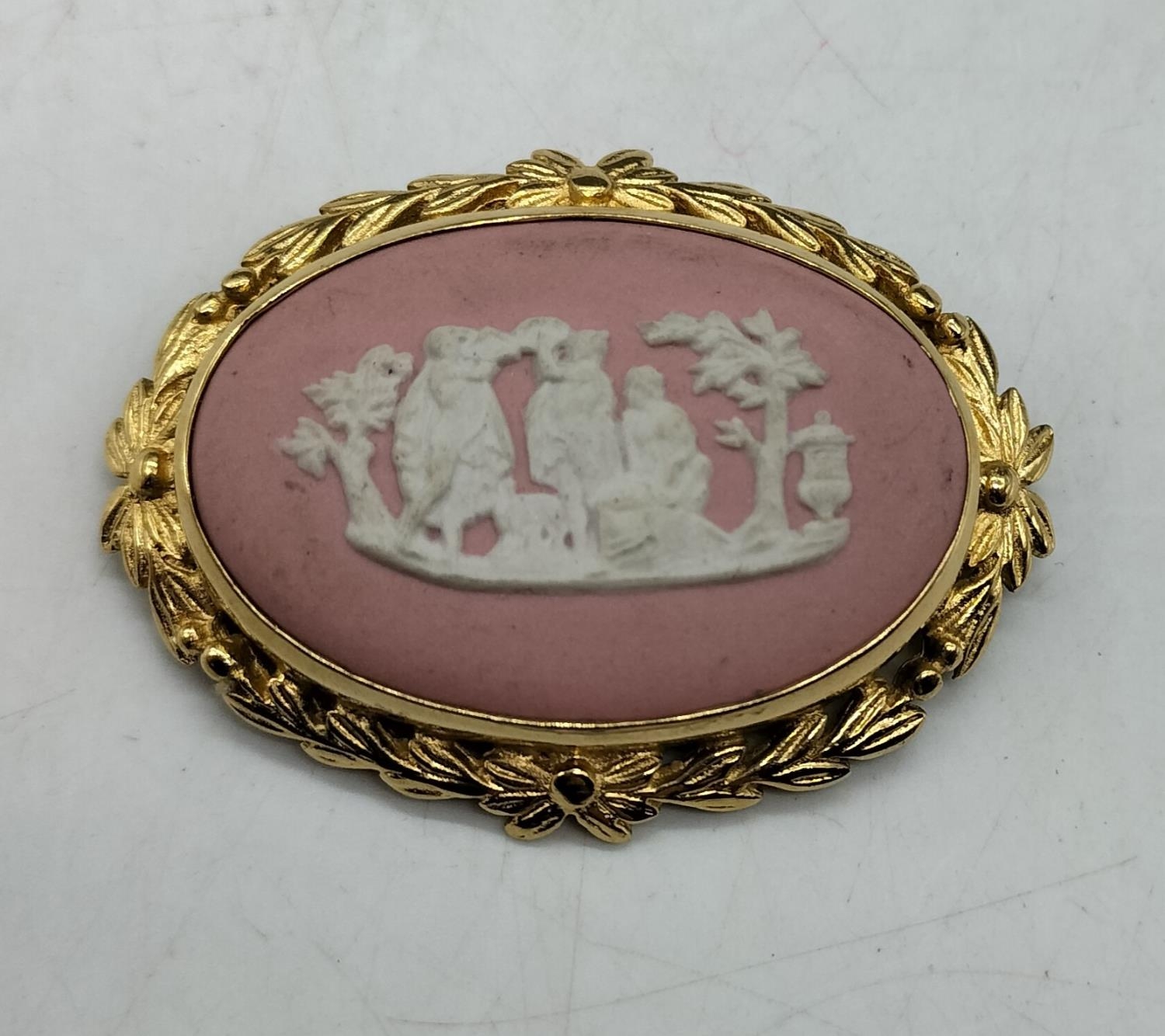 Wedgwood Pink Jasper Brooch. 5cm x 3.5cm.