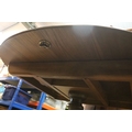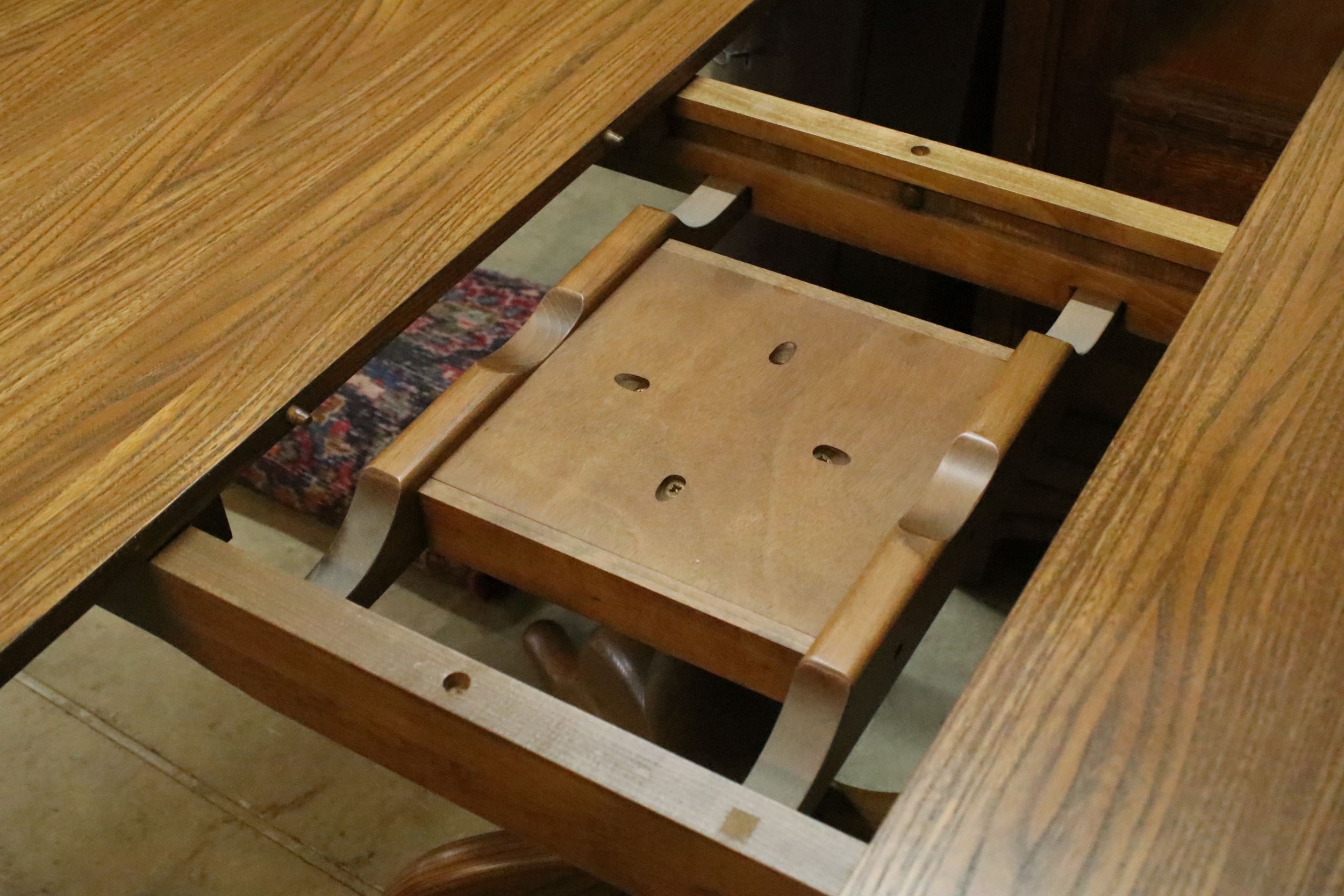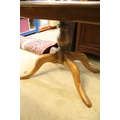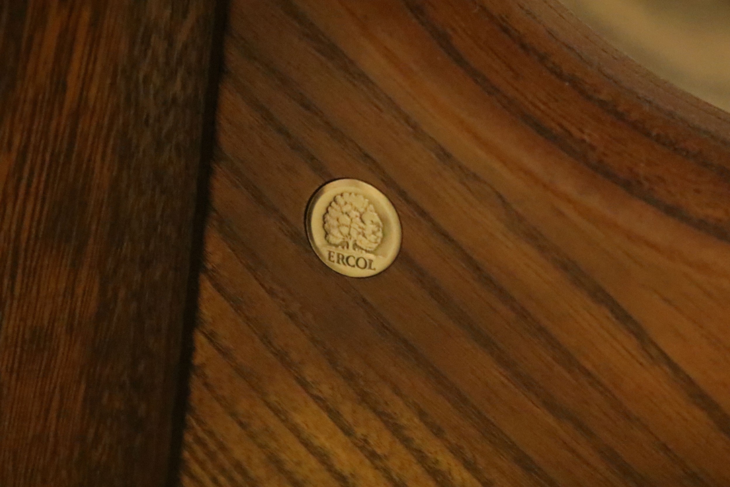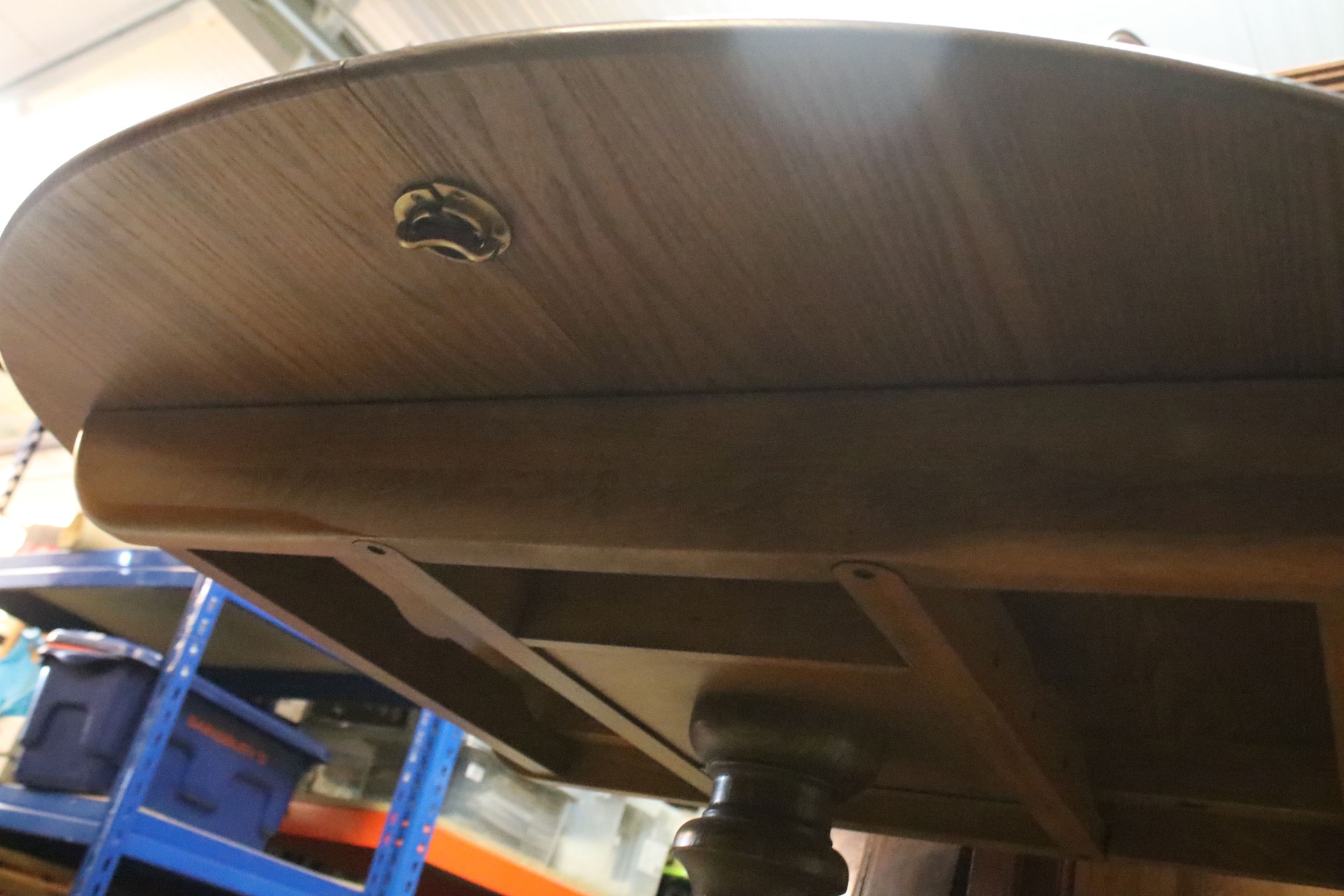 Ercol pedestal extending dining table, having oval top with baluster stem base and swept legs, 110cm x 100cm x H 72cm