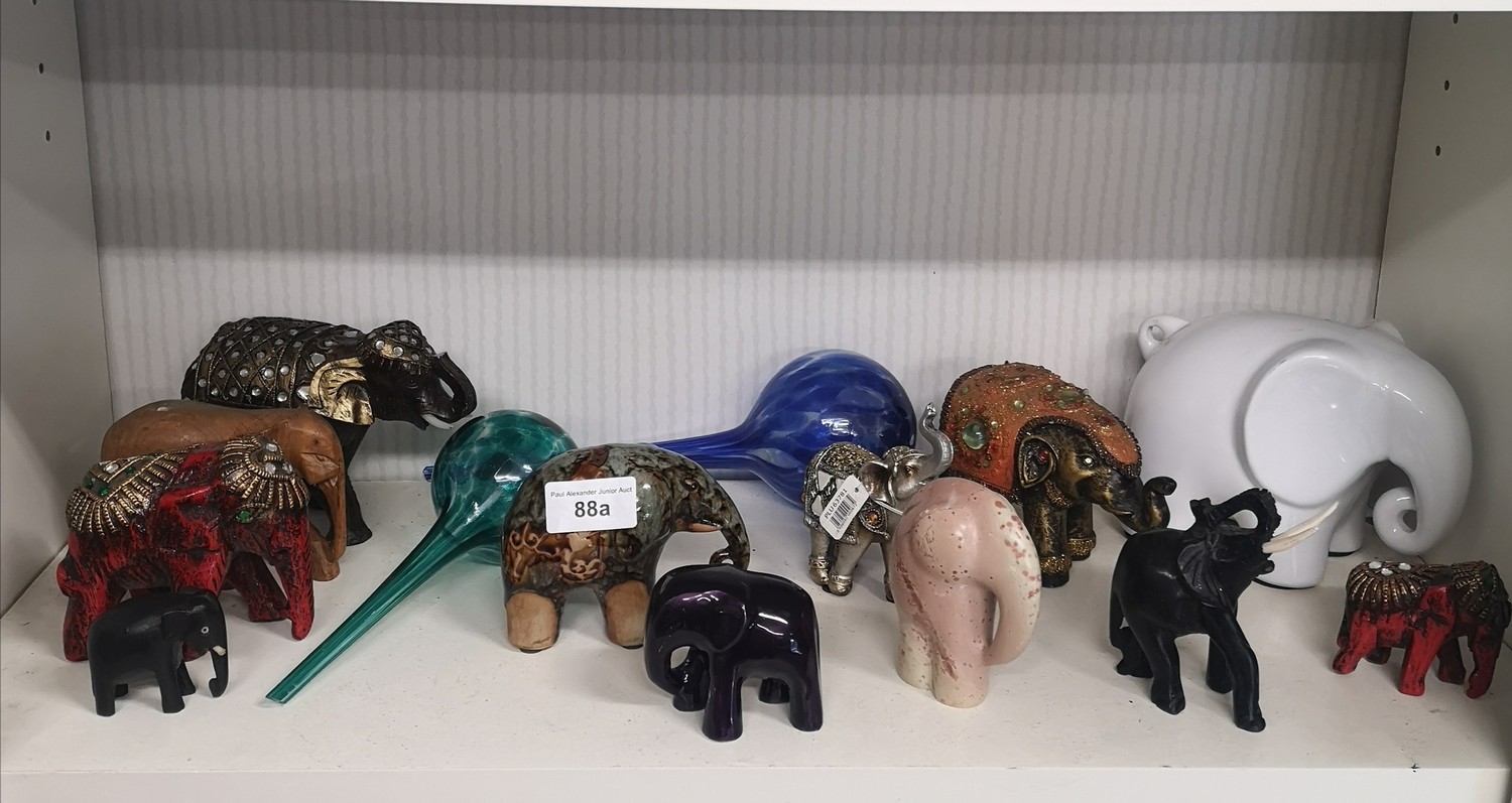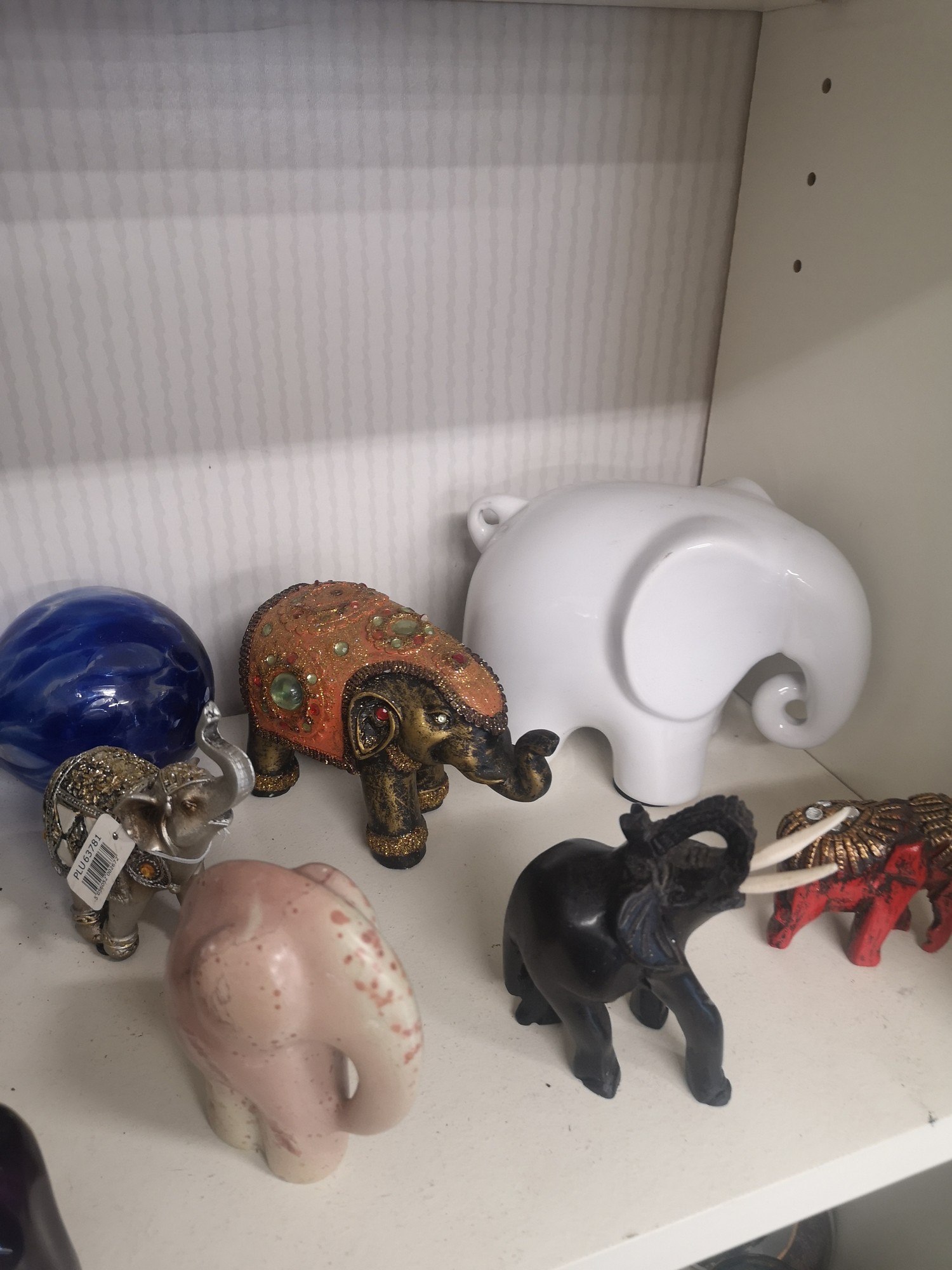 Shelf of elephants etc.
