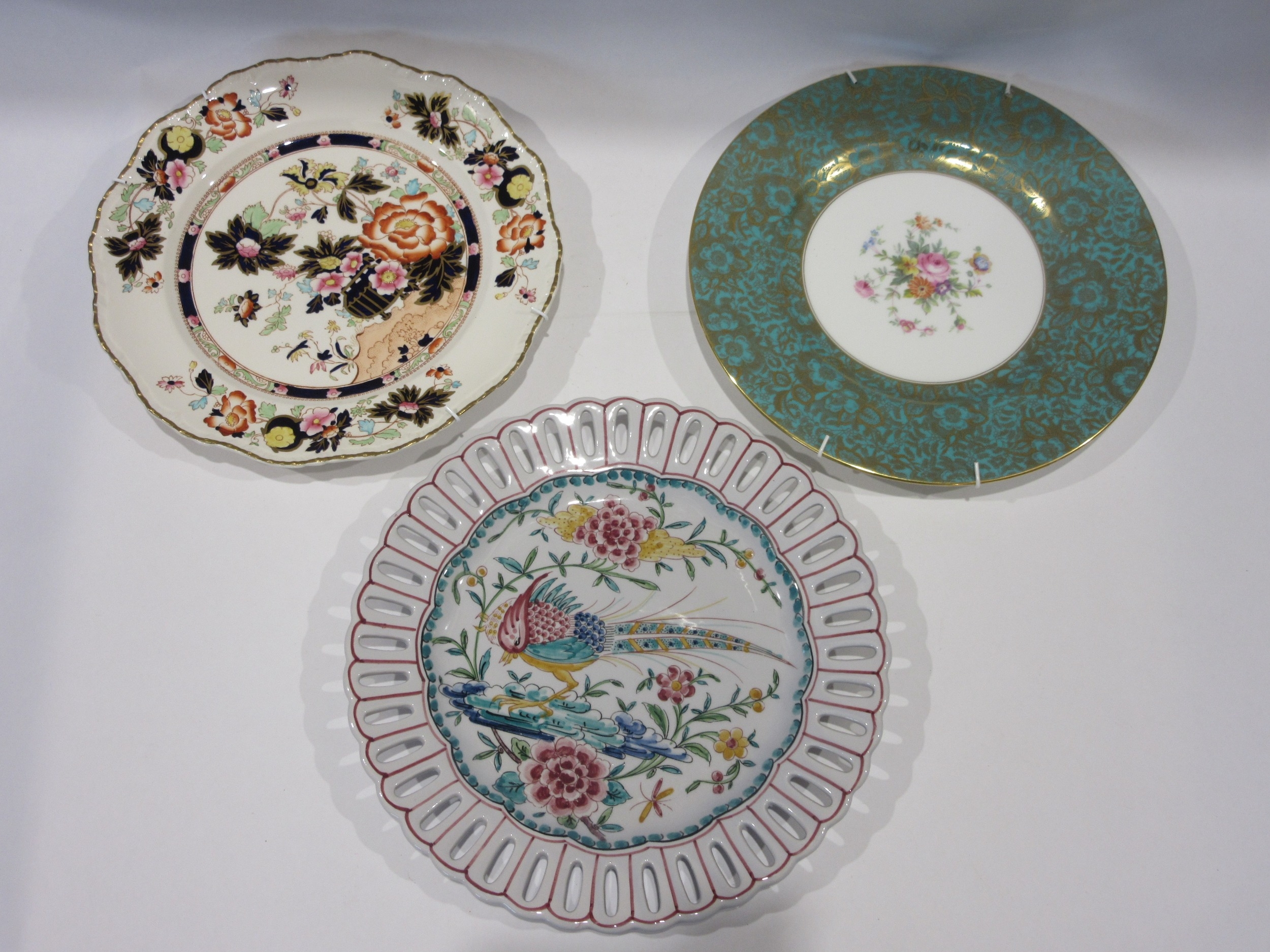 A quantity of wall plates, Minton, Mason's, Johnson Bros, Wedgwood and Grays Pottery hand-painted example (7)