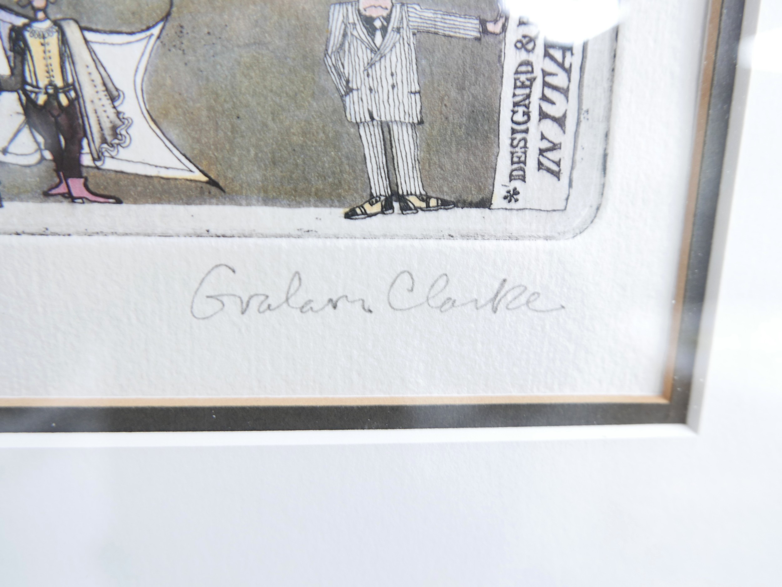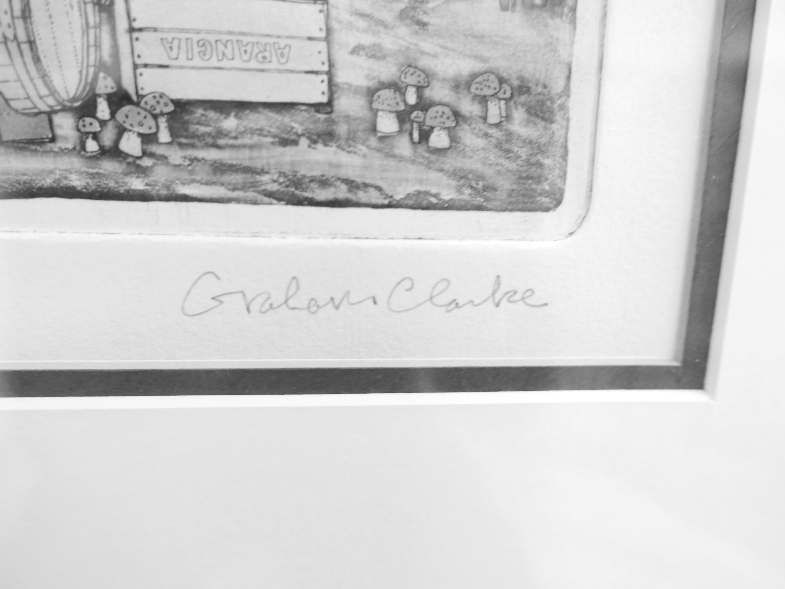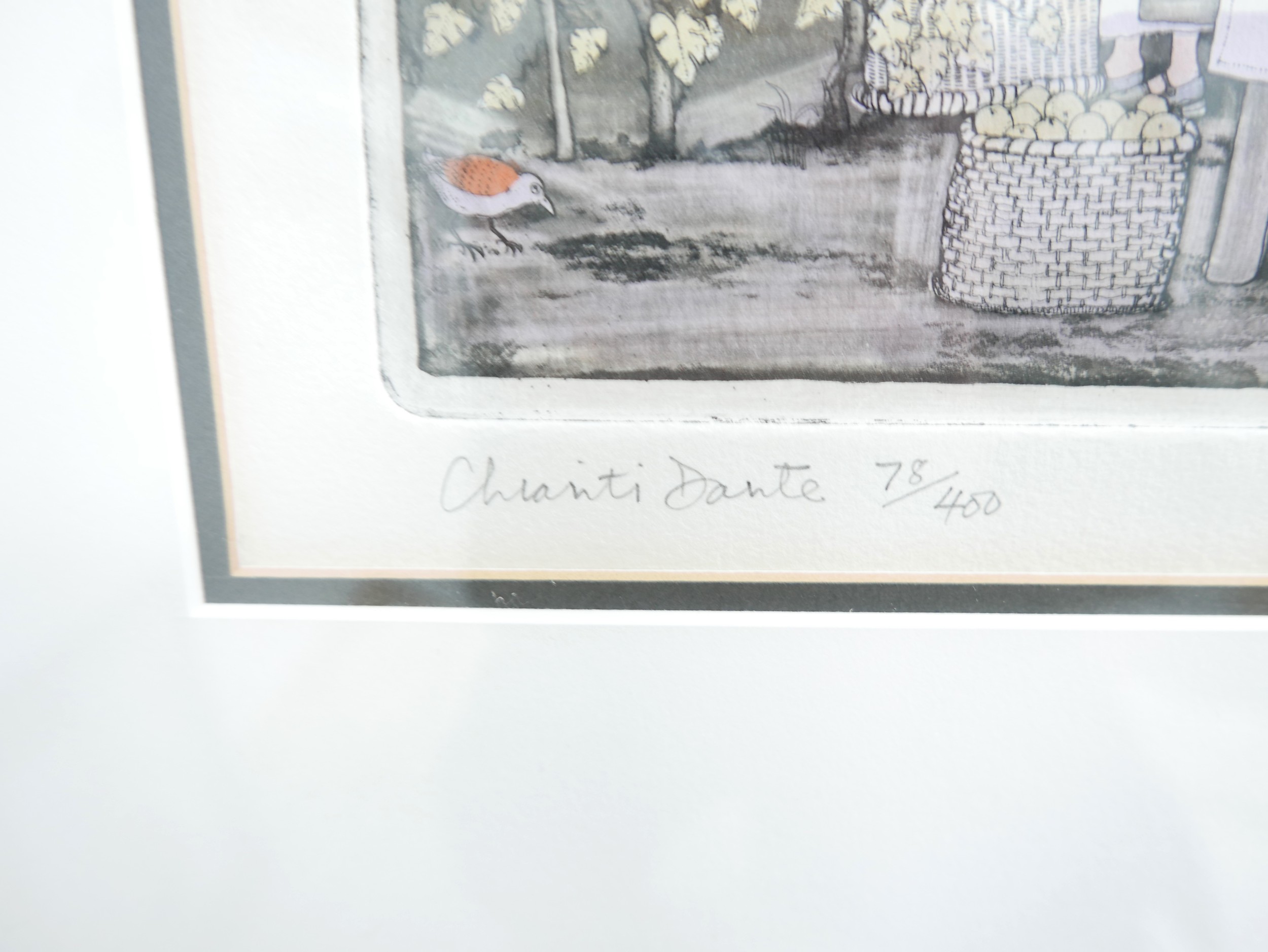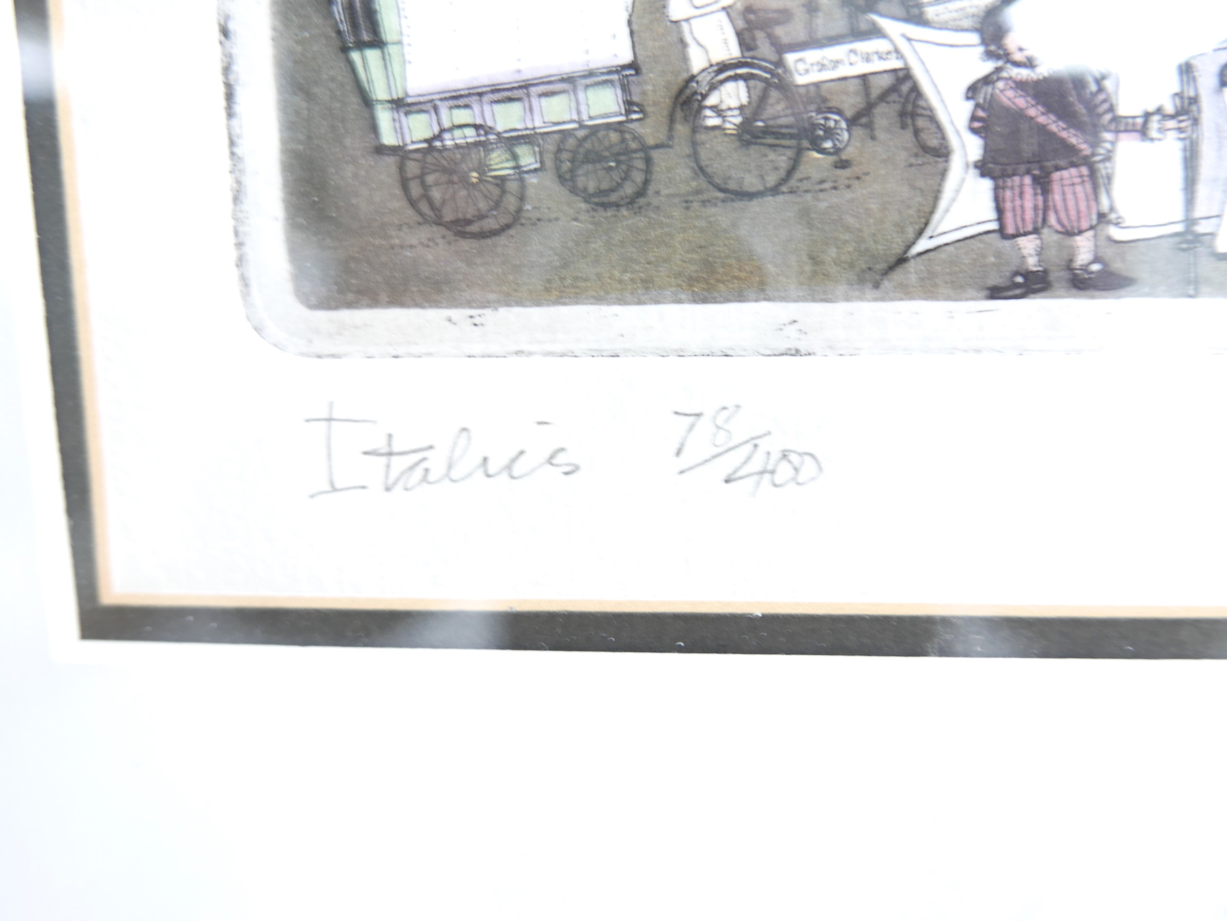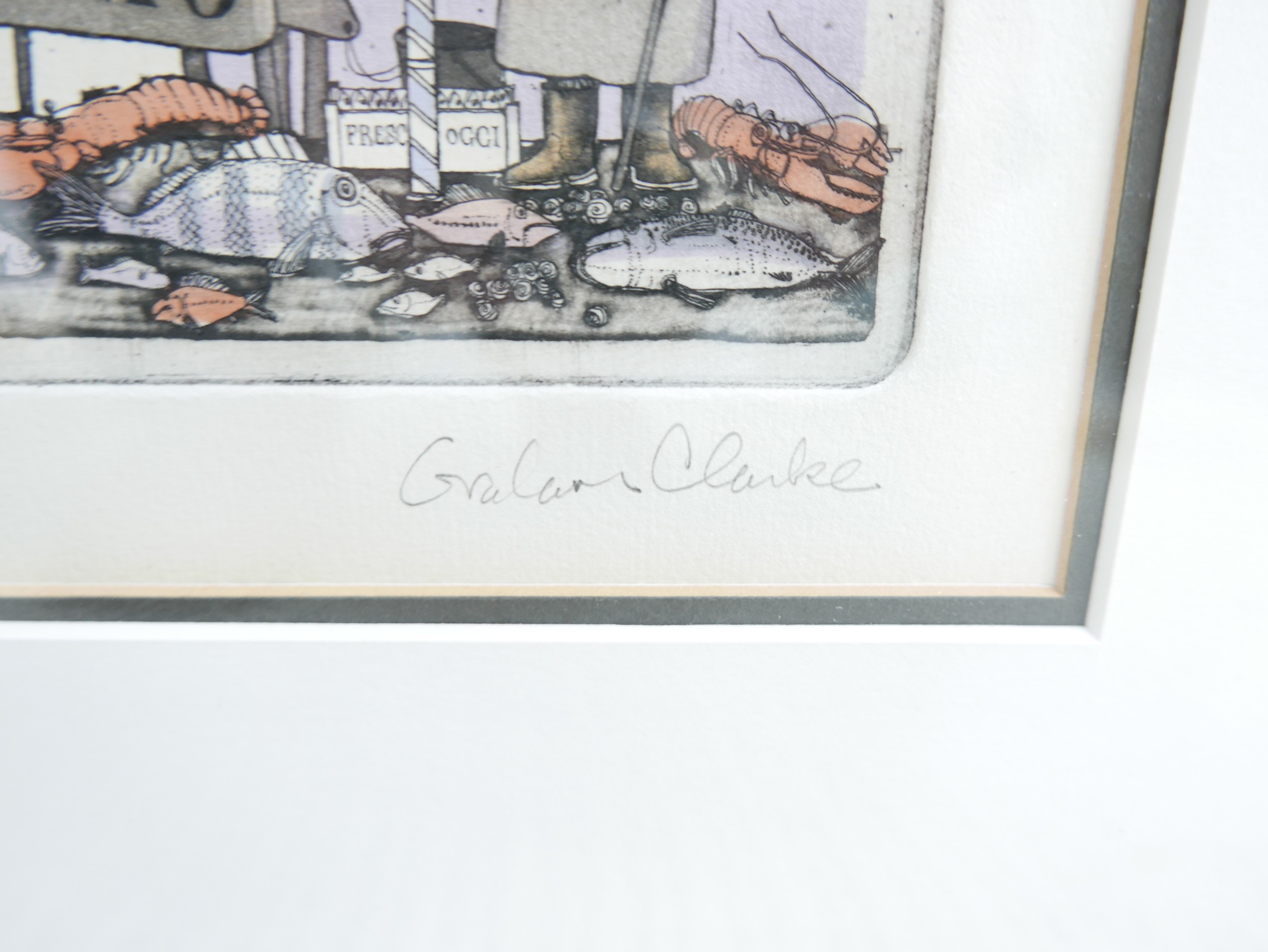 Graham Clarke (b.1941) three coloured limited edition prints "Italics" 78/400, "Fish Market of Venice" 78/400 and "Chianti Dante" 78/400, largest frame size 48 by 56cm. (3)