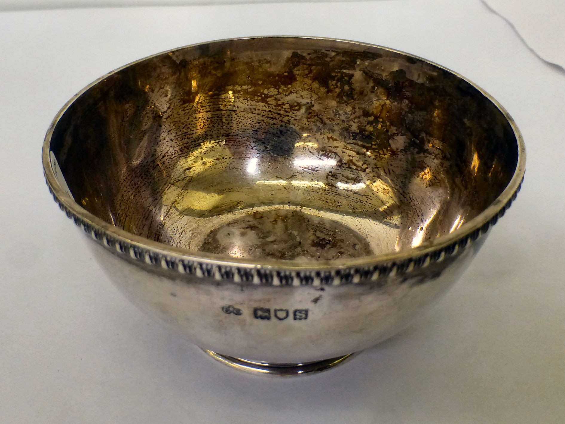 A silver sugar basin with a reeded lip London 1913 5.5"dia (approx. 224grms)