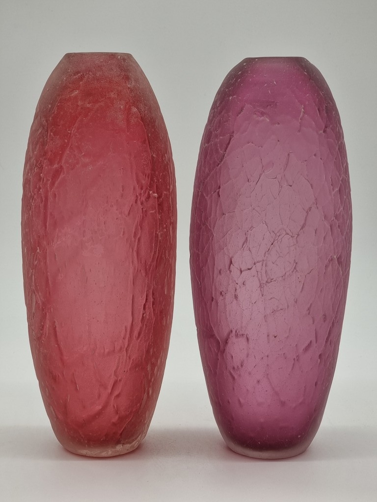 A pair of Murano textured 'Scavo' glass vases, by Cenedese, both signed and labelled, 31cm high.
